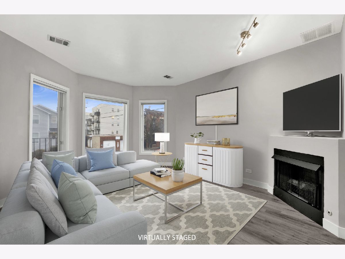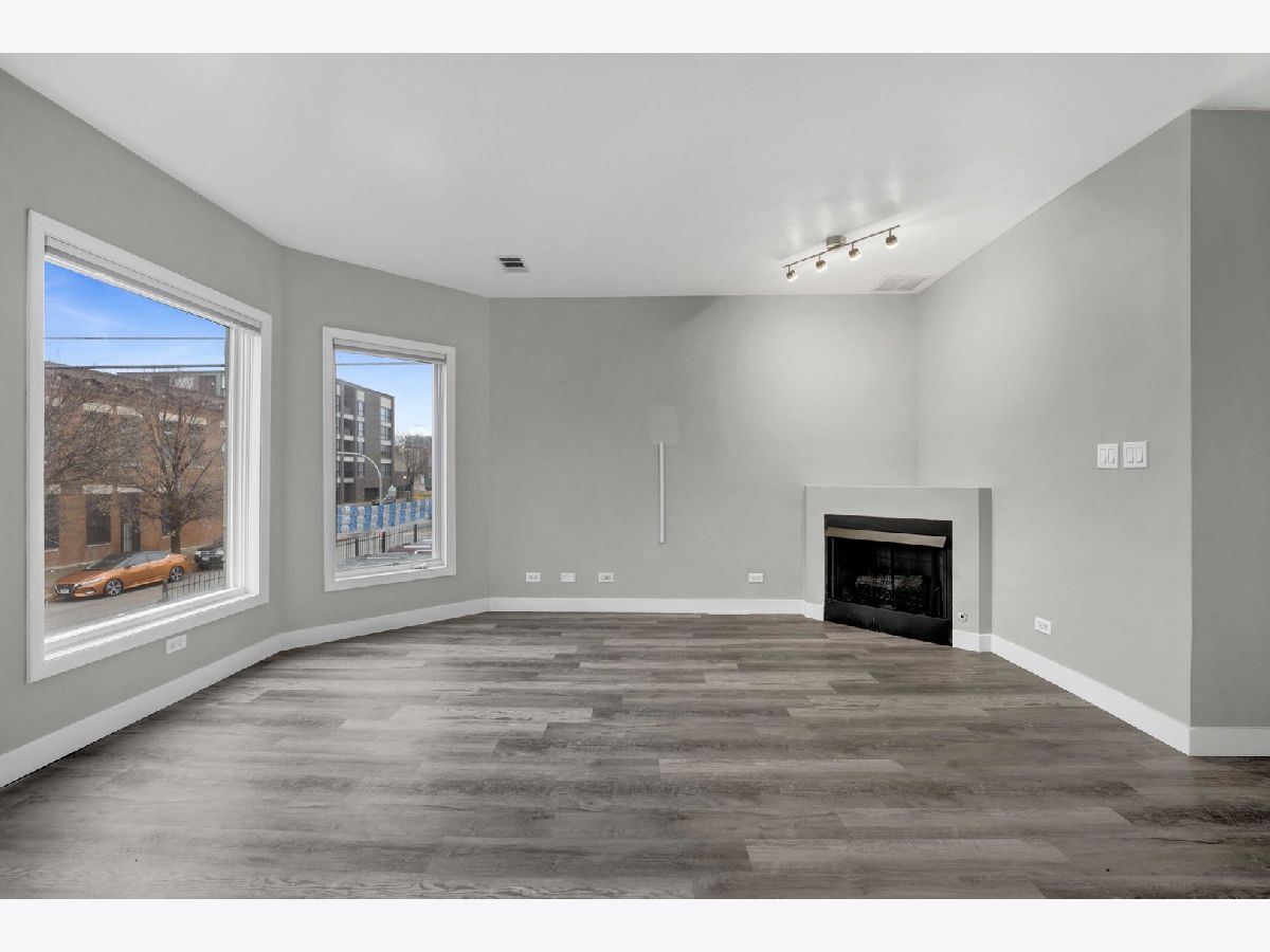 Beautifully updated and move-in ready, this spacious 2-bed, 2-bath condo sits in an ideal Tri-Taylor location just steps from the Illinois Medical District and UIC. The bright second-floor layout is lined with oversized windows and offers an airy open-concept living space anchored by a gas fireplace and newer laminate flooring, with original hardwood preserved underneath. The kitchen features crisp white cabinetry, sleek stone countertops, and an emerald tile backsplash, along with a breakfast bar and plenty of counter space. The primary bedroom includes an ensuite bath with clean, modern finishes. The home offers excellent storage throughout, including two walk-in closets. A second full bath, large second bedroom, and convenient in-unit laundry complete the interior. Enjoy a private balcony for morning coffee, plus garage parking included. With easy access to major expressways, CTA, parks, restaurants, and the Medical District, this well-maintained, investor-friendly building offers both great value and outstanding accessibility.