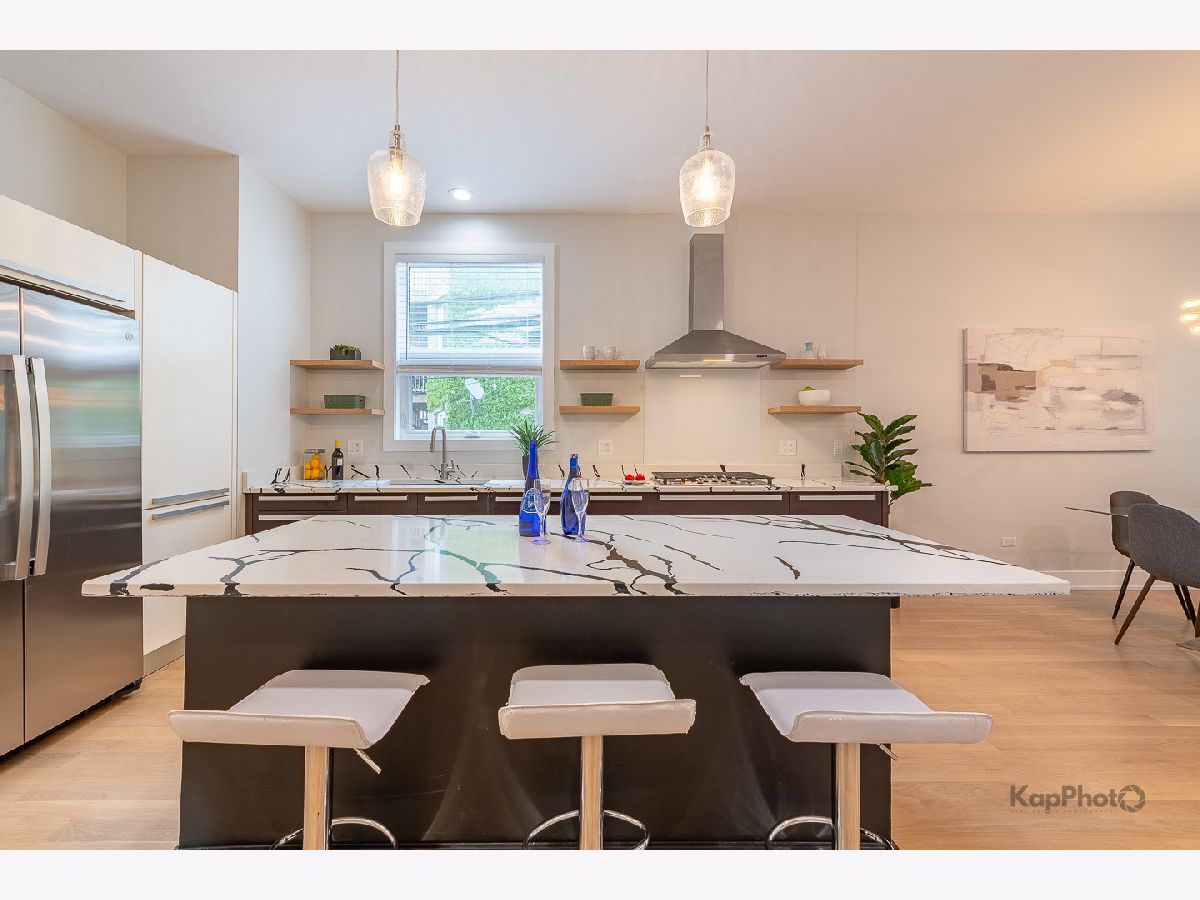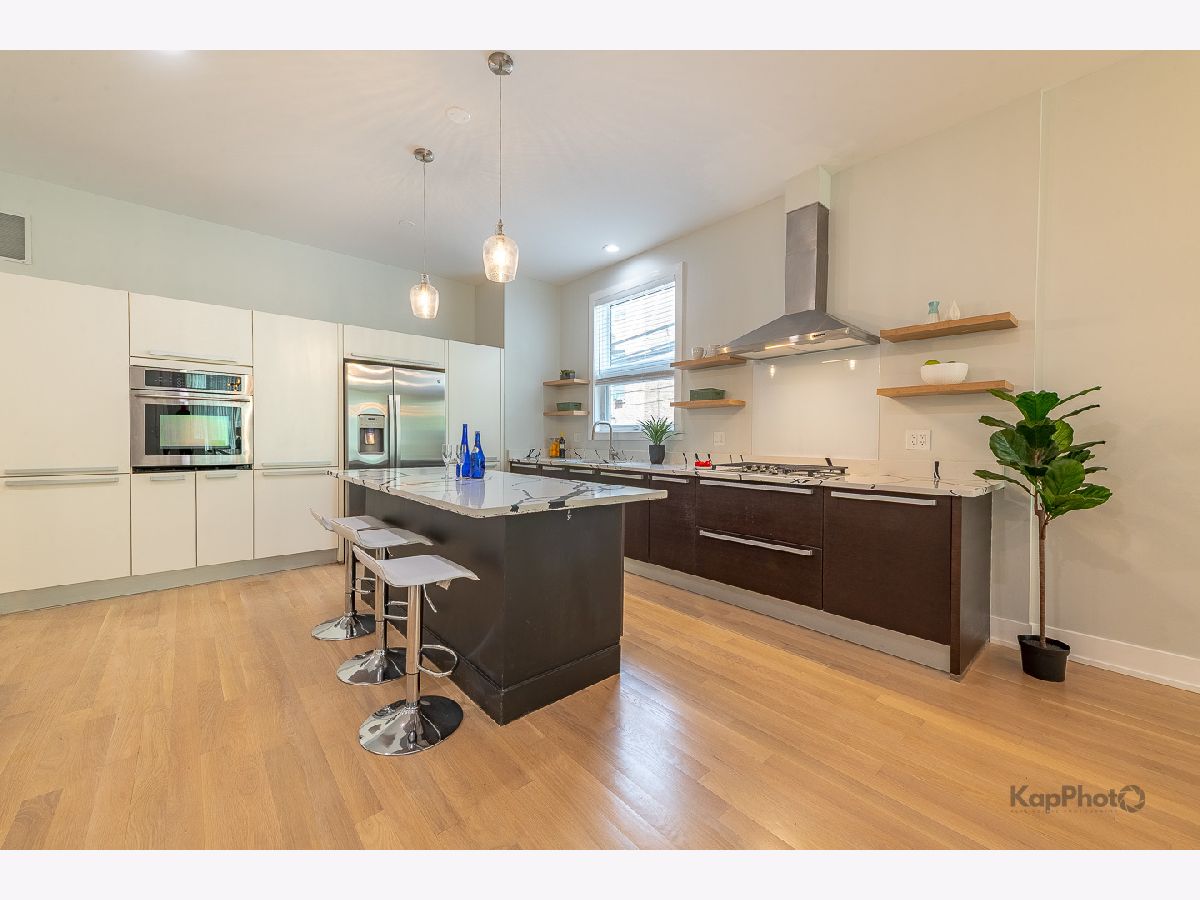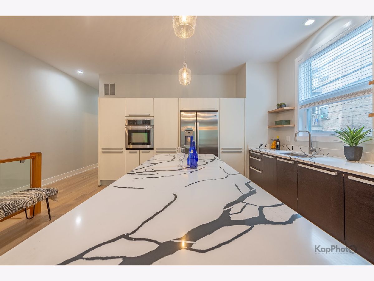 Huge, amazing, fully remodeled 2400sqft, with 10ft ceilings, duplex-down in Tri-Taylor, on a quiet, tree-lined street: 3 bedrooms, 2.1 baths, and your own private deck. Inside, Italian-inspired cabinetry and quartz countertops in the kitchen, paired with new stainless steel appliances, create a perfect setting for gatherings. A sleek electric fireplace that provides heat and a custom wet bar in the basement adds warmth and flair. 8 new oversized front windows flood the space with light, and every 2025 upgrade - from stainless-steel appliances and a high-efficiency A/C, to white oak hardwood floors on the 1st fl, and luxury vinyl flooring in the lower level, and a 73-gallon water heater - speaks to thoughtful craftsmanship. With a corner garage spot and close to the Blue Line, Taylor Street's renowned eateries, Medical Center, and the University of Illinois campus, this is urban living redefined. Building allows AIRBNB & short-term rentals. Must see!