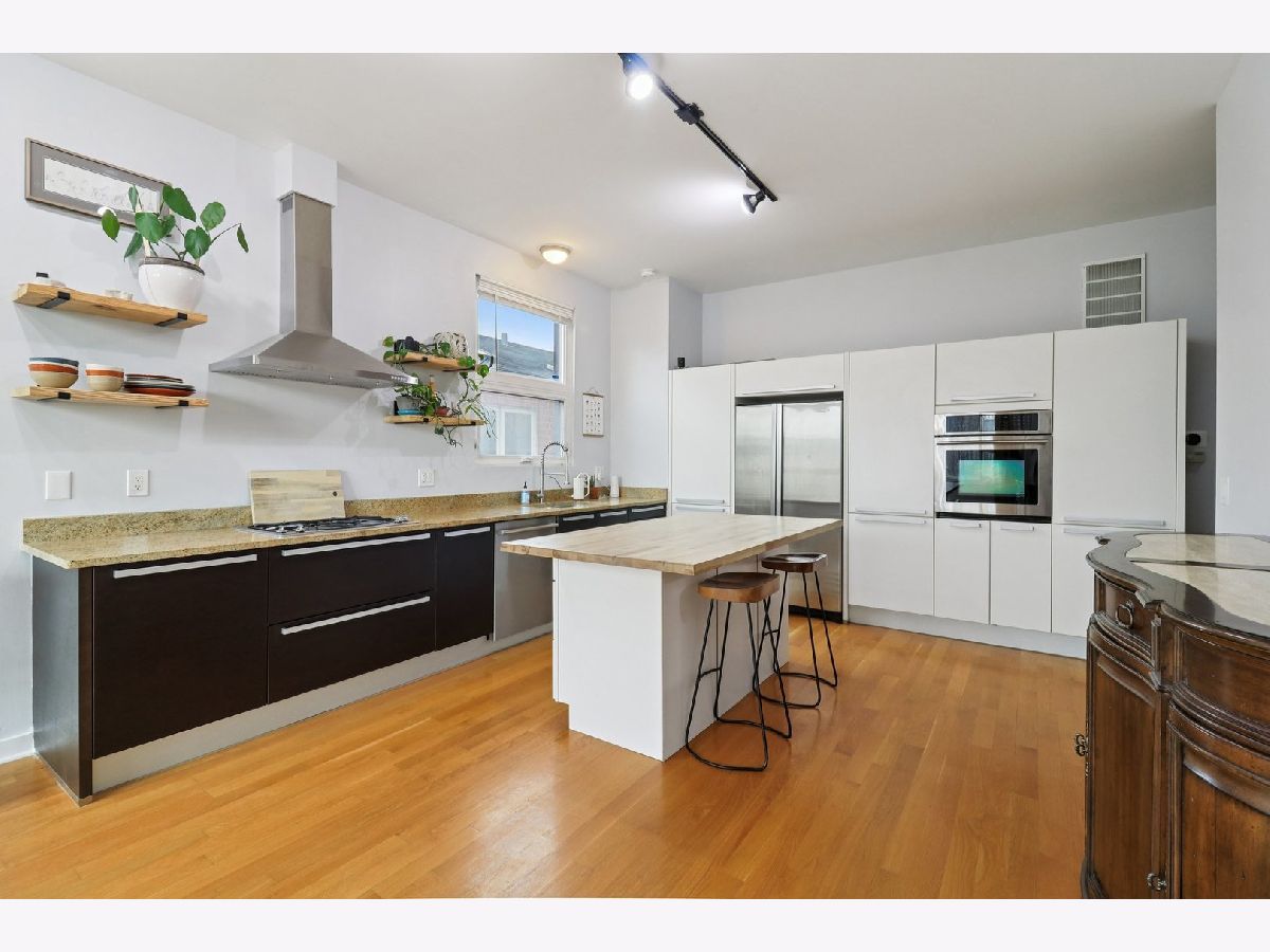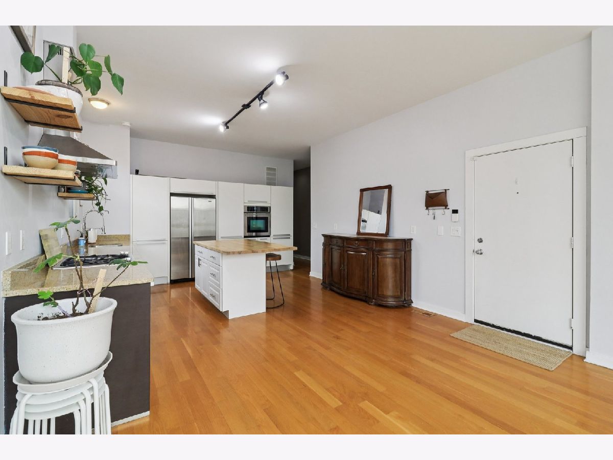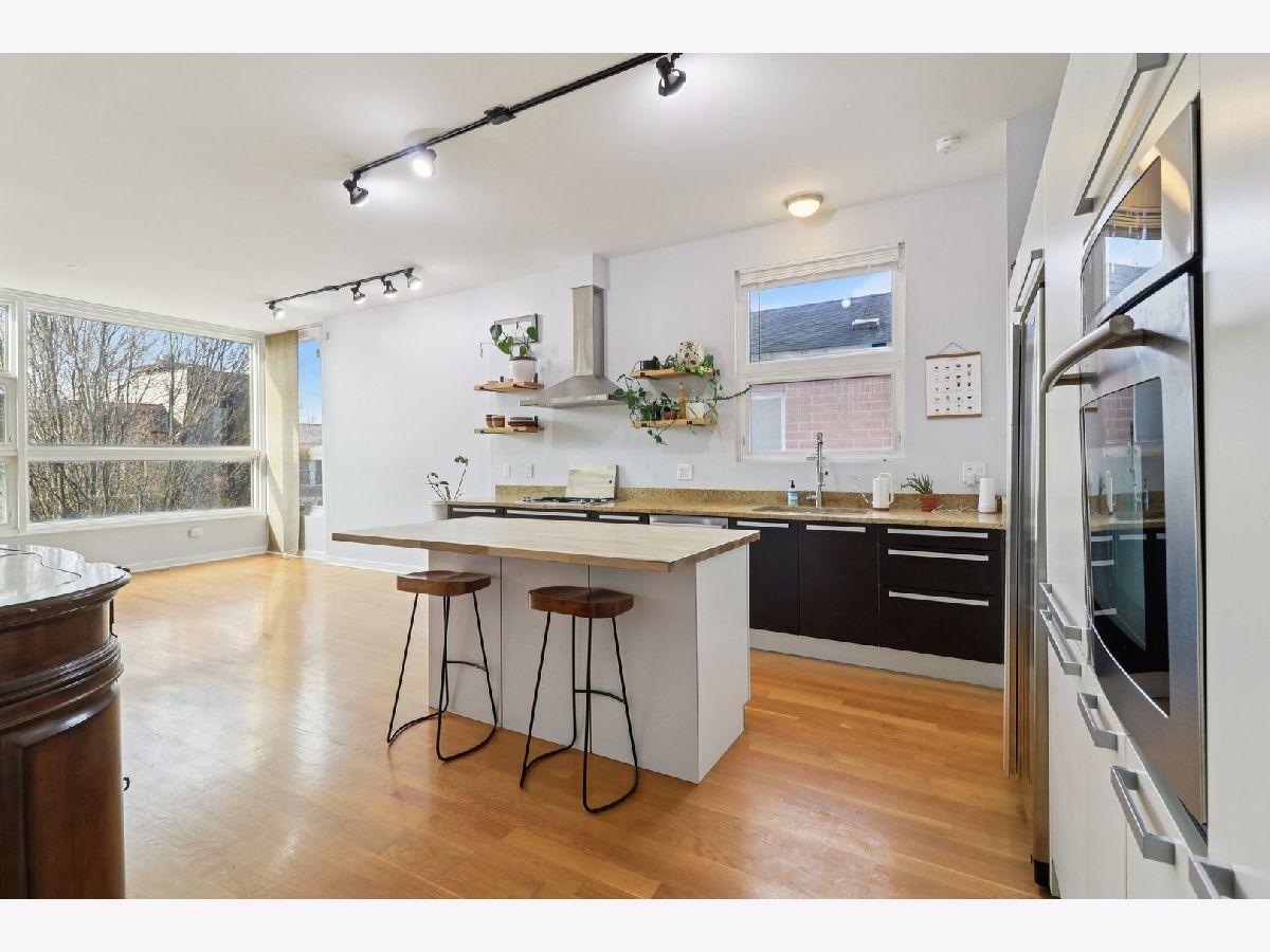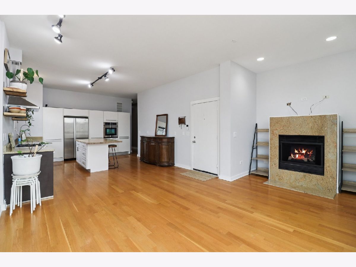 Experience this sun-drenched contemporary condo in Tri-Taylor. The expansive open floor plan makes a striking first impression with 10' ceilings, flawless oak hardwoods, and a cozy gas fireplace-all bathed in natural light from oversized windows (newly replaced in 2019). The sleek Euro-kitchen features a brand-new range hood (2026) and dishwasher (2023). The primary suite boasts natural stone tiling, a double vanity, and a spa-inspired bath with a walk-in shower and deep jetted tub. Additional amenities include a rear deck, garage space, and extra storage. Updates include: Furnace (2026), Washer/Dryer (2022), and remodeled spare bathroom (2026). Located steps from the UIC/Rush Medical District and Little Italy, with easy access to I-290 and two Metra lines.