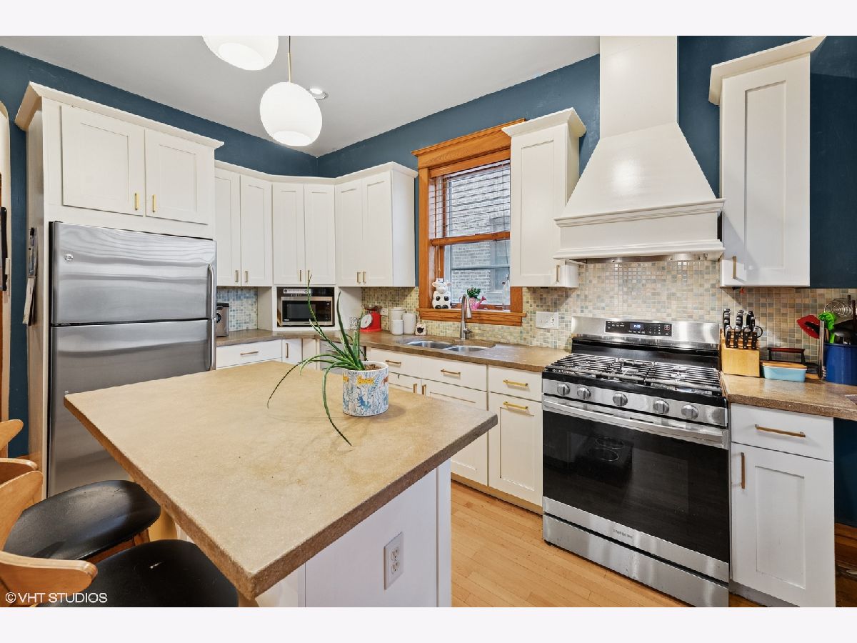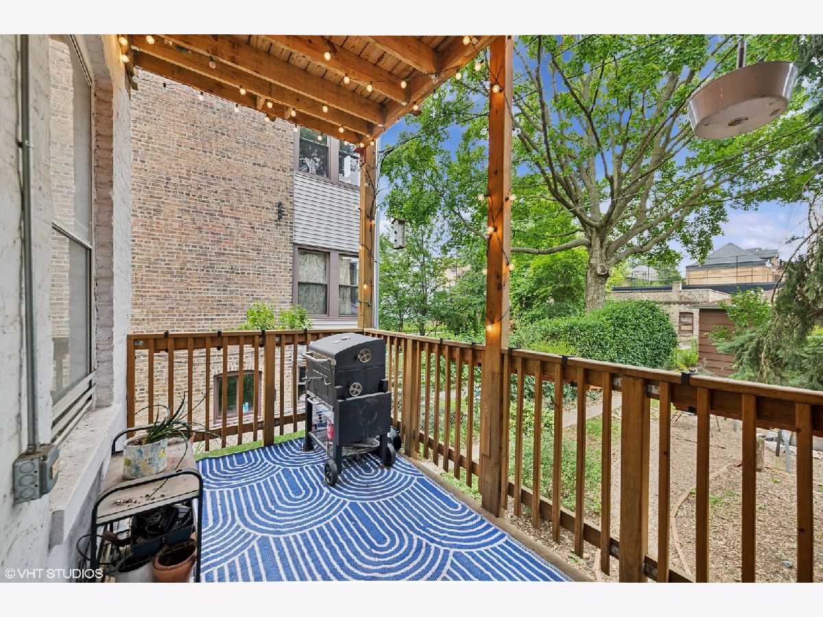 Welcome to this stunning 2 bedroom, 1 bathroom vintage greystone on a high first floor, blending timeless character with thoughtful updates. Step inside to find original woodwork, a built-in hutch, and hardwood floors that bring warmth and charm throughout. The updated kitchen features 42" cabinets, stainless steel appliances, concrete countertops, a large island, and a pantry for extra storage. The primary bedroom offers a generous walk-in closet with custom organizers. Enjoy the convenience of in-unit laundry and your very own private 2-car garage. Relax on the back porch overlooking an oversized backyard with a patio and beautifully maintained landscaping-perfect for entertaining or quiet evenings at home. Nestled in the heart of Logan Square, this home combines vintage elegance with modern comfort, all within one of Chicago's most vibrant neighborhoods. Known for its tree-lined boulevards, historic architecture, and lively arts scene, Logan Square offers a unique blend of culture and charm. Residents enjoy an abundance of locally owned restaurants, cafes, and markets, along with easy access to parks, music venues, and community events.