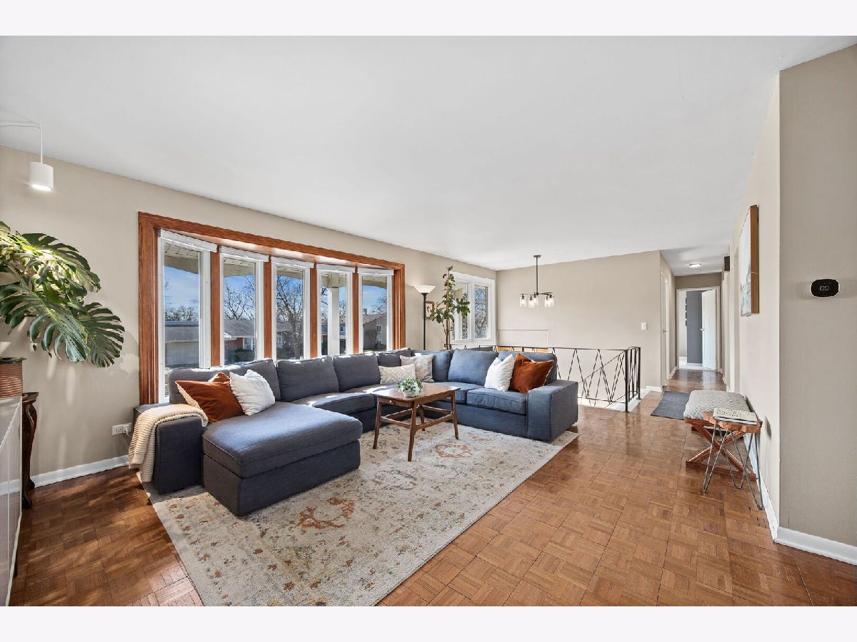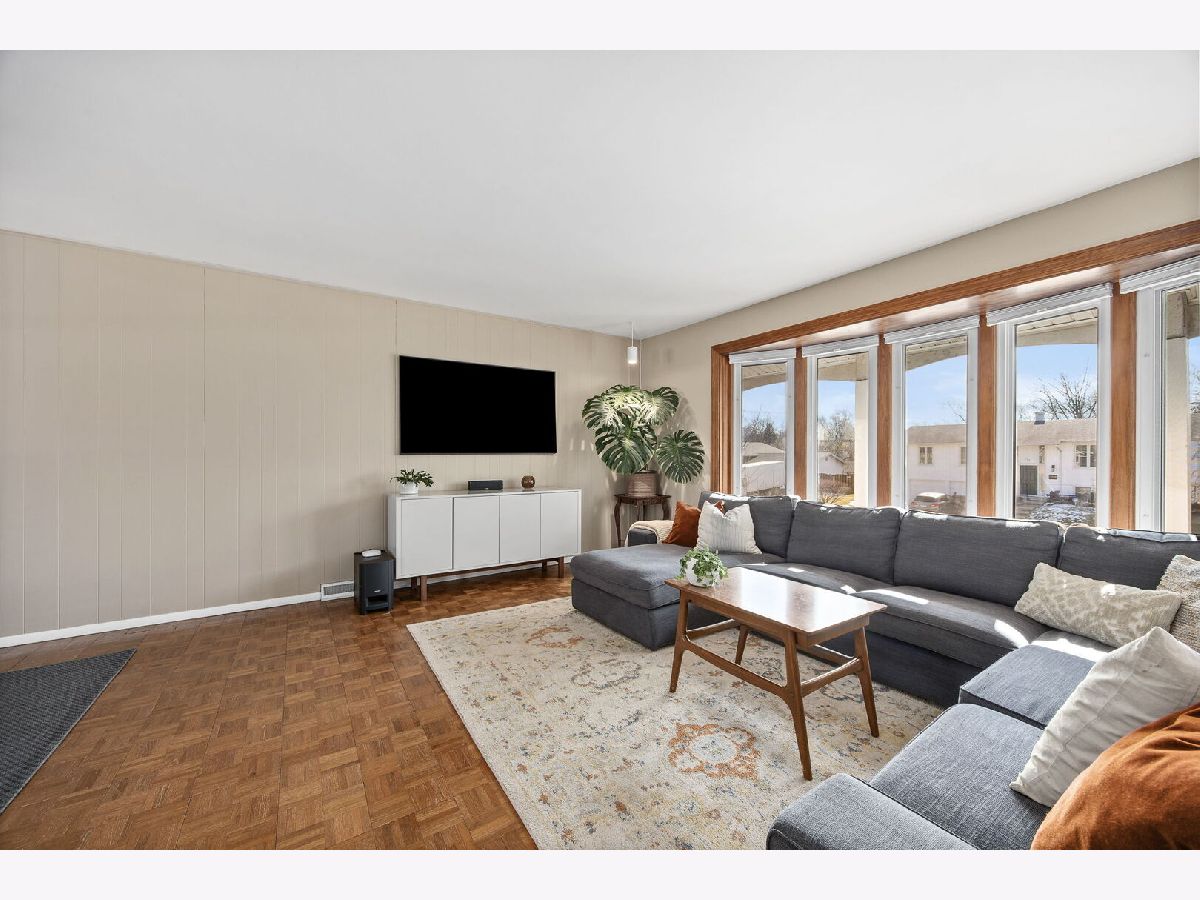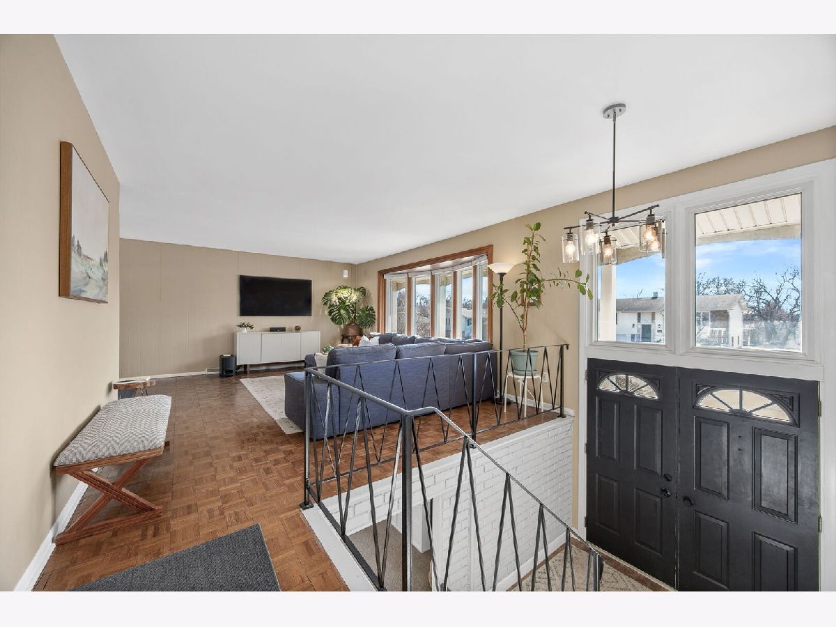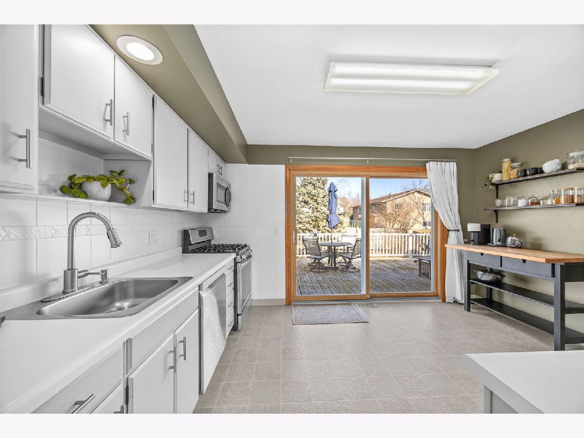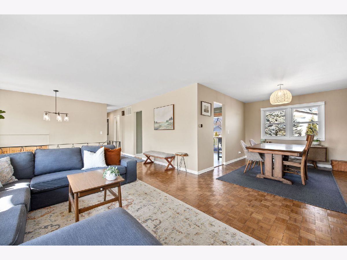 Welcome to this beautifully updated 4-bedroom, 2-bath raised ranch offering 1,872 square feet of well-designed living space in desirable Woodridge! Step into a bright entryway that opens to the living and dining rooms, where hardwood parquet flooring gleams and large windows fill the home with natural light. Recent paint updates throughout the entry, living room, dining room, and kitchen create a clean, move-in-ready feel, complemented by updated lighting in the entry and dining areas. New interior doors throughout the home add a crisp, cohesive finish. The kitchen features white cabinetry, white tile backsplash, Samsung stainless steel appliances, LG dishwasher, and an impressive 8-foot sliding glass door leading to a spacious 26' x 16' wood deck, completely replaced in 2015, with vinyl railing and stairs to the backyard, making it ideal for outdoor entertaining. The main level includes three generously sized bedrooms with newer carpet (2020). The full bathroom was completely renovated in 2018 (taken down to the studs) and showcases dual natural wood vanities with abundant storage, large mirrors, and a shower/tub combination. The lower level has been recently painted and expands the living space with a bright recreation room featuring newer light fixtures, a versatile fourth bedroom perfect for a home office, guest room, or fitness space, and a full bathroom with stand-up shower. The laundry room includes washer and dryer, along with newly installed partitions (2026) for added organization. Exterior highlights include a classic brick and vinyl facade, newer Gilkey windows throughout, a two-car attached garage, and a fenced backyard with professional landscaping featuring a Quaking Aspen, River Birch, four Arborvitae, and two Ninebark trees. Conveniently located just minutes from downtown Downers Grove, approximately 2 miles from the Belmont Metra station for easy access to Chicago, and close to parks, schools, I-355, and I-88. Move-in ready with thoughtful updates throughout, schedule your private showing today!