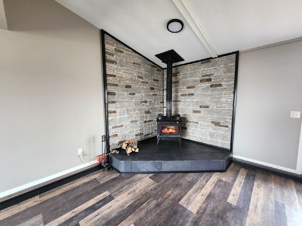 Country living with in-town convenience ~ This 2 bed, 1 1/2 bath will not disappoint ~ Offering a freshly painted, bright kitchen with table space, skylights and abundant natural light, new vinyl plank flooring, plus access to the side deck for easy outdoor dining ~ Both bedrooms have been freshly painted and have new carpet ~ The full bath has been beautifully updated ~ The inviting living room features a wood-burning stove and sliding doors that open to the fenced backyard (7' wood privacy fence) ~ Spacious recreation room, (suburb potential, with space and layout suitable to add two additional bedrooms) which has an English style basement that offers a ventless gas heater with blowers ~ Half bath ~ Large laundry / storage area ~ 3 car detached garage with concrete and electric ~ New well in April of 2025 ~ Vinyl siding is 2 1/2 years new
