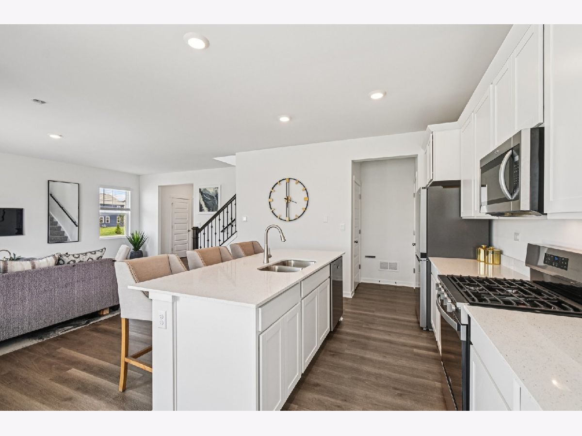 Welcome to 2424 Semillon St. the Sloan floorplan is located at the beautiful amenity filled Sonoma Trails Community in Oswego, IL with a POND VIEW. Home will be available for a fall move-in. This scenic homesite will include a fully sodded yard and landscaping package. The Sloan plan offers over 1,900 square feet of living space with 4 bedrooms and 2.5 baths. Enjoy this open concept home with natural light throughout your main level. Coming through your front door you'll find your powder room and coat closet in your foyer. The great room, dining room, and kitchen flow effortlessly together, making it your home the perfect entertainment space. Your kitchen features 42" designer cabinetry with quartz countertops, and a pantry. Walking up the beautiful rod iron staircase you will find your private oasis with your primary bedroom on its own side of the top floor complete with an en suite bathroom complete with a raised dual quartz vanity and walk in closet, and linen closet. Enjoy the convenience of a top floor walk in laundry room and all secondary bedrooms upstairs with a full second bathroom with a dual vanity and linen closet. Sonoma Trails is located in Oswego, this charming, historic town evokes a family atmosphere with countless options for shopping, dining and entertainment. All Chicago homes include our America's Smart Home Technology, featuring a smart video doorbell, smart Honeywell thermostat, smart door lock, Deako smart light switched and more. Photos are of similar home and model home. Actual home built may vary. Builder Warranty 1-2-10. Exterior/interior photos of similar home, actual home as built may vary.