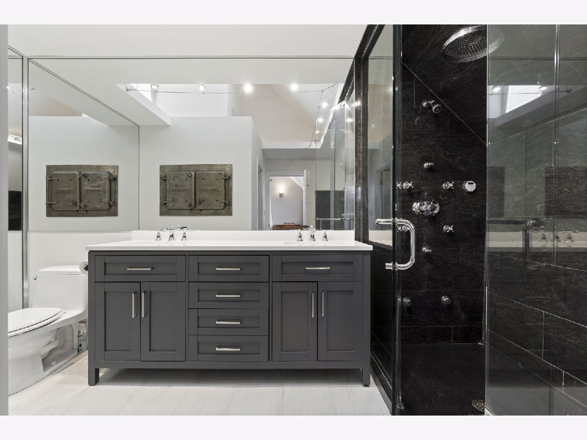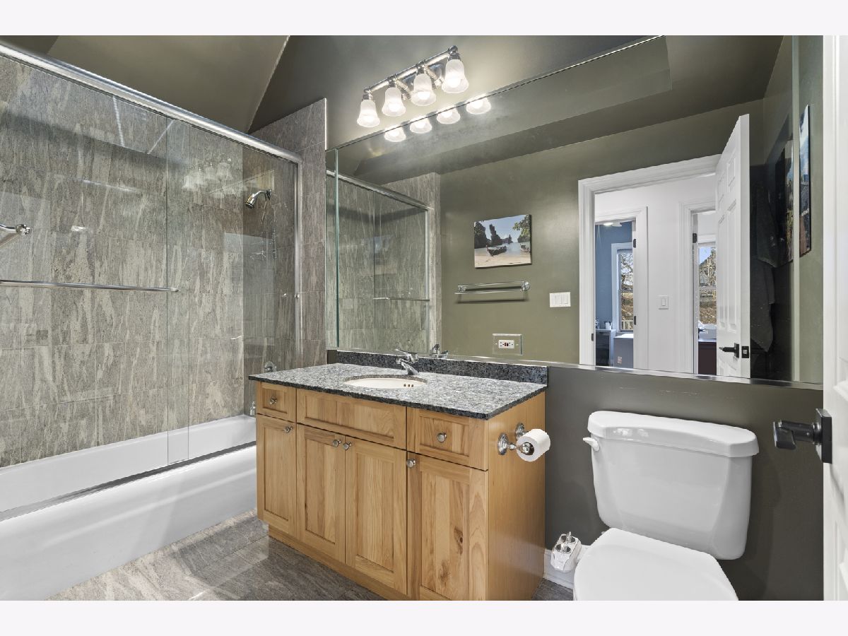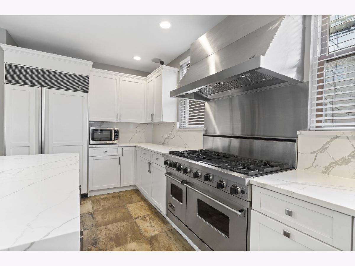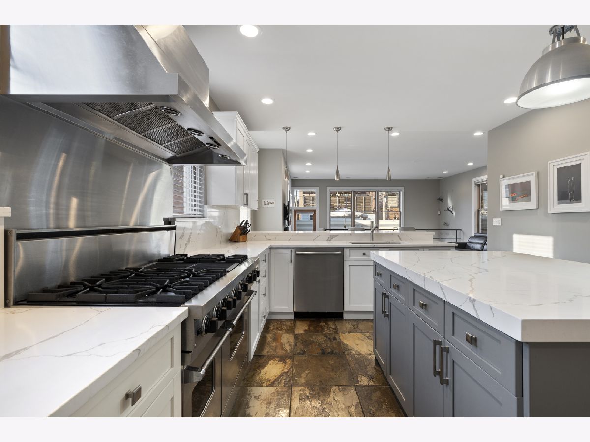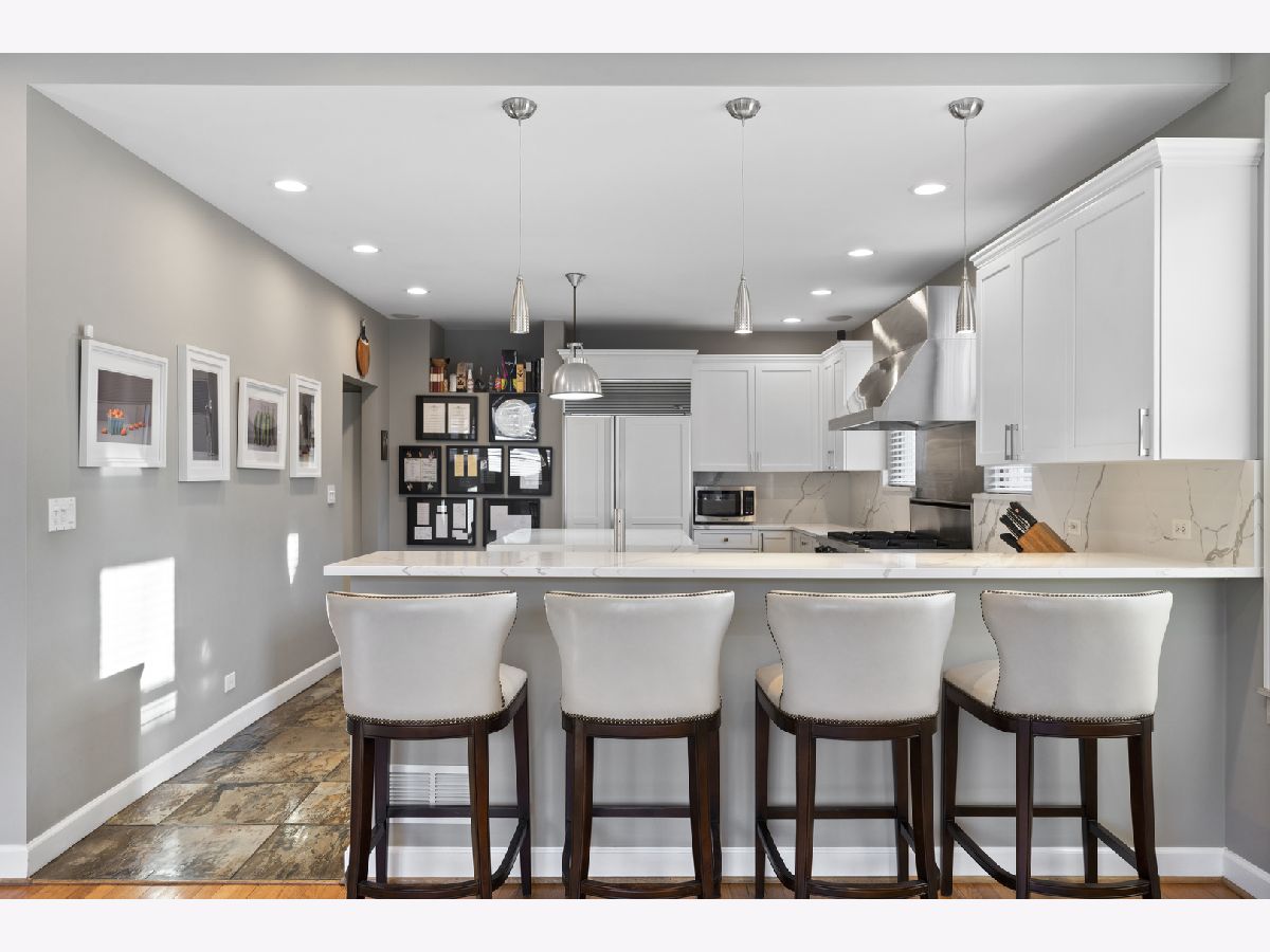Tremendous home situated on a 32-foot-wide lot with remarkable curb appeal and an inviting front porch. This well-appointed 4-bedroom, 3.1-bath residence offers unparalleled natural light from the south and west exposures. A functional layout, quality updates, and meticulous maintenance make this home truly turnkey. A unique side entrance leads into a dramatic two-story atrium featuring an open staircase and skylights. The oversized, updated white kitchen is equipped with professional-grade appliances, a spacious island, and breakfast bar, and opens to an extra-wide great room with three walls of windows. A separate formal dining room with fireplace provides exceptional entertaining space, enhanced by large French doors that open to the covered front porch. The second level includes three well-appointed bedrooms, two full baths, and convenient laundry. The spacious primary suite features vaulted ceilings, skylights, and an updated, oversized bathroom with double vanity, separate shower and tub, and a large walk-in closet. The lower level offers a generous family room with radiant heated floors, fireplace, and wet bar, along with an additional bedroom and full bath-ideal for guests. Outdoor living is equally impressive with a newer synthetic deck and patio, perfect for entertaining. Complete with a three-car garage.