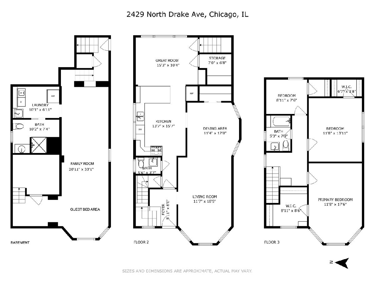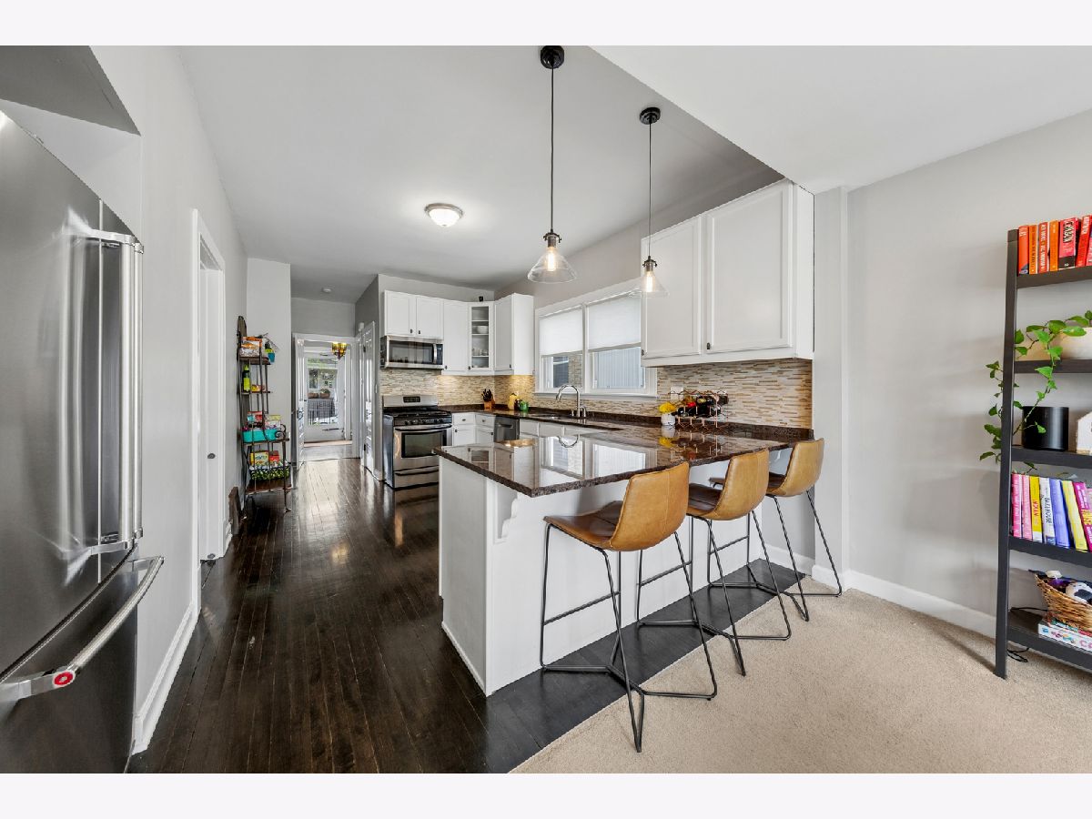 This beautifully updated Logan Square single-family home sits in a superb location on a quiet, tree-lined street just blocks from the Blue Line Logan Square Station and Logan Square Farmers Market, and only a short distance to the Healy Metra Stop. It has a fantastic open floor plan with a finished lower level, including a full bath and the potential to create a permanent fourth separate bedroom if so desired. Additionally, there is a play area for children and a desk/office space, perfect for working from home. The first floor boasts a spacious kitchen with ample counter space, a breakfast bar with barstools, and all stainless-steel appliances, including a newer Kitchen Aid fridge (2024) and Bosch dishwasher and new kitchen faucet. The adjacent great room is bright and sunny and offers serene views of the professionally landscaped backyard, designed by renowned local landscaper Christy Webber, complete with a new patio and hardscape. The first floor also features a living room and separate dining area. The top floor has three bedrooms, highlighted by a spacious primary bedroom with a large walk-in closet and custom cabinetry. This home has been meticulously cared for by the current owners and has had numerous recent updates, including a new flat roof, shower heads, and bathroom mirror (2025), a new sump pump and advanced basement water defender system from Perma-Seal (2024), a new garage roof and soffits (2022), a new roof on the house itself (2021), a new GE washer and dryer, new Hunter Douglas window treatments throughout, and upgraded blown-in insulation in the attic (2020). Ideally situated for commuting to downtown or O'Hare, this home is steps away from public transportation and offers easy access to the expressway. It is also conveniently located near a variety of shops, bars, and restaurants, including the wildly popular Lula Cafe among many others, and is only a short distance to Palmer Square Park as well. It's a great house in an A+ location!