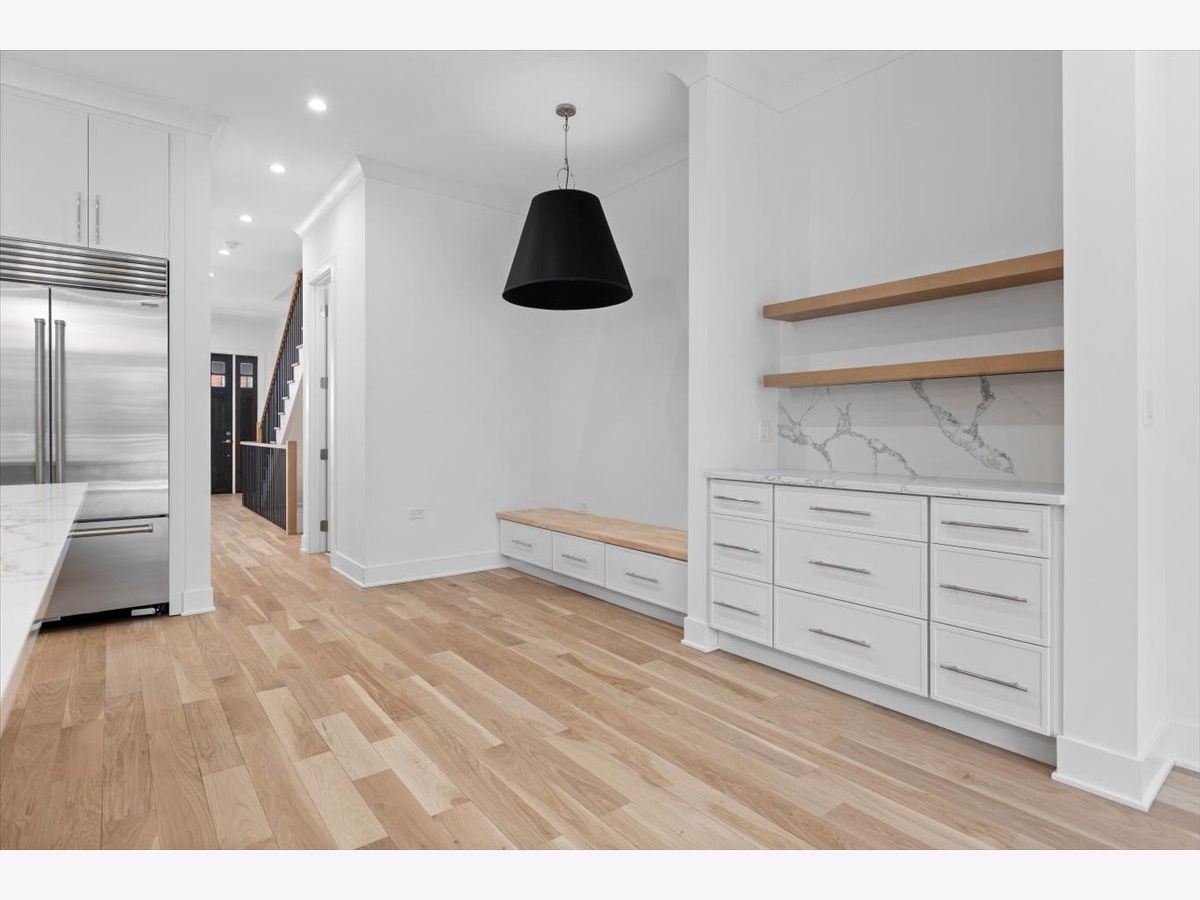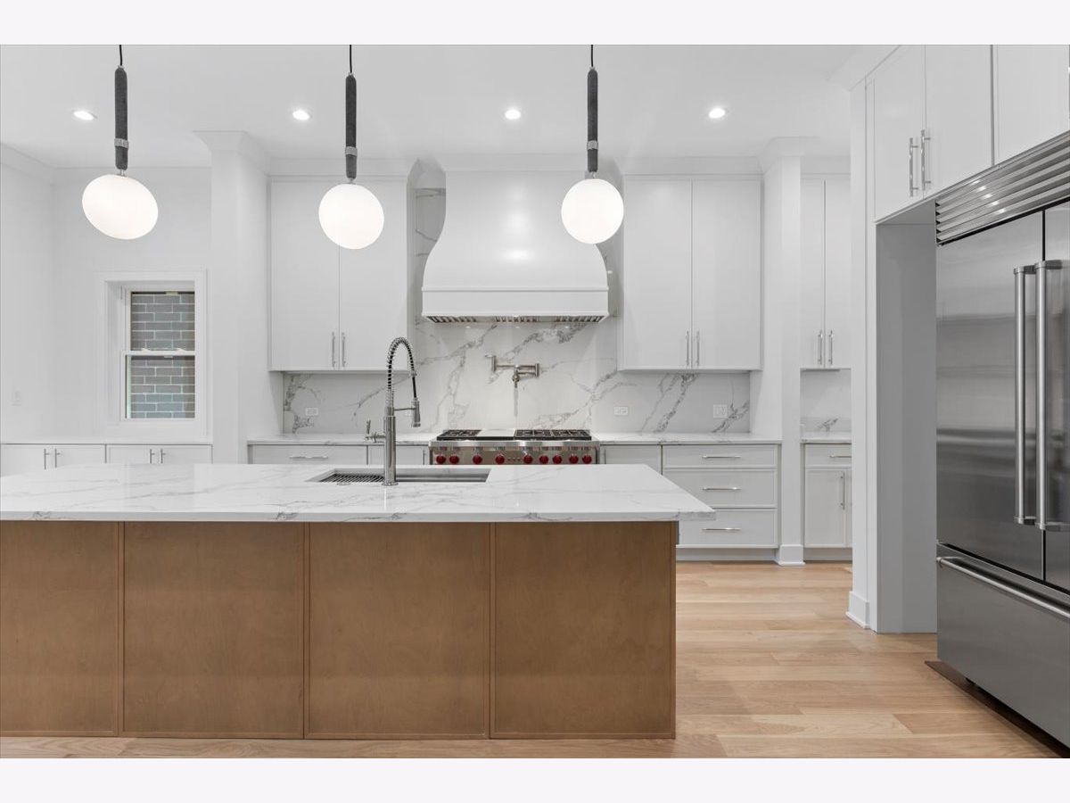 Nestled in the heart of North Center, this exquisite full gut-rehab is now complete! Located within the highly sought-after Coonley Elementary and Amundsen High School districts, this 6 bedroom, 4.2 bathroom residence spans three thoughtfully designed levels, with all new interiors within an ultra wide floor plan offering exceptional space for living and entertaining. Step inside to 10' ceilings welcoming you into an inviting living and dining area, ideal for both intimate gatherings and larger celebrations. The kitchen is a chef's dream, featuring a 48" Wolf range, Sub-Zero refrigerator, quartz countertops, custom white cabinetry, and a striking white oak island. A butler's pantry, wet bar, coffee bar, and built-in banquette seating add both style and function. Flowing seamlessly from the kitchen, the spacious family room is anchored by a sleek gas fireplace and custom built-ins, with direct access to the back deck-perfect for indoor-outdoor living. A well-equipped mudroom and a stylish powder room complete the main level. Upstairs, the second floor hosts four spacious bedrooms and three full baths, including the luxurious primary suite, a serene retreat featuring dual walk-in closets and a spa-like bath with a dual vanity, rain/steam shower, and a separate soaking tub. The second bedroom enjoys a private en-suite bath, while the remaining two share a Jack-and-Jill bathroom. A convenient second-floor laundry room adds ease to daily living. The fully finished lower level with 9' ceilings throughout is designed for relaxation and entertainment, featuring radiant-heated luxury vinyl plank floors, a wet bar, and a large rec room. Two additional bedrooms share a Jack-and-Jill bath, while an extra half bath adds to the home's functionality. Outside, enjoy summer evenings in the private backyard or on the rooftop deck of the newly built two-car garage. Just steps from the riverwalk path and Welles Park plus top-rated restaurants & bars like Kraken Sushi & Gideon Welles, Lincoln Square boutique shopping, and recreational hubs like Lil' Kickers, IK Gymnastics, and Goldfish & Big Blue Swim Schools, this home offers the ultimate urban lifestyle in one of Chicago's most desirable neighborhoods.