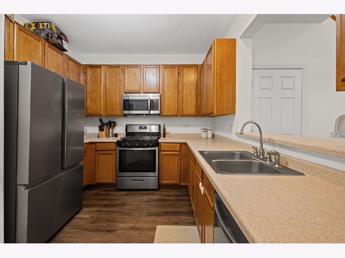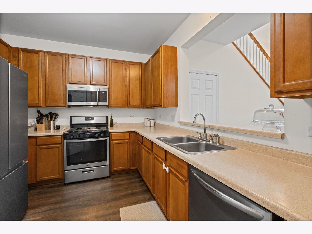 Beautiful open and airy two-story end unit townhome with a 2 car garage located in a quiet neighborhood! The main level features luxury vinyl flooring and a cozy family room, perfect for relaxing or entertaining. The kitchen includes stainless steel appliances and ample storage space. Upstairs offers 3 spacious bedrooms, including a primary suite with a large walk-in closet and a spacious bathroom featuring a double vanity sink. New windows in the bedrooms and stairway bring in natural light and include a transferable warranty. A wonderful combination of comfort, space, and convenience-ready to call home!