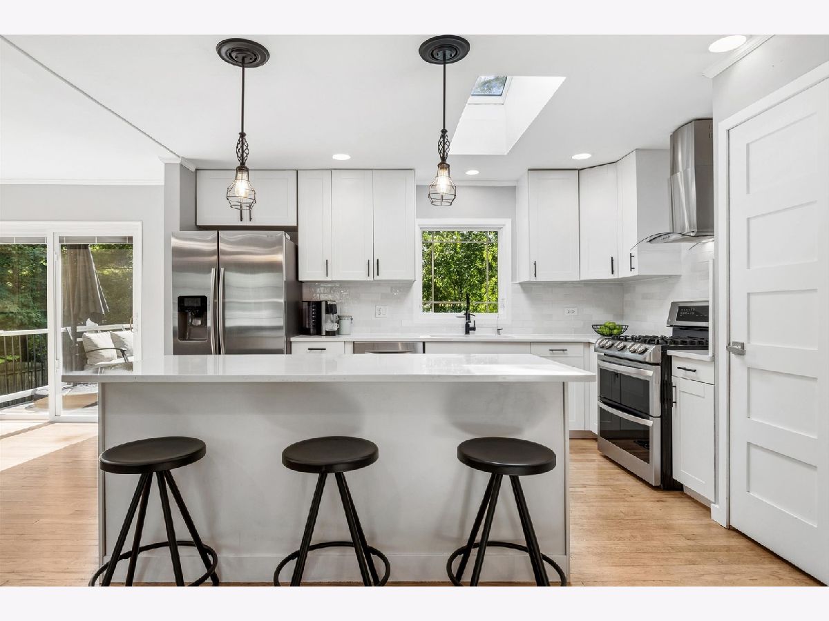 Welcome to this beautifully renovated 3-bedroom, 2-bathroom home located in highly sought-after SD District 204, with attendance to award-winning Neuqua Valley High School. Nestled on unincorporated land in Naperville, this property offers the advantage of some of the lowest property taxes in the area. Sitting on a spacious 1/2-acre fully fenced lot, the home features a maintenance free deck that showcases the serenity of a beautifully landscaped backyard shaded by mature trees -perfect for entertaining or relaxing in your private outdoor space. Every major item in this home is newer, including the roof, HVAC, siding, windows, and water heater. Inside, the open-concept living space showcases a stunning, fully remodeled kitchen equipped with quartz countertops, a large kitchen island, pantry closet and stainless-steel appliances. The bathrooms have been completely updated with modern finishes, including a floating vanity and a sleek walk-in shower. Additional upgrades include recessed lighting and crown molding throughout the main living areas, wrought iron stair railing, and beautiful hardwood flooring on the main level. All bedrooms are fitted with ceiling fans for added comfort. The home also features a spacious mudroom and laundry area. This move-in-ready property offers the perfect blend of style, functionality, and location in one of Naperville's most desirable areas.