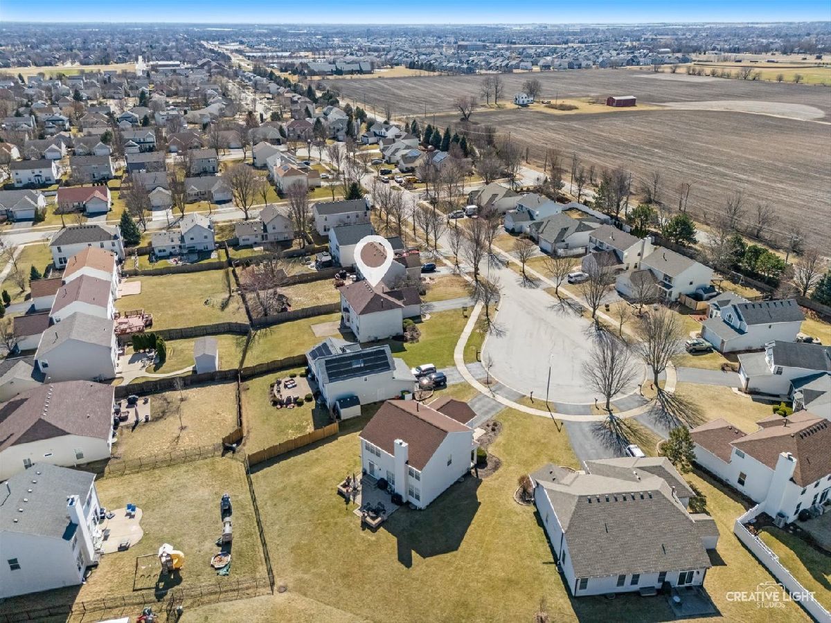 Impeccably maintained and beautifully updated, this stunning two-story home in North Plainfield offers the perfect blend of comfort, style, and functionality. This home features open space living with 3 spacious bedrooms plus a versatile loft which can easily be converted to a 4th bedroom, 2.1 bathrooms, and a first-floor den-ideal for a home office or flex space. The beautifully updated kitchen features quartz countertops, stainless steel appliances, and a plethora of cabinets and storage, making it both stylish and highly functional. The main level showcases newer engineered hardwood flooring and carpet, adding warmth and modern appeal throughout the living spaces. Upstairs, the primary suite offers a private retreat, complete with a double doors, walk-in closet, sitting room, and full en-suite bathroom. The powder room and hall bathroom have also been remodeled, offering fresh finishes and thoughtful updates. The unfinished basement provides excellent storage or the potential for additional living space to suit your needs. Additional highlights include an attached 2-car garage, private cul-de-sac location and a big yard with an oversized brick paver patio. Located in the highly sought-after School District 202, the home is within walking distance to Heritage Grove Middle School and Plainfield North High School. Enjoy a fantastic location with convenient access to Interstate 55, along with nearby shopping and dining in South Naperville, and the charm of Downtown Plainfield. This is a wonderful opportunity to own a beautiful home in one of North Plainfield's most desirable neighborhoods Heritage Meadows.