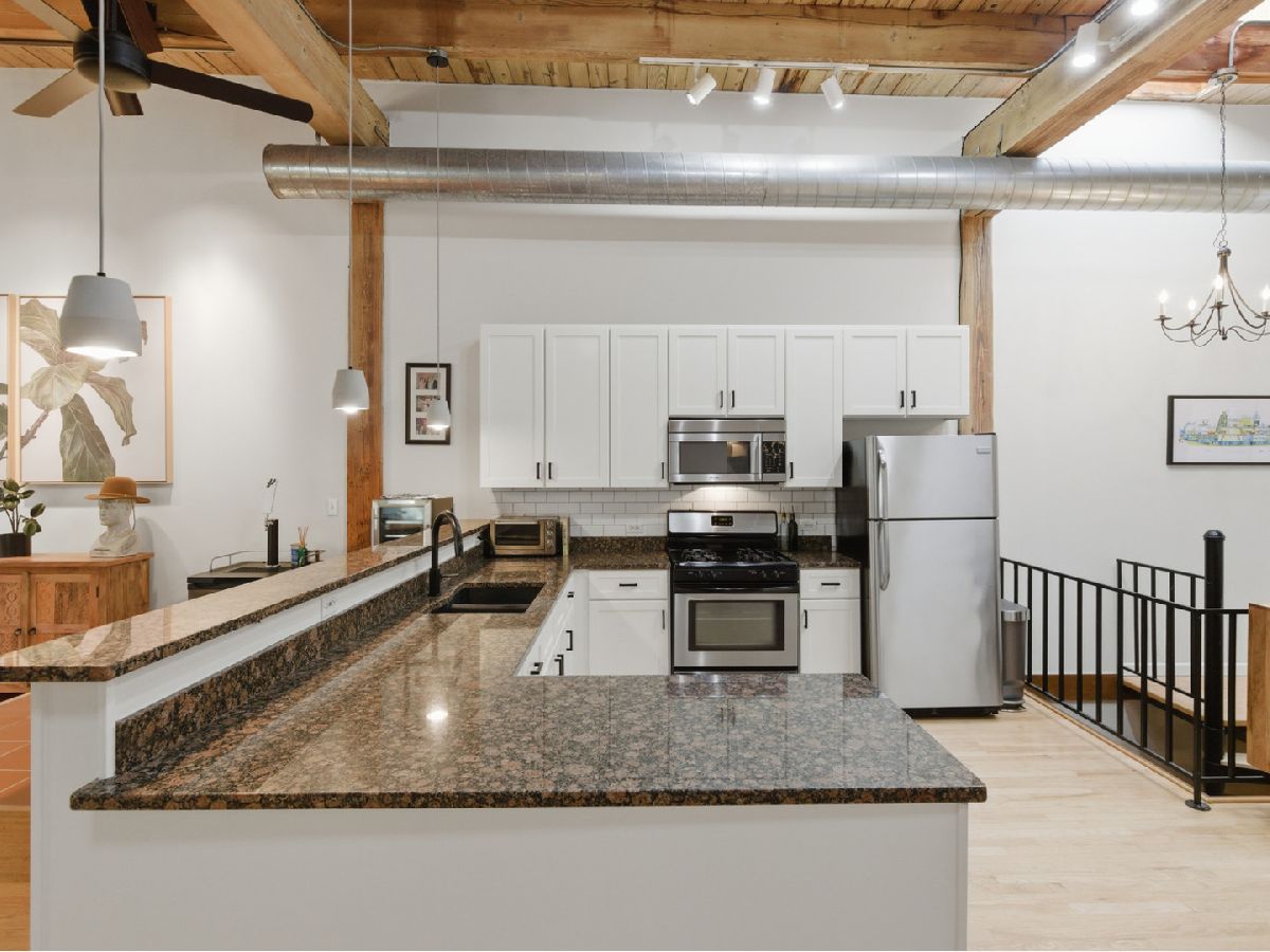 If you've ever daydreamed of a space that feels like a gallery, a retreat, and a city loft all rolled into one, here's your moment. This rare duplex loft condo, once part of the historic Cracker Jack factory, is where character meets comfort in the heart of Lincoln Park. With 15-foot timber ceilings, exposed brick, hardwood floors, and skylights, this home blends warmth, light, and architectural charm. The open-concept living and dining areas flow seamlessly into an updated kitchen with granite counters, stainless steel appliances, island seating, and refinished cabinetry. The dramatic upper level offers incredible light and flexible living space, while the lower level features a private primary suite with generous closets and an ensuite bath. Enjoy the glow of the iconic gas-start wood-burning fireplace, in-unit laundry, central air, and abundant storage including two lofted storage areas, a separate storage unit, and attached heated garage parking included in the price. Relax or entertain on the rebuilt common rooftop deck with skyline views, gas grill, and party lights. Steps to the CTA Red, Brown, and Purple Lines at Fullerton, Whole Foods, DePaul University, Armitage, Halsted, Sheffield and Southport shops and restaurants, and local favorites like Verzenay, Range, and Galit. This is Lincoln Park living at its best - historic, walkable, and full of energy.