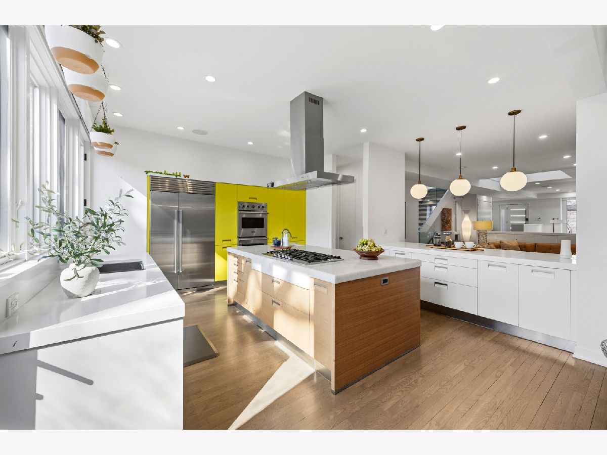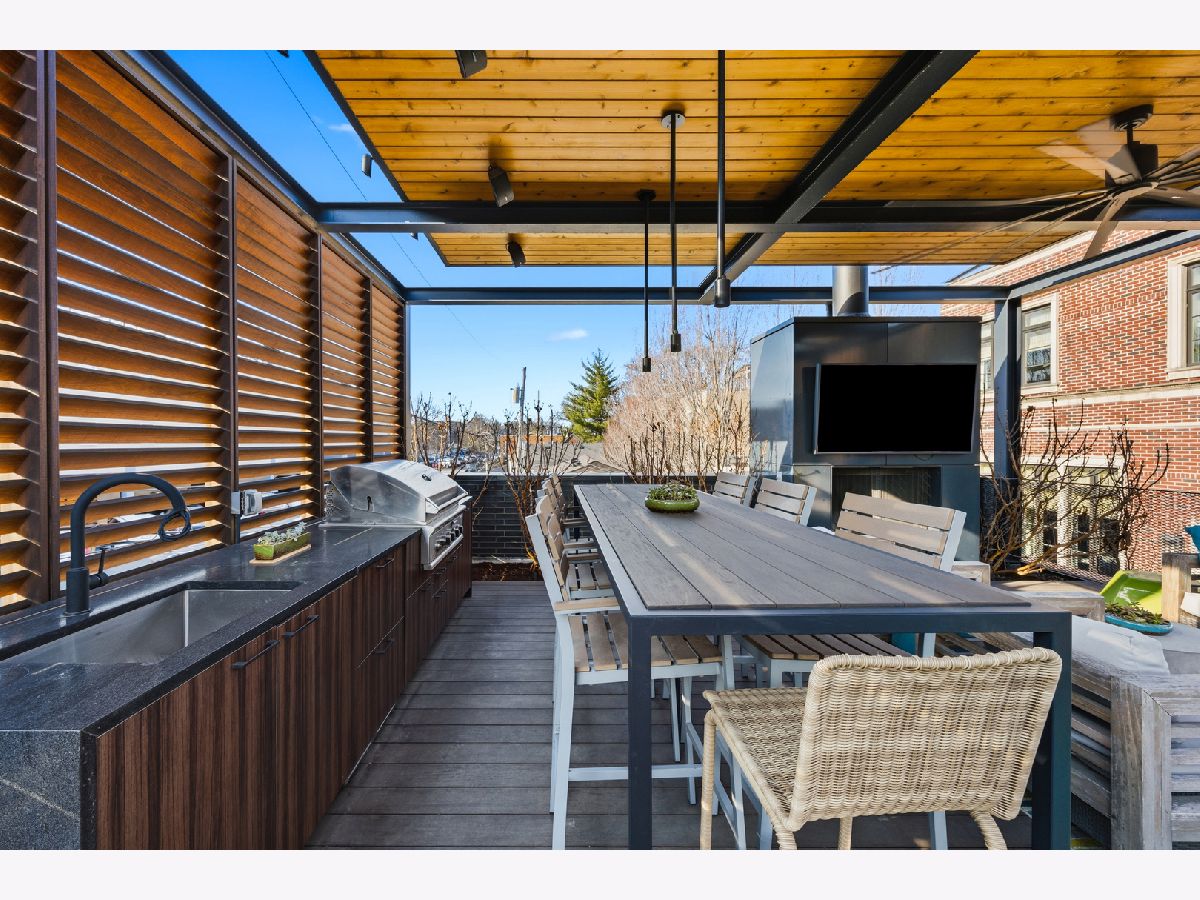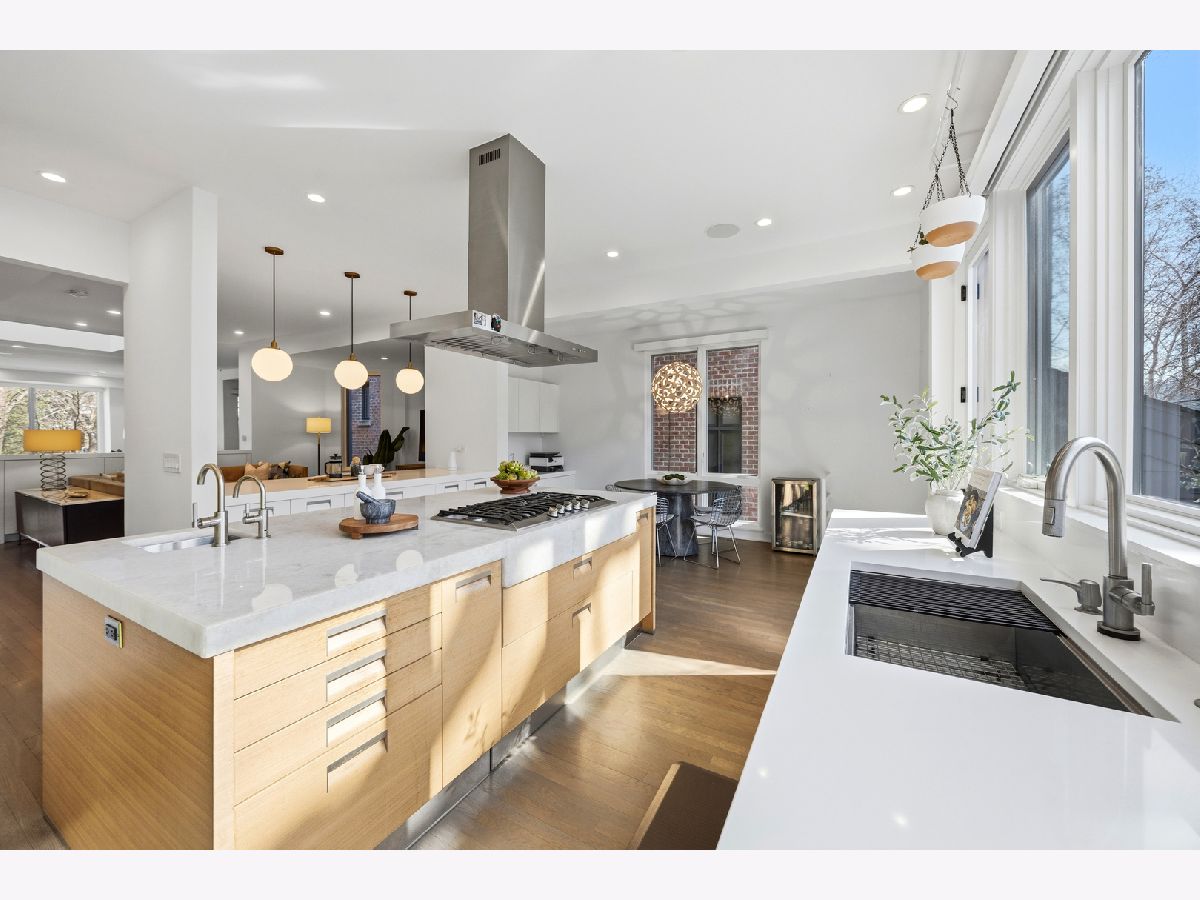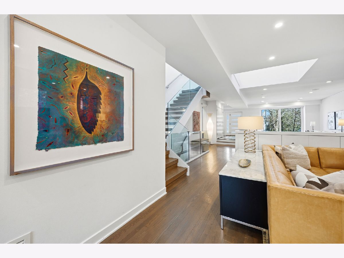 Set on coveted Surrey Court in Lincoln Park, this exceptional 5+ bedroom residence sits on an oversized 30' x 140' lot, maintaining its original extra-wide footprint. The home is the result of a deeply intentional redesign, where the current owners invested in a fully customized transformation-creating a seamless dialogue between 4500+ sqft of interior & 2500+ sqft of exterior living that evolves with the seasons. Rooted in the architectural pedigree of renowned Chicago architect Marcel Freides, originally reimagined in 2016 by Mastro & Skylar, and elevated to the next level in 2022 by Jaffe Architecture in co-collaboration with designers VerStraight Design and Nanette Mortel, the residence blends timeless design with modern luxury and meticulous craftsmanship. Perfectly positioned to capture sunlight from every angle, an incredible number of expansive windows invite natural light and gentle breezes to flow throughout the home, while framing views of the beautifully matured landscape from every level. Sunlight pours into every level through a dramatic 25-foot skylit atrium showcasing a sculptural contemporary open-riser staircase that anchors the home. A formal living room, generous dining area for 16, plus a cozy family room off the kitchen create versatile spaces for living and entertaining. The Arclinea Italian oversized kitchen features large dining area and a convenient office nook-perfect for a household hub. Features include Cristallo Quartzite countertops, a double-thick island, top-tier Viking, Sub-Zero, and Miele appliances. The lower-level family room is thoughtfully positioned above average grade, featuring oversized windows and a glass wall of double doors that cascade to a bluestone patio and grassy yard, continuing the home's intentional balance of indoor and outdoor living. Upstairs, four bedrooms are filled with natural light, while the primary suite offers vaulted ceilings, spa bath, and serene treetop views. Outdoor living is further enhanced by a private rooftop deck with IPE decking, fully equipped outdoor kitchen, gas fireplace, integrated planting beds, and complete privacy-no neighboring rooftop decks in sight. Professionally designed landscaping, mature plantings, and bluestone hardscaping complete the home's grounds. Mechanical systems and appliances are thoughtfully updated, including newer HVAC units, roof, and hot water tanks, along with recently serviced kitchen appliances, ensuring comfort and efficiency throughout the home. Located within the Oscar Mayer School District on an idyllic, tree-lined street, this one-of-a-kind residence combines architectural pedigree, meticulous craftsmanship, and a seamless connection between interior and outdoor living