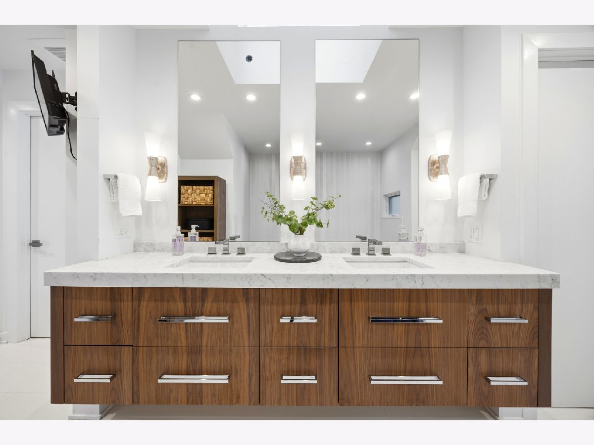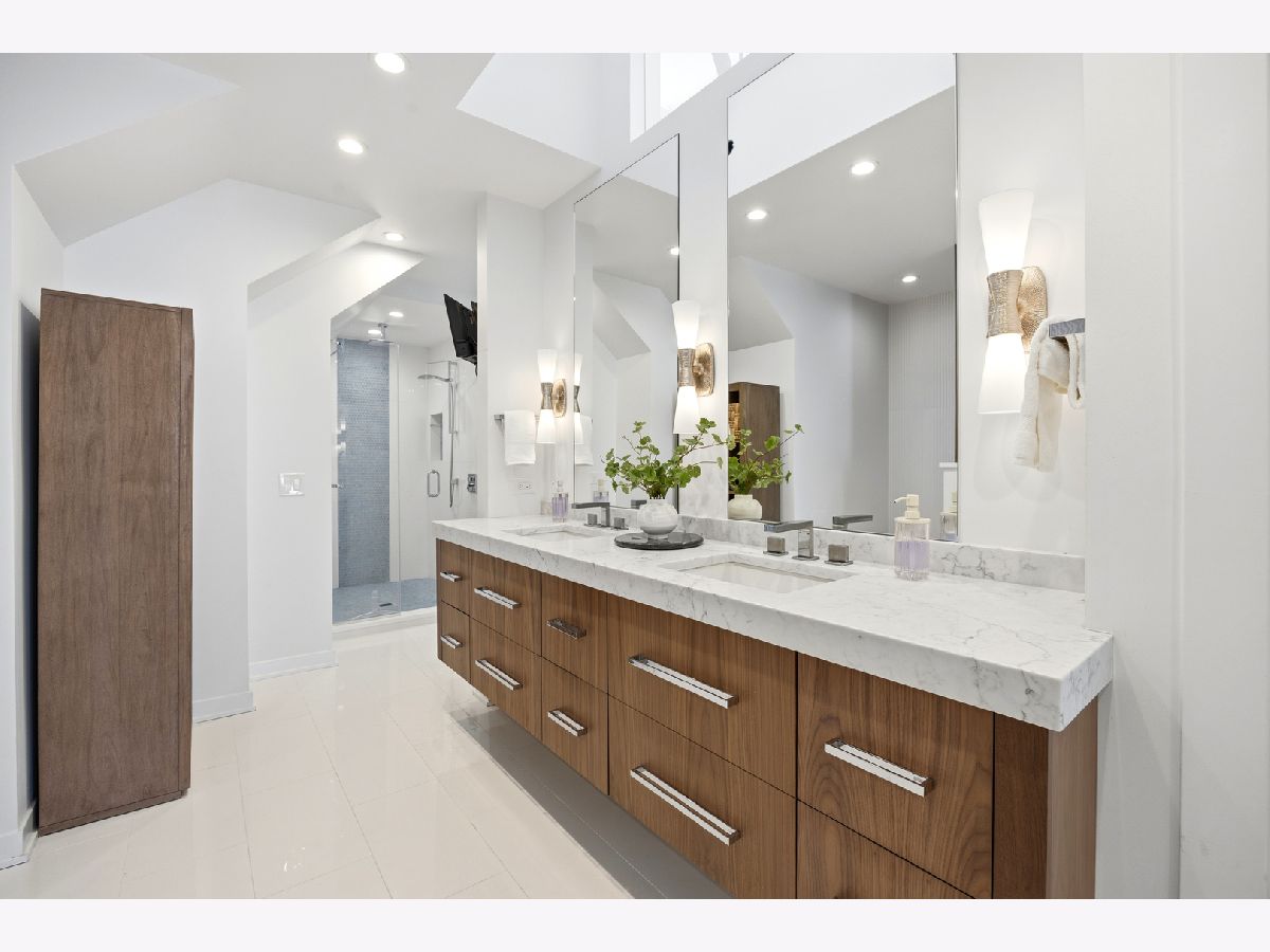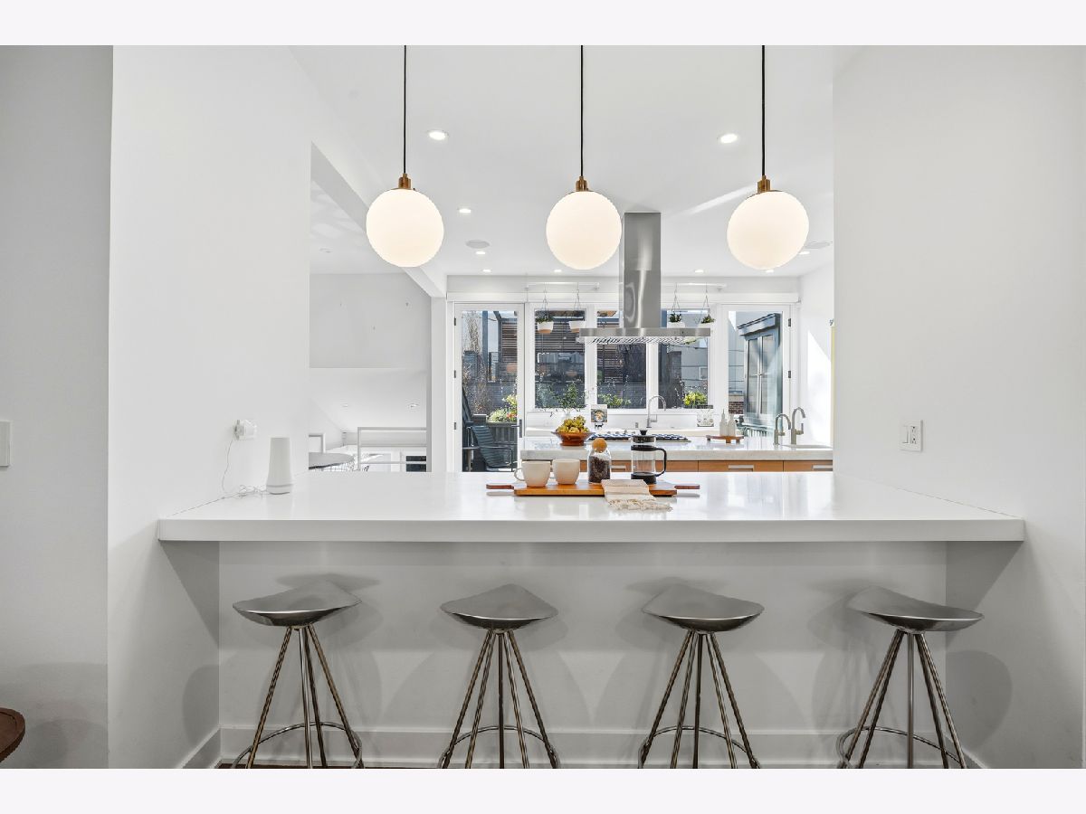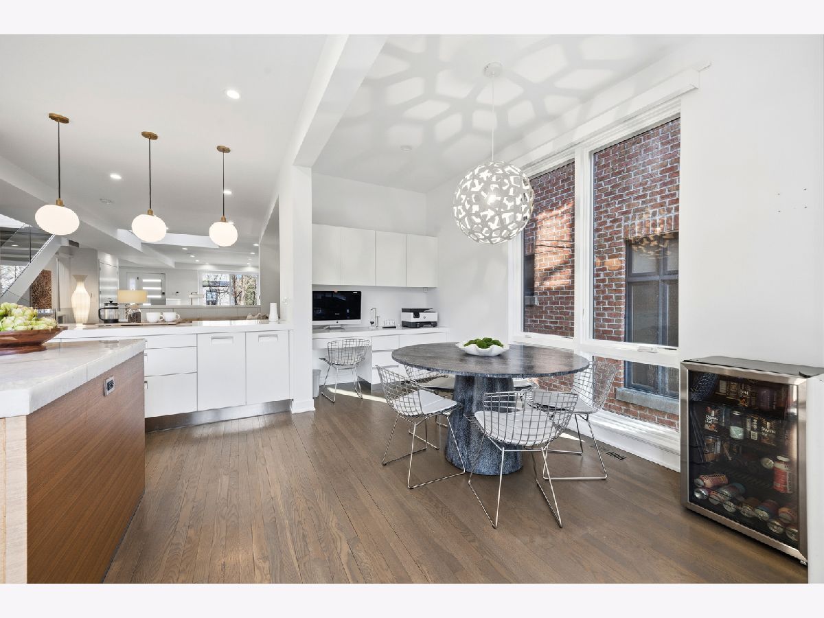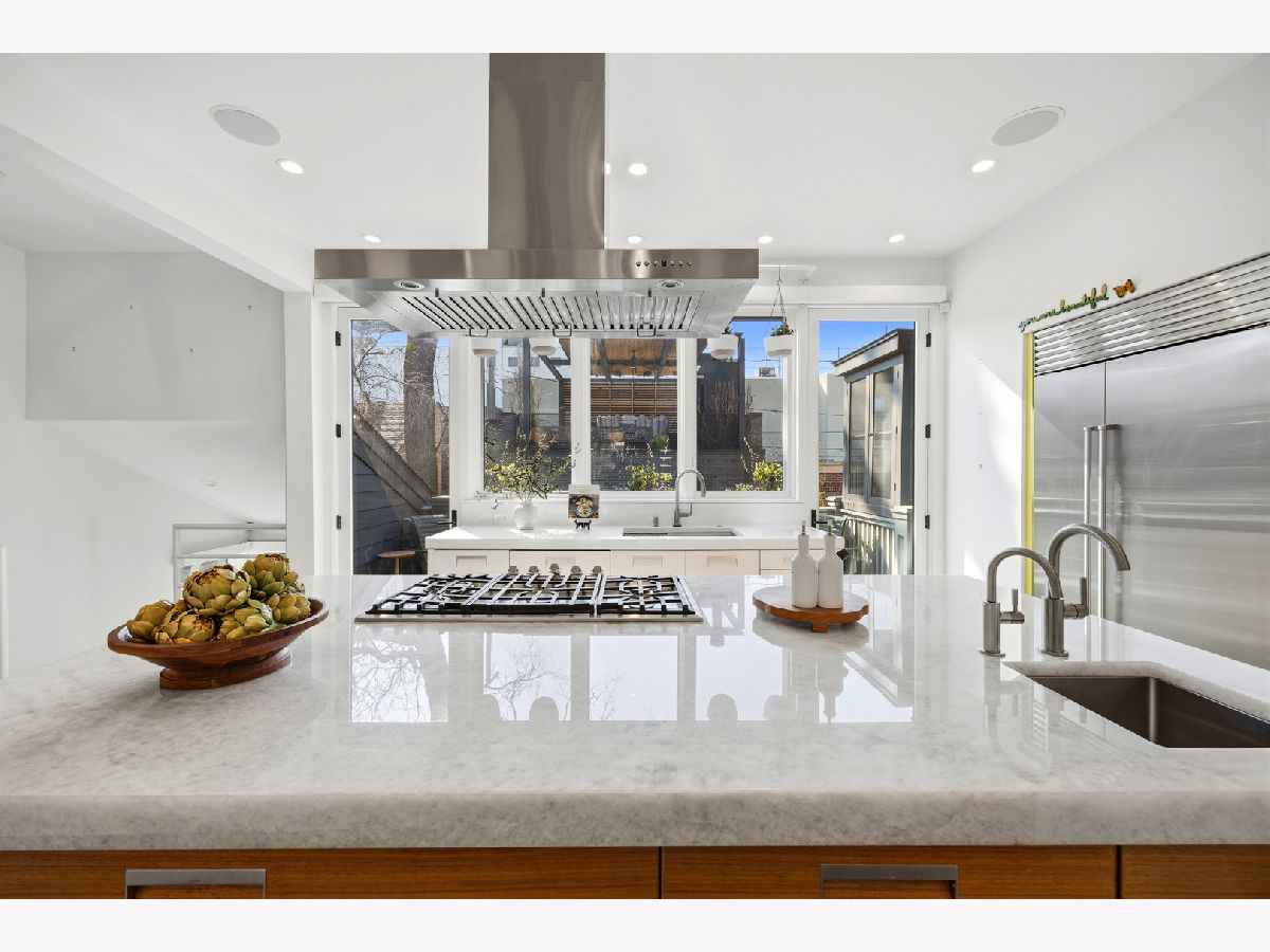 Set on coveted Surrey Court in Lincoln Park, this exceptional 5+ bedroom residence sits on an oversized 30' x 140' lot, maintaining its original extra-wide footprint. The home is the result of a deeply intentional redesign, where the current owners invested in a fully customized transformation-creating a seamless dialogue between 4500+ sqft of interior & 2500+ sqft of exterior living that evolves with the seasons. Rooted in the architectural pedigree of renowned Chicago architect Marcel Freides, originally reimagined in 2016 by Mastro & Skylar, and elevated to the next level in 2022 by Jaffe Architecture in co-collaboration with designers VerStraight Design and Nanette Mortel, the residence blends timeless design with modern luxury and meticulous craftsmanship. Perfectly positioned to capture sunlight from every angle, an incredible number of expansive windows invite natural light and gentle breezes to flow throughout the home, while framing views of the beautifully matured landscape from every level. Sunlight pours into every level through a dramatic 25-foot skylit atrium showcasing a sculptural contemporary open-riser staircase that anchors the home. A formal living room, generous dining area for 16, plus a cozy family room off the kitchen create versatile spaces for living and entertaining. The Arclinea Italian oversized kitchen features large dining area and a convenient office nook-perfect for a household hub. Features include Cristallo Quartzite countertops, a double-thick island, top-tier Viking, Sub-Zero, and Miele appliances. The lower-level family room is thoughtfully positioned above average grade, featuring oversized windows and a glass wall of double doors that cascade to a bluestone patio and grassy yard, continuing the home's intentional balance of indoor and outdoor living. Upstairs, four bedrooms are filled with natural light, while the primary suite offers vaulted ceilings, spa bath, and serene treetop views. Outdoor living is further enhanced by a private rooftop deck with IPE decking, fully equipped outdoor kitchen, gas fireplace, integrated planting beds, and complete privacy-no neighboring rooftop decks in sight. Professionally designed landscaping, mature plantings, and bluestone hardscaping complete the home's grounds. Mechanical systems and appliances are thoughtfully updated, including newer HVAC units, roof, and hot water tanks, along with recently serviced kitchen appliances, ensuring comfort and efficiency throughout the home. Located within the Oscar Mayer School District on an idyllic, tree-lined street, this one-of-a-kind residence combines architectural pedigree, meticulous craftsmanship, and a seamless connection between interior and outdoor living