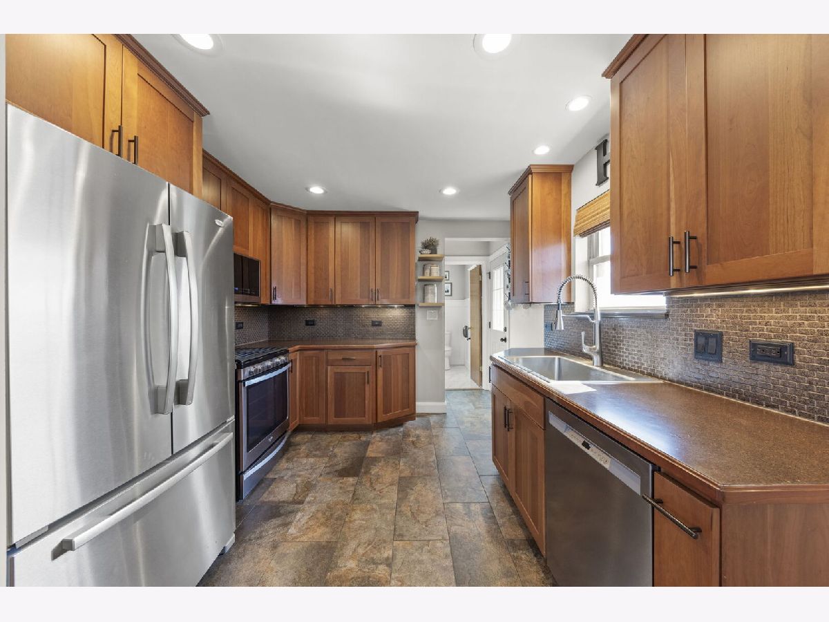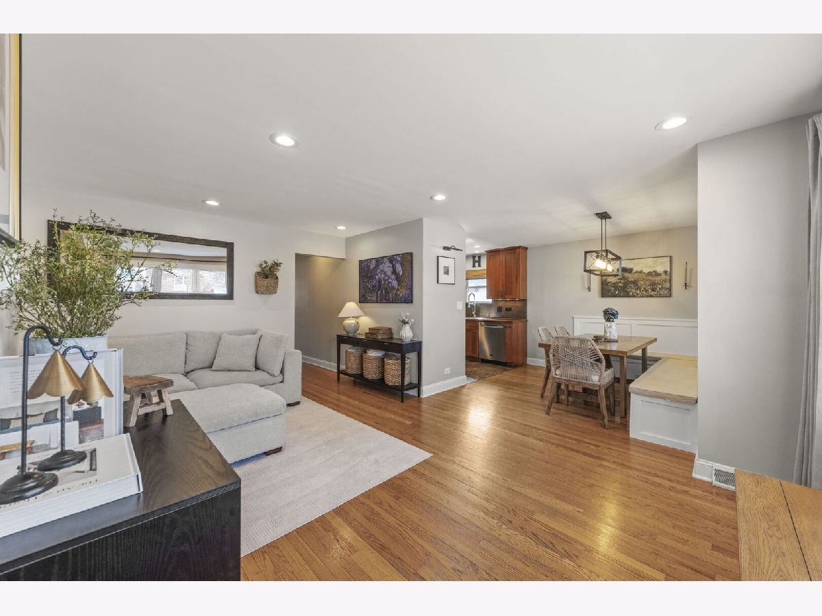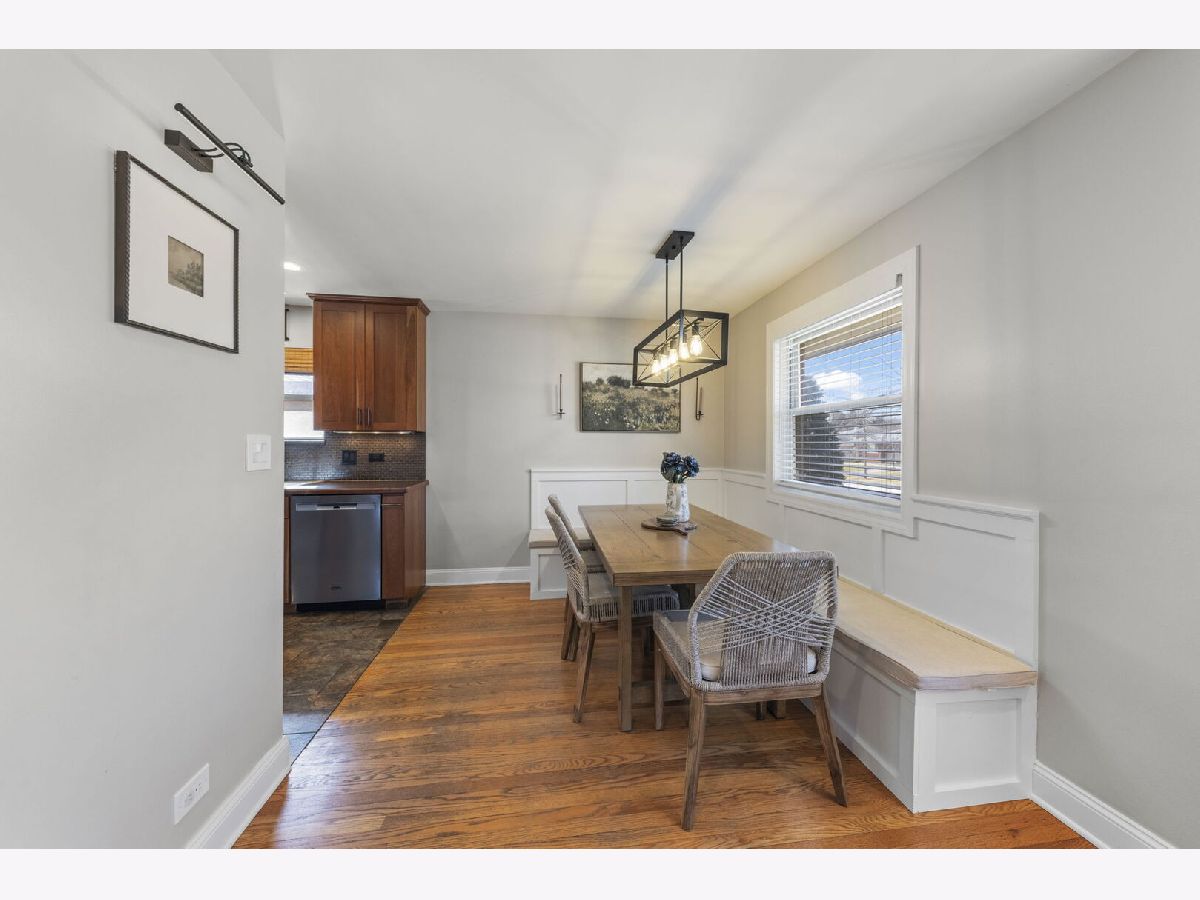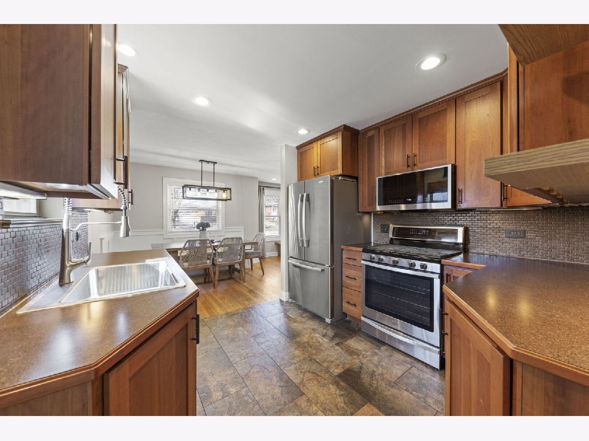 Charming brick ranch ideally located in Lombard with convenient access to the Metra, Downtown Lombard, schools, Paradise Bay, Helen Plum Library, Commons Park, and other local amenities! The main level features a spacious living room that flows seamlessly into the custom kitchen complete with 42" cherry cabinetry, stainless steel appliances, quartz backsplash, and porcelain tile flooring. Just off the kitchen, the bright dining nook provides the perfect space for everyday meals or entertaining. Three generously sized bedrooms, each with closet organizers and ceiling fans, complete the main level, along with a beautifully updated full bathroom. The finished basement expands your living space with a large recreation room, built-in bar, full bathroom, laundry area, and additional storage (currently utilized as a home gym). Numerous thoughtful updates in recent years provide added comfort and peace of mind. A move-in ready home in an unbeatable location - This right here is the one you have been waiting to call Home!