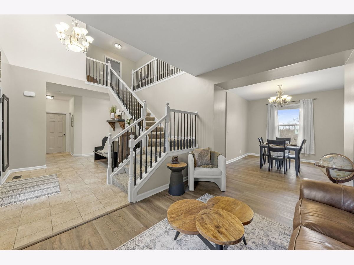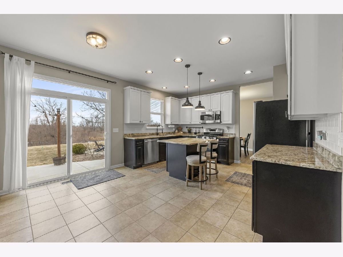 From top to bottom, this beautifully upgraded 5-bedroom, 3.5-bath home offers the perfect blend of style and functionality. A grand two-story foyer with a stunning staircase welcomes you inside. The heart of the home is the spacious kitchen, featuring 42" cabinetry, granite countertops, stainless steel appliances, updated lighting, a pantry, and a center island! The kitchen opens seamlessly to the expansive family room, offering an ideal open-concept layout for everyday living and entertaining. A cozy gas fireplace anchors the space, while oversized windows provide abundant natural light and peaceful views of the private backyard and pond. The home also features a separate living room, formal dining area, and a main-level den/office - perfect for remote work or flexible living space. Upstairs, the spacious primary suite boasts a large walk-in closet and an ensuite bath with dual vanity and shower. Generous windows brighten the room. Three additional bedrooms, a full hallway bath, and a convenient second-floor laundry with built-in shelving complete this level. Downstairs you'll find the NEWLY FINISHED BASEMENT (2024) with an in-law suite featuring: a full 2nd kitchen, living/entertainment space, full bathroom, additional washer/dryer, and a bedroom with a walk in closet! Basement also has plenty of additional storage! Enjoy a private backyard overlooking a peaceful pond, featuring a new concrete patio, updated lighting, thoughtful landscaping, and a designated fire pit with seating - perfect for entertaining or relaxing outdoors. Additional home features include: Radon Mitigation System, New Vinyl flooring (2021), kitchen cabinets painted (2021), whole house painted (2021), Washer/Dryer (2023), New Garage Door Opener (2023), Concrete Patio and walkway (2022), Finished Basement (2024), Whole House Permaseal (2024), GoVee Lights professionally installed (2025), Attic Pull Down Ladder and boards for storage (2023), and professional landscaping. Neighborhood has a community clubhouse with a pool and tennis courts. This move-in-ready home offers small-town charm with easy access to I-90, Route 47, Route 20, downtown Hampshire, and downtown Huntley. A short drive brings you to nearby retail, grocery, and recreation options, while parks and open space in the area add to the quality of life. Welcome home to this well-maintained, feature-packed home in a great community with highly rated schools!