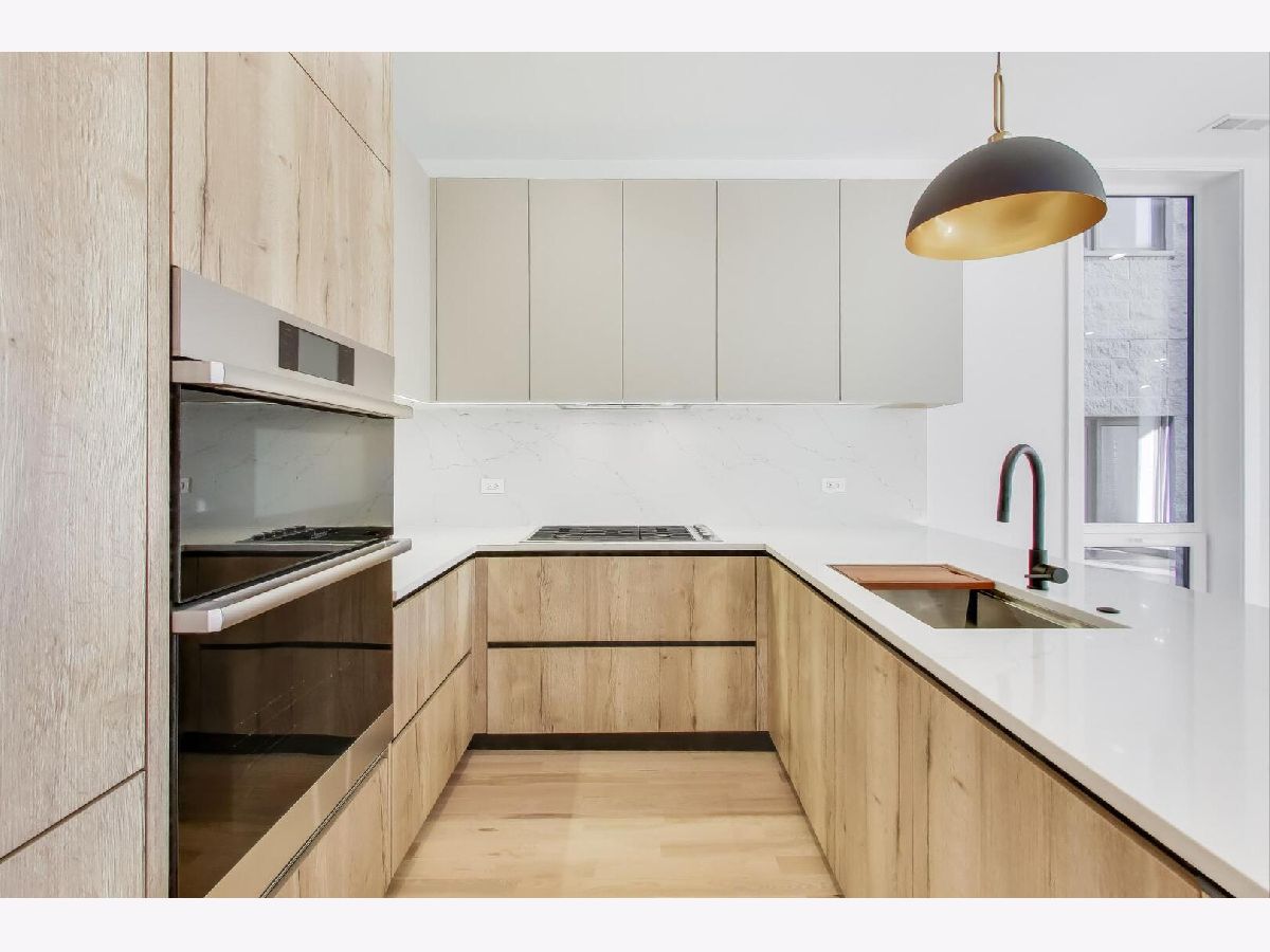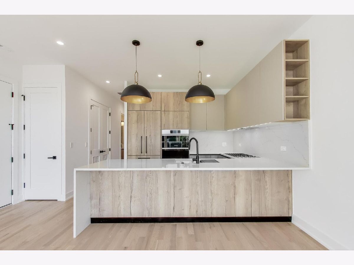 ONLY 2 UNITS LEFT! Experience modern luxury in this stunning new construction development, perfectly positioned on a south-facing corner lot within an exclusive 6-unit building. Professionally designed simplex unit with top-of-the-line finishes and meticulous attention to detail. This 2 bed/2 bath unit features a stylish chef's kitchen with custom two-toned cabinetry, quartz countertops, a waterfall-edge peninsula, and high-end integrated appliances. The bright, south-facing living room boasts floor-to-ceiling windows and hardwood floors throughout. The spacious primary suite includes a walk-in closet and a spa-like bath and designer tiles, while the second bedroom offers a closet and access to a beautifully appointed second bath with a floating vanity and tub/shower. Enjoy incredible outdoor space with a front balcony. Includes 1 garage parking space.