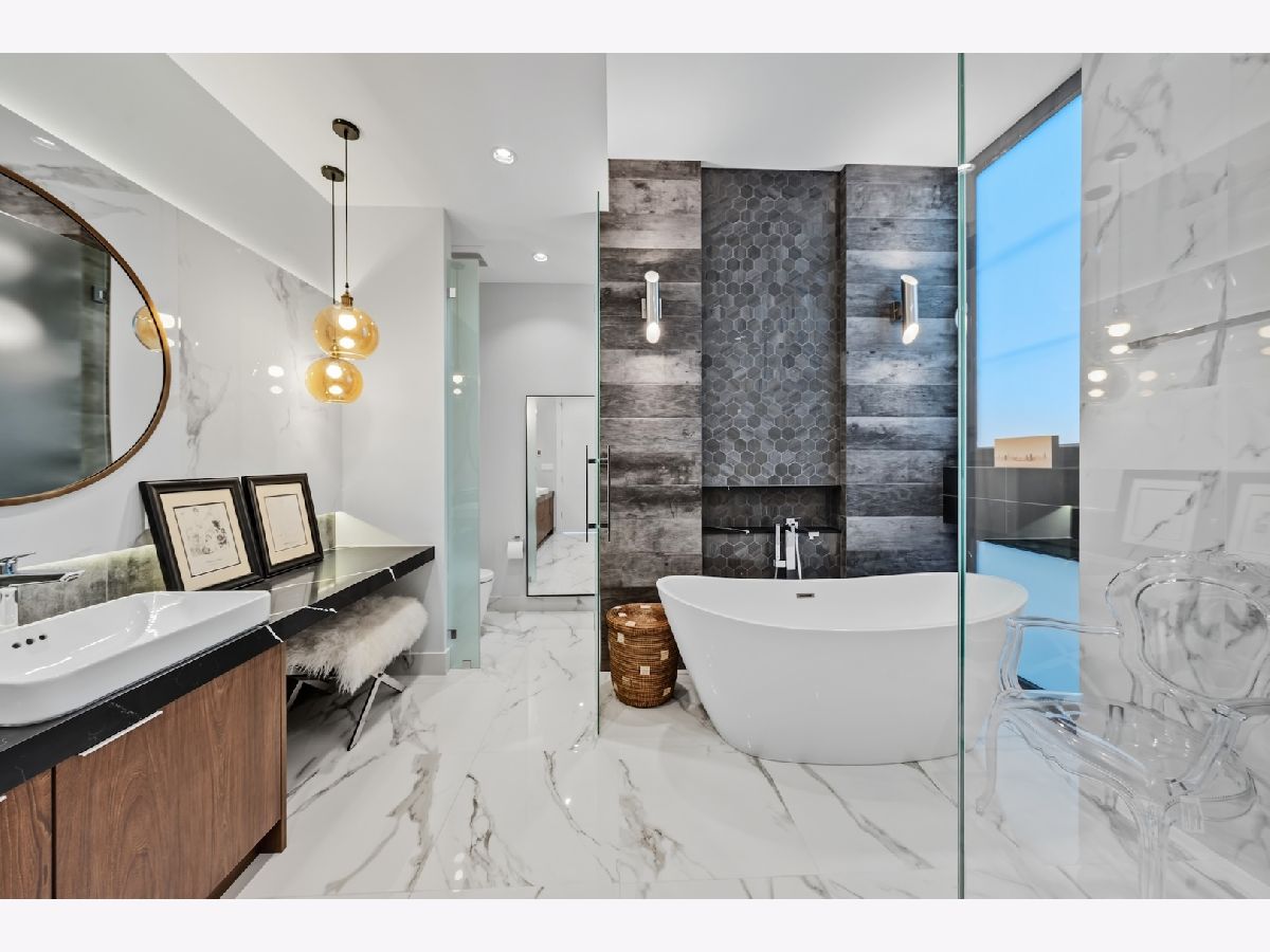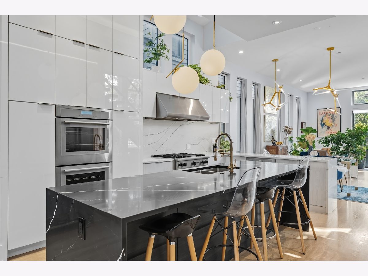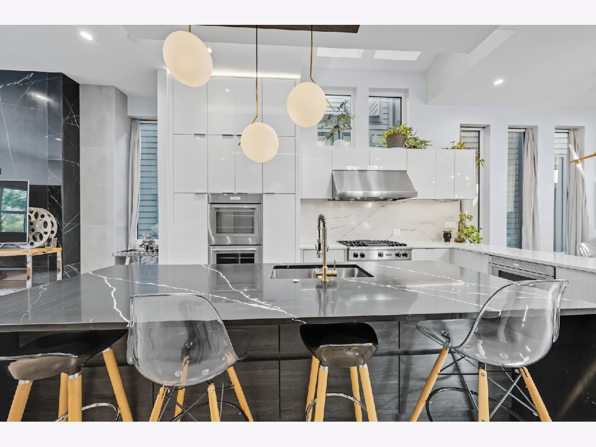 Architecturally stunning corner home in a 4-residence development by a leading Chicago builder, offering striking design, first-class finishes, and an exceptional level of detail throughout. The open-concept floor plan features soaring 11-foot ceilings, expansive windows overlooking Smith Park, and a dramatic open glass staircase that floods the interior with natural light. At the heart of the home is a chef's kitchen with high-end appliances, custom cabinetry, and a large island that flows into the great room with a contemporary gas fireplace, French doors, and a built-out mudroom. Upstairs, the luxurious primary suite includes a fully built-out walk-in closet and a spa-like bath with dual vanity, soaking tub, frameless glass shower, and heated floors. Two additional bedrooms share a Jack-and-Jill bath, and a full laundry room completes the level. The lower level offers two guest bedrooms, a full bath, a spacious recreation room with a full wet bar, and a second laundry area for added convenience. The crowning feature is the private rooftop terrace, complete with a pergola, fireplace, and penthouse wet bar-an entertainer's dream with skyline views. Additional highlights include washer and dryer on both the upper and lower levels, sleek modern finishes, and abundant storage throughout. Located just steps from Smith Park, a five-minute walk to the Metra, and a quick commute to the Loop, this home offers the perfect blend of luxury and convenience.