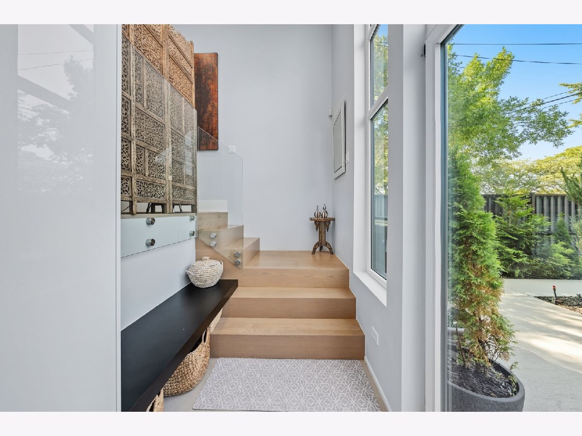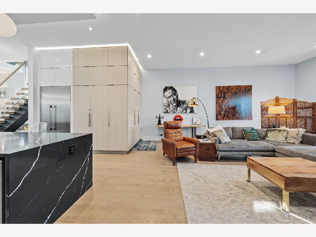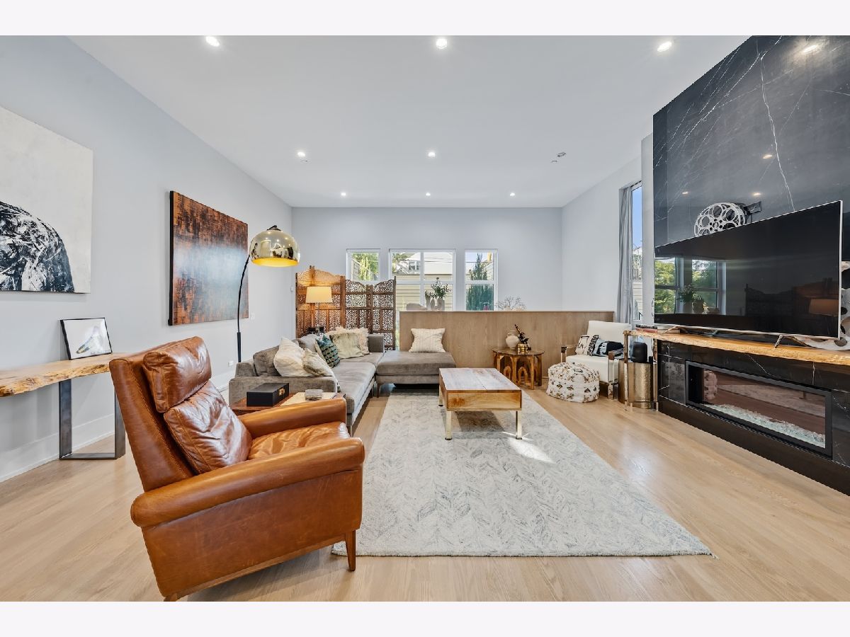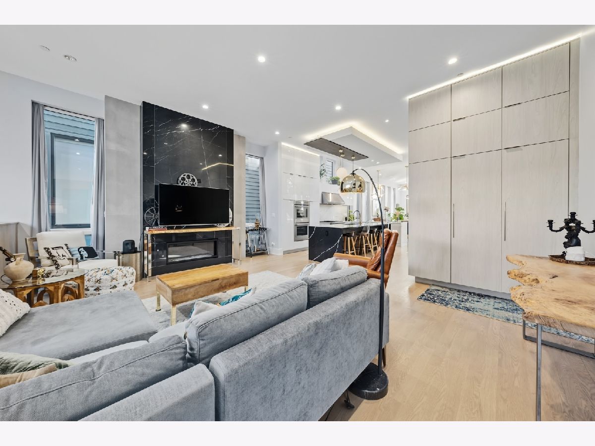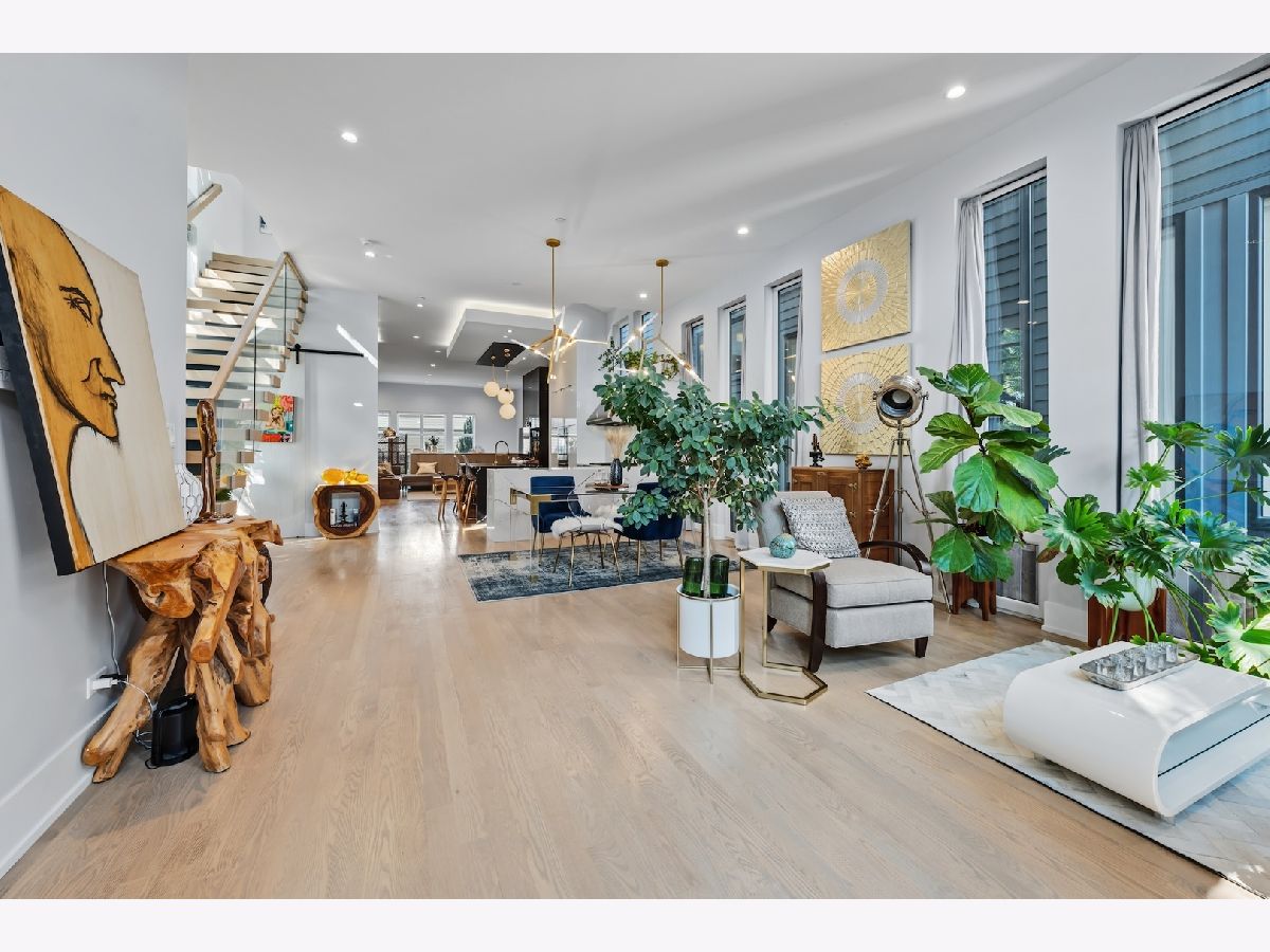 Architecturally stunning corner home in a 4-residence development by a leading Chicago builder, offering striking design, first-class finishes, and an exceptional level of detail throughout. The open-concept floor plan features soaring 11-foot ceilings, expansive windows overlooking Smith Park, and a dramatic open glass staircase that floods the interior with natural light. At the heart of the home is a chef's kitchen with high-end appliances, custom cabinetry, and a large island that flows into the great room with a contemporary gas fireplace, French doors, and a built-out mudroom. Upstairs, the luxurious primary suite includes a fully built-out walk-in closet and a spa-like bath with dual vanity, soaking tub, frameless glass shower, and heated floors. Two additional bedrooms share a Jack-and-Jill bath, and a full laundry room completes the level. The lower level offers two guest bedrooms, a full bath, a spacious recreation room with a full wet bar, and a second laundry area for added convenience. The crowning feature is the private rooftop terrace, complete with a pergola, fireplace, and penthouse wet bar-an entertainer's dream with skyline views. Additional highlights include washer and dryer on both the upper and lower levels, sleek modern finishes, and abundant storage throughout. Located just steps from Smith Park, a five-minute walk to the Metra, and a quick commute to the Loop, this home offers the perfect blend of luxury and convenience.