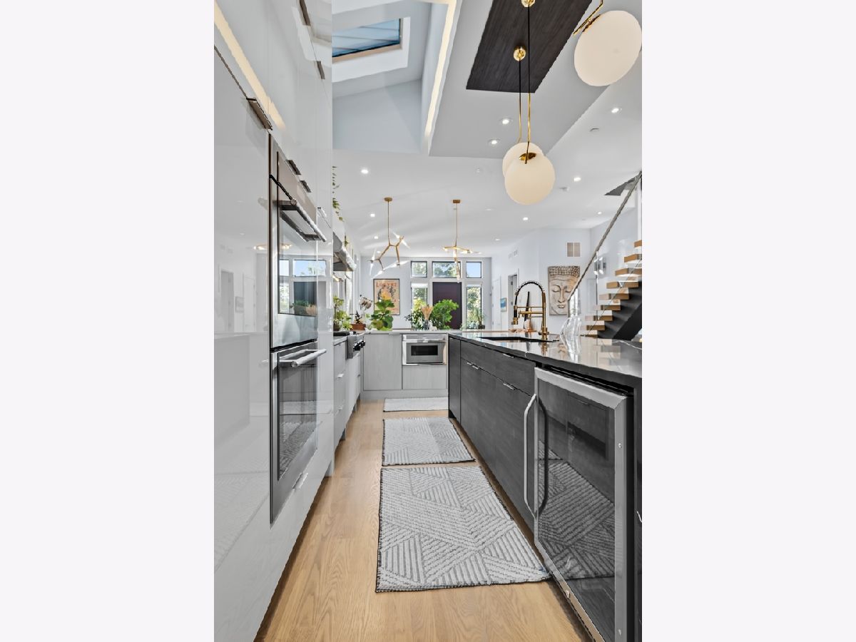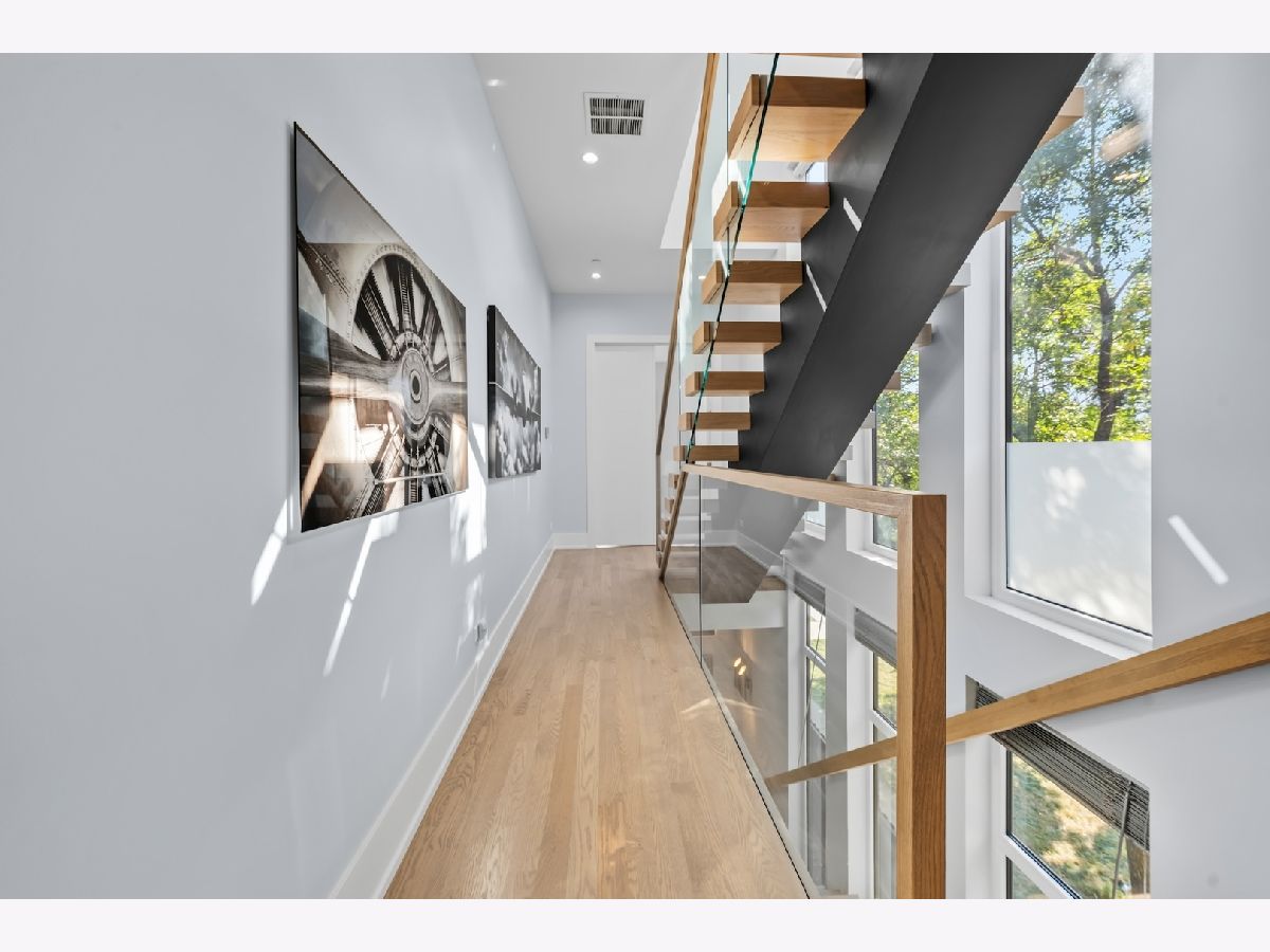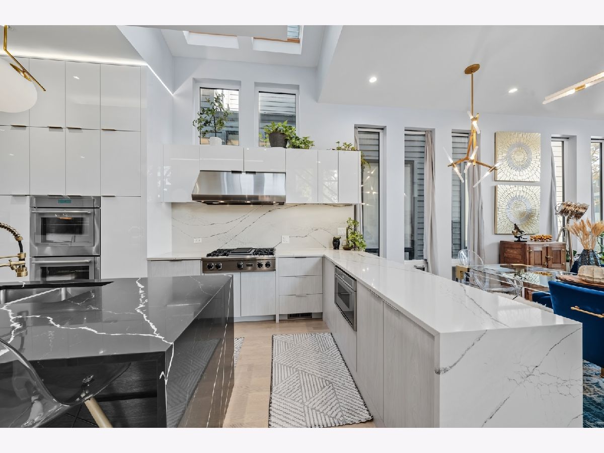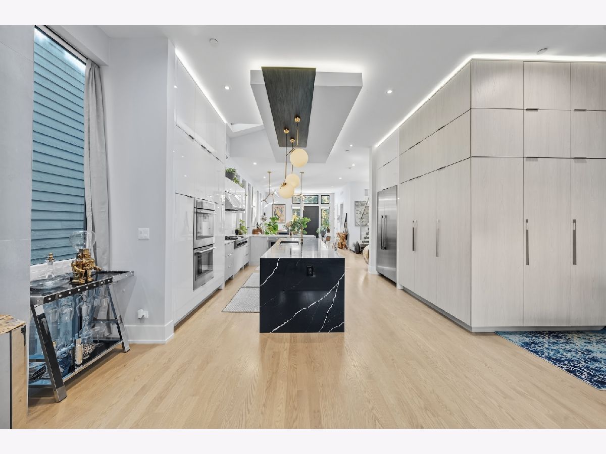 Architecturally stunning corner home in a 4-residence development by a leading Chicago builder, offering striking design, first-class finishes, and an exceptional level of detail throughout. The open-concept floor plan features soaring 11-foot ceilings, expansive windows overlooking Smith Park, and a dramatic open glass staircase that floods the interior with natural light. At the heart of the home is a chef's kitchen with high-end appliances, custom cabinetry, and a large island that flows into the great room with a contemporary gas fireplace, French doors, and a built-out mudroom. Upstairs, the luxurious primary suite includes a fully built-out walk-in closet and a spa-like bath with dual vanity, soaking tub, frameless glass shower, and heated floors. Two additional bedrooms share a Jack-and-Jill bath, and a full laundry room completes the level. The lower level offers two guest bedrooms, a full bath, a spacious recreation room with a full wet bar, and a second laundry area for added convenience. The crowning feature is the private rooftop terrace, complete with a pergola, fireplace, and penthouse wet bar-an entertainer's dream with skyline views. Additional highlights include washer and dryer on both the upper and lower levels, sleek modern finishes, and abundant storage throughout. Located just steps from Smith Park, a five-minute walk to the Metra, and a quick commute to the Loop, this home offers the perfect blend of luxury and convenience.