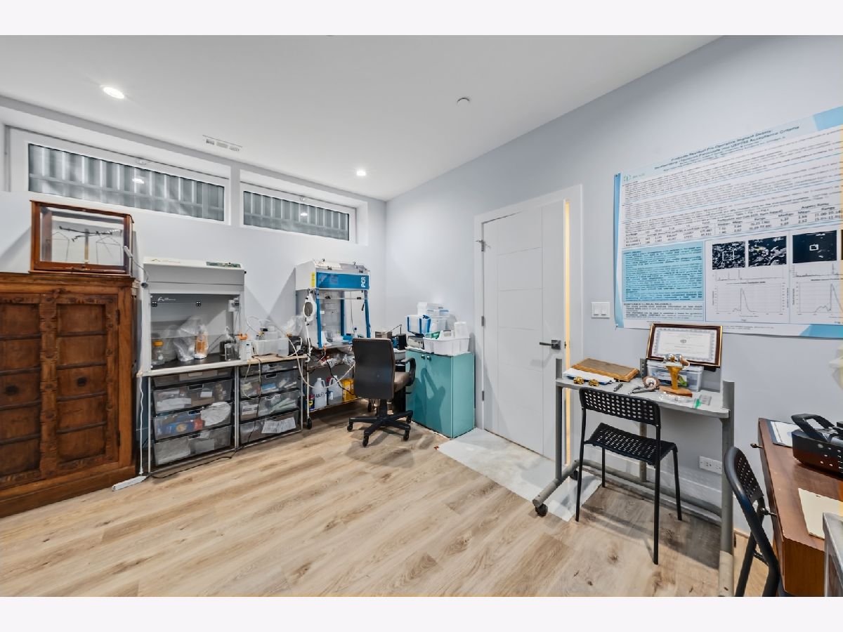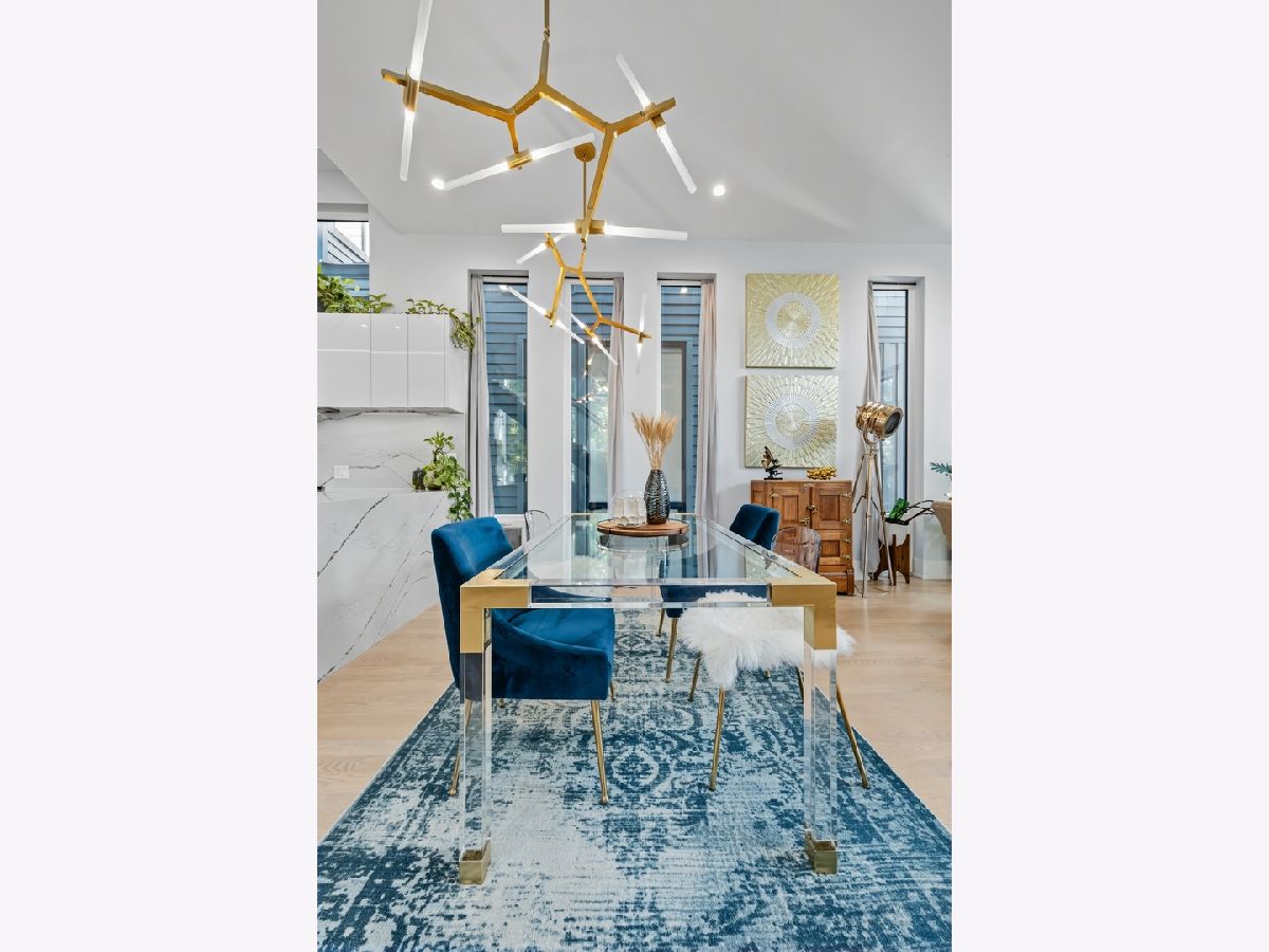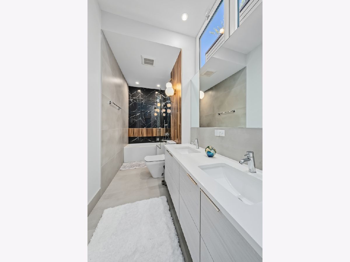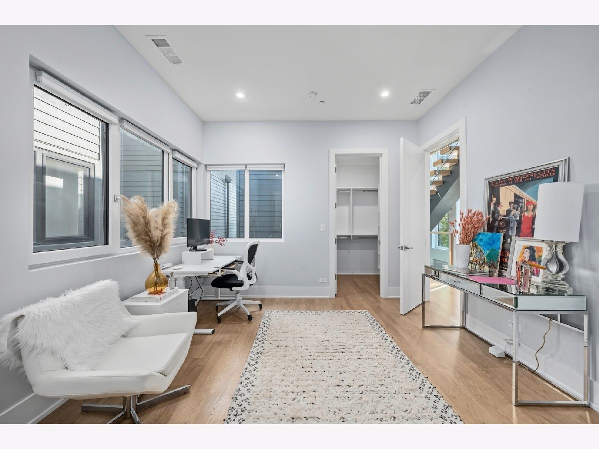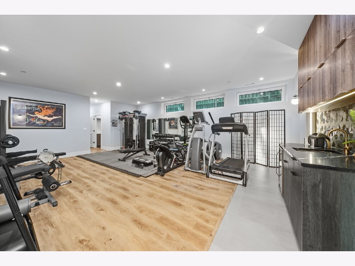 Architecturally stunning corner home in a 4-residence development by a leading Chicago builder, offering striking design, first-class finishes, and an exceptional level of detail throughout. The open-concept floor plan features soaring 11-foot ceilings, expansive windows overlooking Smith Park, and a dramatic open glass staircase that floods the interior with natural light. At the heart of the home is a chef's kitchen with high-end appliances, custom cabinetry, and a large island that flows into the great room with a contemporary gas fireplace, French doors, and a built-out mudroom. Upstairs, the luxurious primary suite includes a fully built-out walk-in closet and a spa-like bath with dual vanity, soaking tub, frameless glass shower, and heated floors. Two additional bedrooms share a Jack-and-Jill bath, and a full laundry room completes the level. The lower level offers two guest bedrooms, a full bath, a spacious recreation room with a full wet bar, and a second laundry area for added convenience. The crowning feature is the private rooftop terrace, complete with a pergola, fireplace, and penthouse wet bar-an entertainer's dream with skyline views. Additional highlights include washer and dryer on both the upper and lower levels, sleek modern finishes, and abundant storage throughout. Located just steps from Smith Park, a five-minute walk to the Metra, and a quick commute to the Loop, this home offers the perfect blend of luxury and convenience.