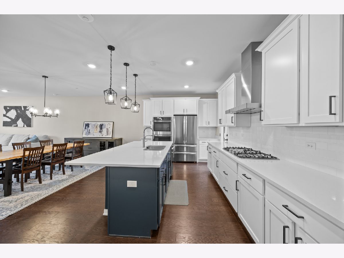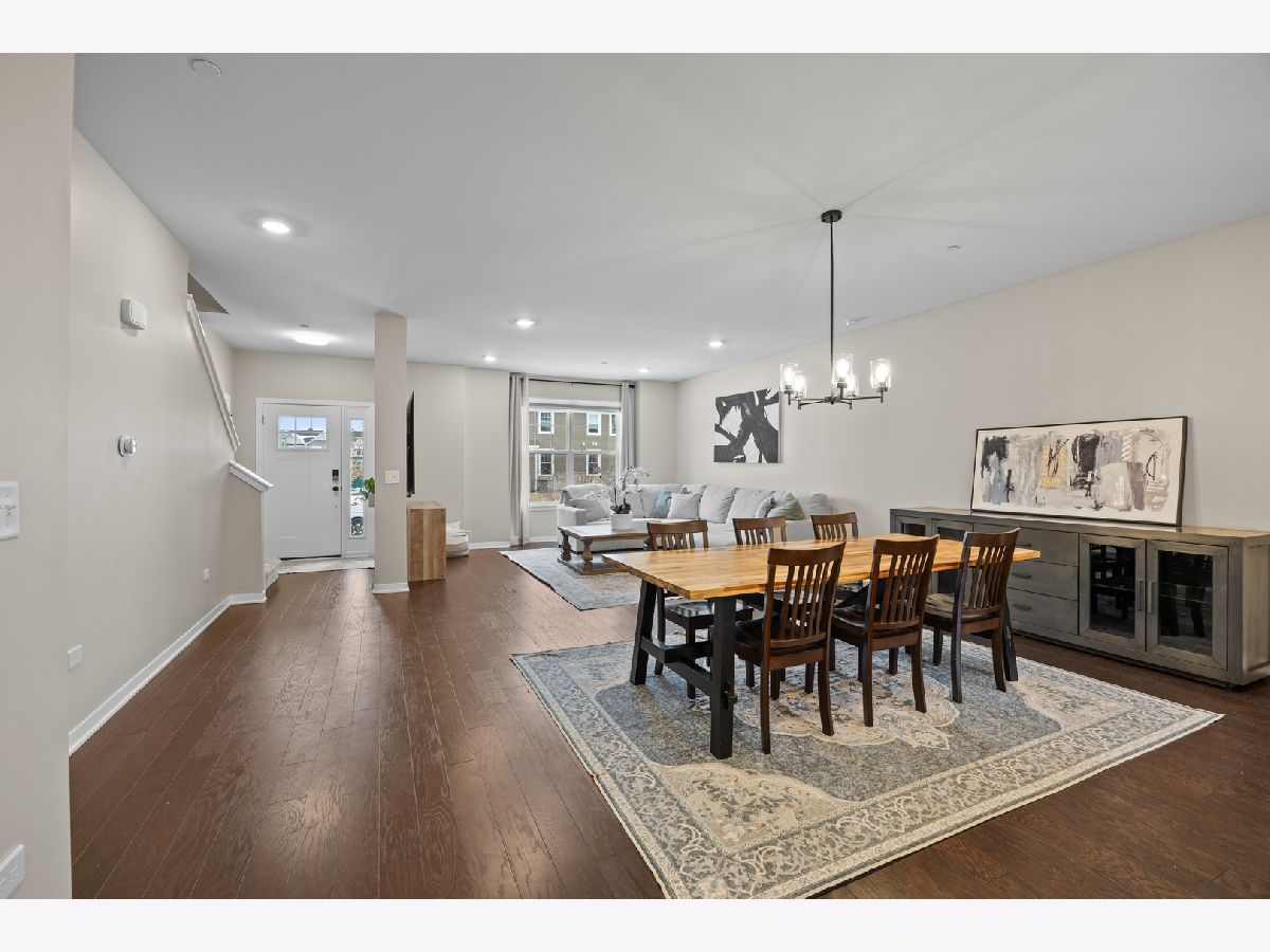 Experience sophisticated, low-maintenance living in one of Buffalo Grove's most desirable communities. This beautifully maintained 4-bedroom, 2.5-bath townhome offers a refined yet functional layout designed for today's modern lifestyle. The main level features a versatile first-floor bedroom or office space-your choice-along with an open-concept living and dining area that flows effortlessly into a gourmet, chef-upgraded kitchen. The kitchen showcases an impressive 6-foot center island, ideal for everyday living and upscale entertaining. Upstairs, three generously sized bedrooms provide comfort and privacy, including a serene primary suite complete with a walk-in closet and spa tub. The full, unfinished basement offers exceptional storage and remarkable future potential, with roughed-in plumbing for a third full bath and the opportunity to create additional living or entertainment space. Use it as a kids' play area, expansive storage, or a large open recreation zone-even perfect for hockey nets on either end. Outdoor living is enhanced by a convenient exterior gas hookup for grilling and entertaining, with a terrace located just off the kitchen, plus dedicated gardening space. Enjoy peaceful views of open, beautifully maintained green space directly behind the property. Additional upgrades include a sump pump with battery backup, full-home humidifier, permanently installed Wi-Fi boosters, and solid-core doors throughout. Ideally located within walking distance to parks, tennis courts, basketball courts, gazebos, walking paths, and ponds. Close to top-rated schools, premier shopping and dining, and Buffalo Grove's year-round community amenities, with quick access to I-94 and major highways for effortless commuting. A rare opportunity to enjoy elegance, convenience, and long-term value in a highly sought-after location.