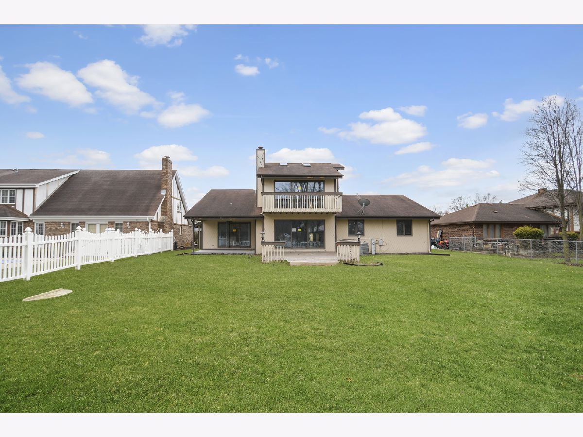 From the moment you arrive, this unique Contemporary Chalet-inspired neo-modern two-story captivates with its individually crafted design and numerous updates throughout. Step inside to discover an efficiently designed, recently updated, softly decorated interior featuring modern white trim, doors, and recessed lighting throughout. A graciously welcoming foyer flows into a large living room with a fireplace and expansive three-panel patio doors leading to a deck and a large fenced backyard. Right next to the living area is a beautifully appointed, updated kitchen offering modern white cabinetry, sleek quartz countertops, stainless steel appliances, an island with sink and breakfast bar, plus a more formal dining area. A second set of patio doors leads to a covered back patio. Three main-level bedrooms include an ensuite bedroom. The staircase, accented by large stained-glass windows, leads upstairs to a private primary bedroom featuring a soaring, elevated beamed ceiling and a spacious private bathroom with double-sink vanity, large shower, and separate tub. A full finished, loft-style basement provides additional space for indoor entertaining, a home office, guest bedroom, or ample storage. Popular and peaceful "Oakwood Estates" location near downtown Crete offers a charming small-town feel. Easy to see and ready for its next owner so schedule your private showing before this rare find is gone.
