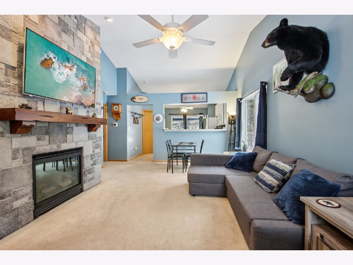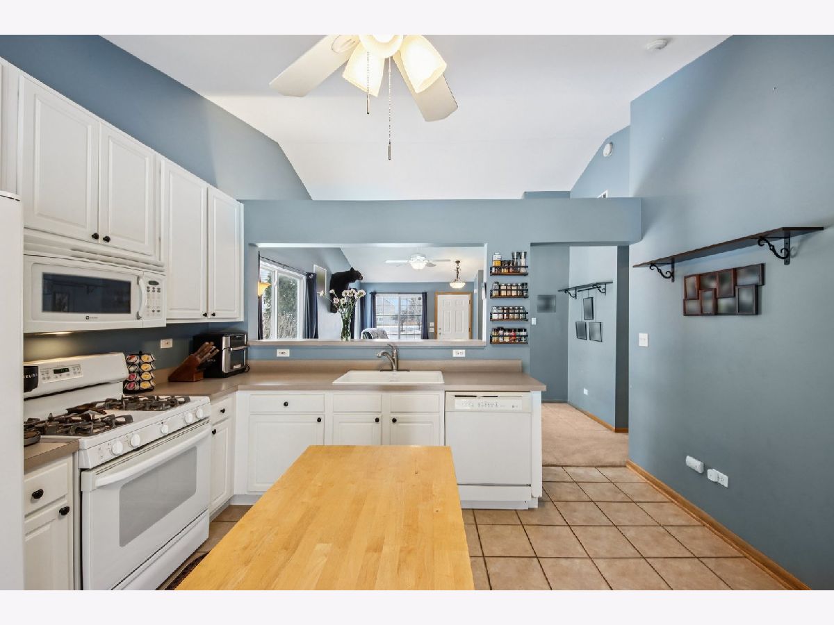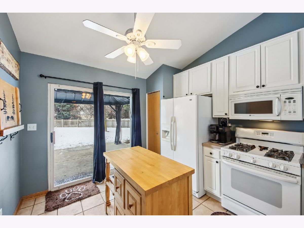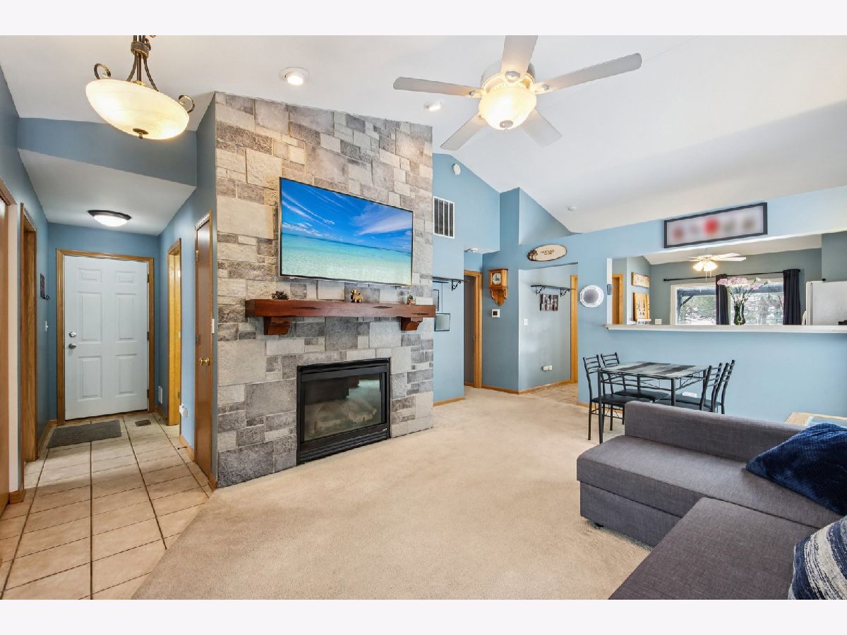 This inviting one-story half-duplex in Montgomery Crossings offers easy living with thoughtful features inside and out. Set on a fenced and landscaped lot with paver landscape edging from the front to back of house, a covered front porch, a spacious patio, and a peaceful backyard that backs to open space, making it easy to enjoy daily walks, nearby parks, and the network of bike and walking paths. Additional outdoor features include a berm with mature trees and no neighbors behind, as well as young trees recently planted, ensuring optimal future shade. Inside, modern neutral decor pairs beautifully with a vaulted living room that flows into the dining area, creating a bright and open feel. The eat-in kitchen features 42-inch custom cabinetry and a sliding door that leads right out to the patio, perfect for everyday meals or entertaining. The primary bedroom includes a walk-in closet and private bath with a walk-in shower, while the second bedroom sits just steps from a full hall bathroom with a tub/shower combo, a standout feature for this community. A two-car tandem garage offers pull-down stairs to a floored attic and built-in custom cabinetry for additional storage, and with no HOA fees, this home delivers flexibility and value. Enjoy summer evenings watching the Fourth of July fireworks from your own patio, with pricing that reflects the age of the roof for added opportunity. Brick fireplace wall and new mantle - 2020, TV closet created - 2020, new roof & siding (another standout feature within the community), and gutter - 2023, new furnace heat exchanger - 2024, new humidifier installed - 2024, water softener - 2023, fence - 2021, patio - 2022, gazebo - 2023, attic ladder - 2023. New roof and siding, patio with gazebo, large fenced-in yard (one of the largest in the neighborhood), custom stone fireplace wall with mantle and gas fireplace, new water softener, new humidifier, cul-de-sac location, near trails and forest preserve, walking distance from park and basketball court.