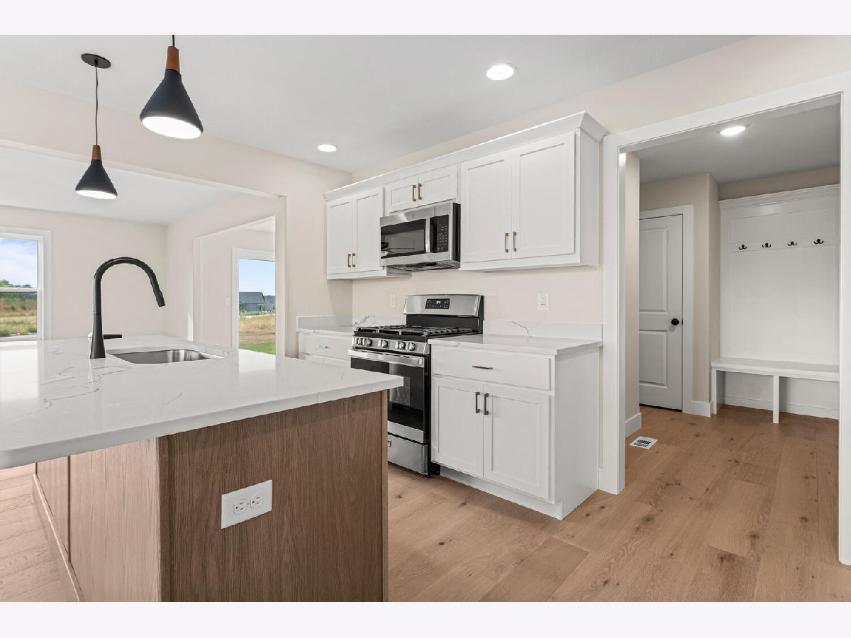New construction home in the Sage Meadows subdivision in Monticello! This open concept offers hardwood flooring in the main living areas, allowing natural sunlight to bounce throughout. Kitchen includes eat-at island with sink, stainless steel appliances, island, and walk-in pantry. Great room right off the open kitchen and dining room area with gas log fireplace. Step into the spacious sunroom that includes the sliding glass door out to the back concrete patio. Second floor includes the primary bedroom and 3 spacious guests bedrooms. Mud room adjacent to the 2-car garage and includes a bench & lockers. Basement is full unfinished, and plumbed for future bathroom. Conveniently located next to I-72, Lodge Park, Kirby Medical Center, and KMC Active. Call TODAY for your private consultation, and make your move to Sage Meadows!