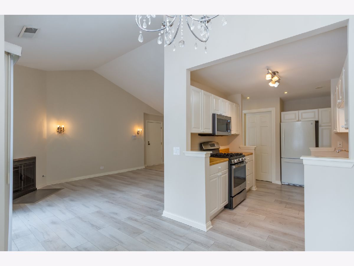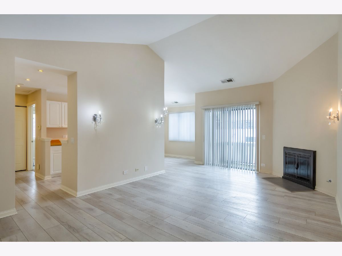 Welcome home to this bright and inviting second-floor unit in the Lexington Lane subdivision, perfectly positioned near all the amenities Schaumburg is known for. Freshly painted and featuring hardwood flooring, the home offers a clean, updated feel throughout. The living room is filled with natural light and showcases a cozy gas fireplace, while a sliding glass door opens to a private balcony, ideal for relaxing or enjoying your morning coffee. The living area flows seamlessly into the dining room, which offers easy access to the galley-style kitchen highlighted by beautiful cabinetry and countertops. Vaulted ceilings enhance the open, airy atmosphere of the main living spaces. The carpeted primary bedroom features a walk-in closet and is conveniently located near the full bathroom, which includes an elegant vanity. A separate laundry room with shelving and cabinets adds everyday convenience and additional storage. A brand new furnace has also been installed. This unit is located in a well-maintained community with access to a private pool and clubhouse. Enjoy close proximity to Schaumburg Golf Club, Busse Woods, and Woodfield Mall, along with dining, shopping, and recreation just minutes away. This well-located home blends comfort, style, and convenience. Don't miss your chance to tour this home!