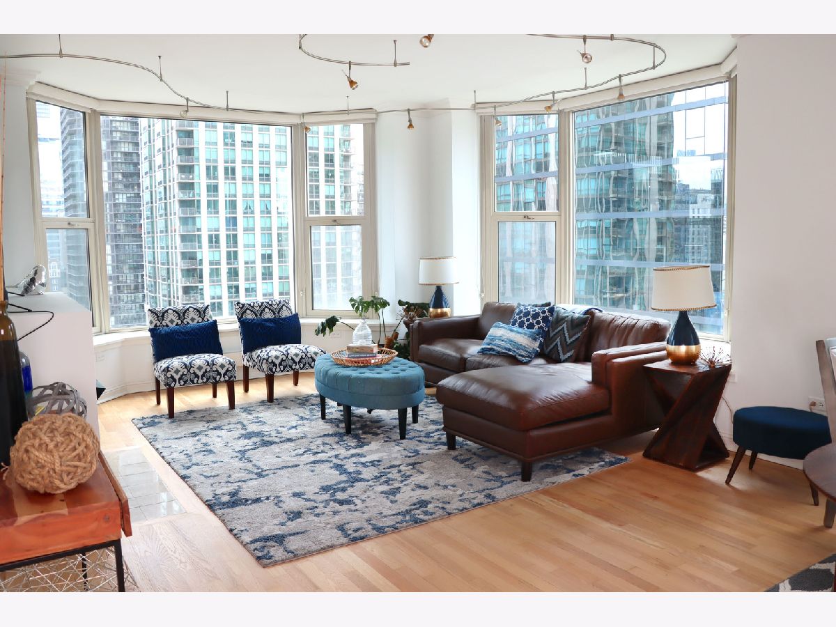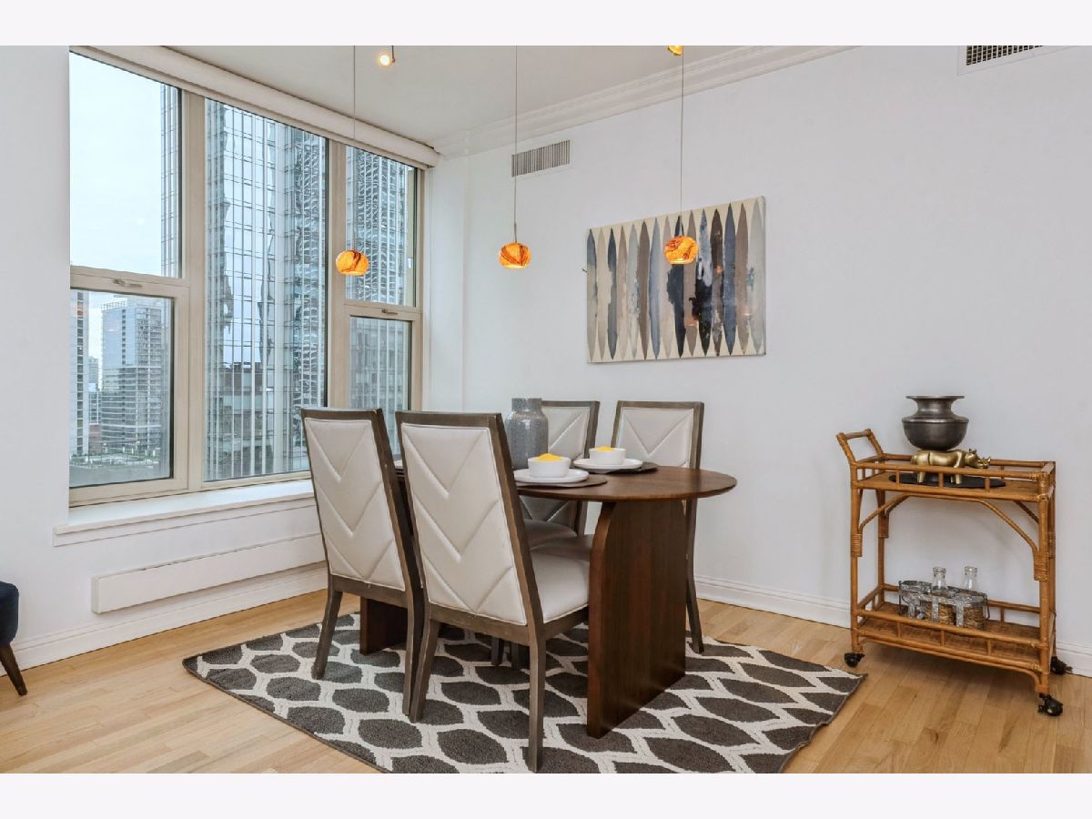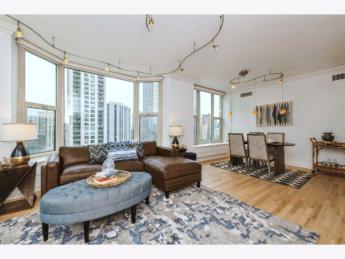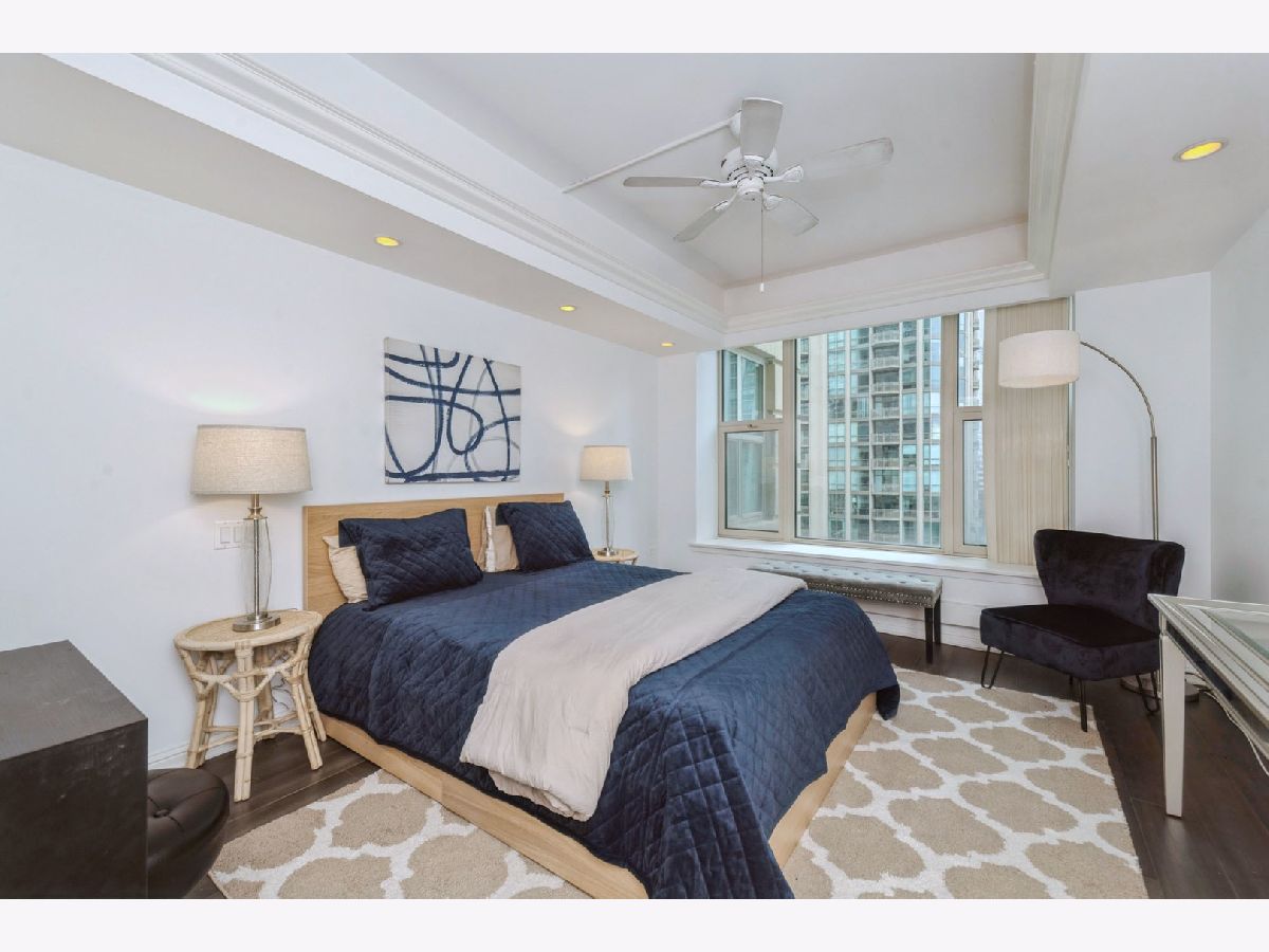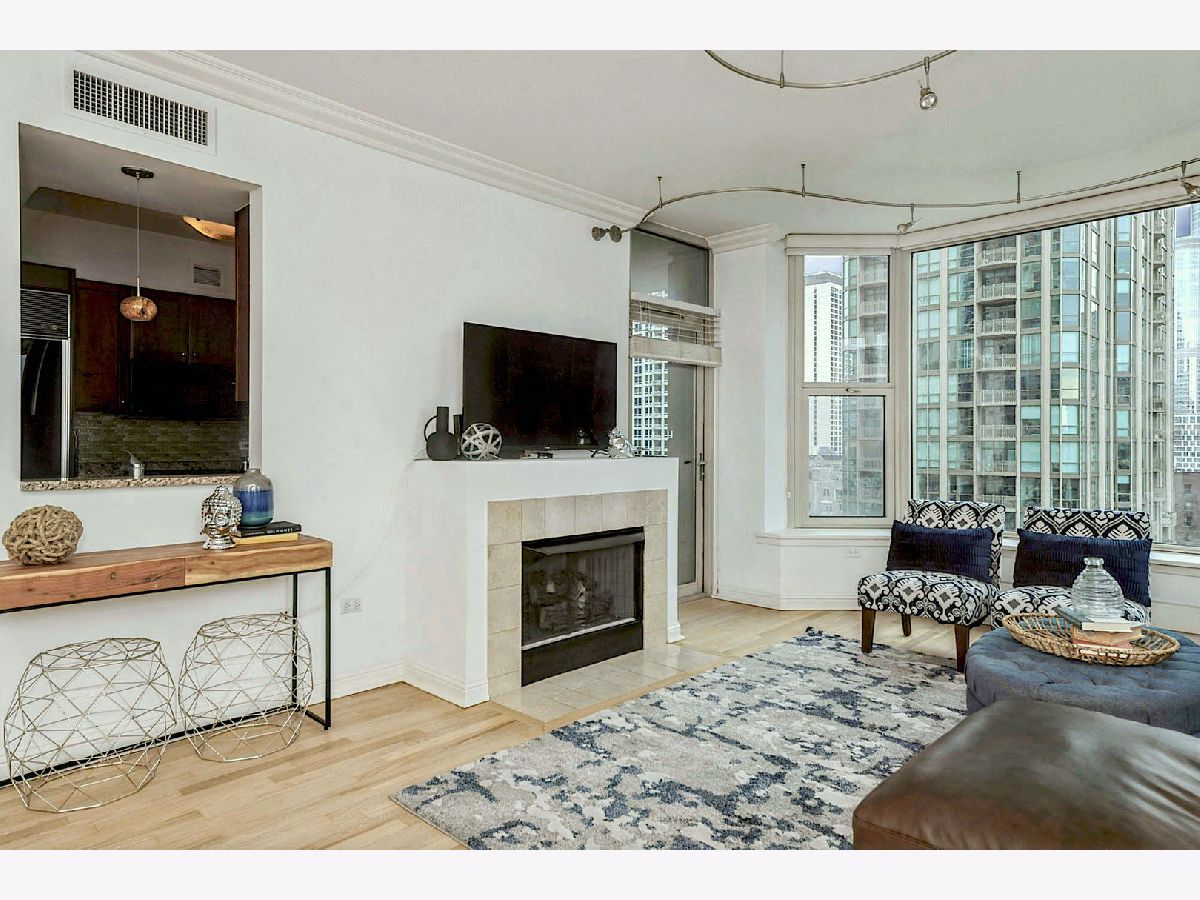 Welcome to unit 1801, a bright and spacious 2 -Bedroom, 2 -Bath home at The Fordham building! At approximately 1,500 square feet, this home boasts a spacious layout and living space with many upscale features and upgrades. Carrying hardwood floors throughout the entire space, this unit is the perfect mix for privacy and entertaining with a split floorplan design. Oversized windows highlight the gorgeous city views in the heart of River North. Boasting renovated bathrooms, timeless and tasteful designer finishes, in-unit laundry, and a gas fireplace, this home has it all! This 2 Bedroom unit showcases an oversized Master suite with ensuite bath and walk-in closet. The split floorplan layout brings versatility as the second bedroom could also serve as office space or guest quarters. Subtle yet sophisticated, custom rail lighting elements blend seamlessly with the home's modern design, providing both style and utility in the living and dining space. The Fordham is one of the premier buildings in the city and offers top-of-the-line amenities including: a fitness center, 24-hour door staff, movie theater, entertainment space, indoor pool, spa/sauna, dry cleaner, wine cellar, cigar room, library, dog walk, and a sun deck! Located in the heart of River North, the Fordham is situated only one block from Whole Foods, Lifetime fitness, the shops on Michigan Avenue, and two blocks away from public transportation hubs. Experience the vibrant city of Chicago right outside your door! Included with 1801 is storage locker #647 and 1 parking space P-960. A secondary parking space P-942 is available for purchase for $30,000