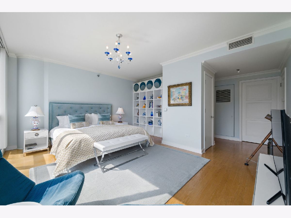 Breathtaking, unobstructed views of Lake Michigan, Navy Pier, and Chicago's skyline set the stage for this impeccable south facing residence. Floor-to-ceiling windows flood the home with natural light, creating a dramatic backdrop of city and water from every view. The smart split-bedroom layout offers privacy and flexibility, while the thoughtfully designed floor plan enhances flow and livability. Recent updates include a modern kitchen equipped with Poggenpohl cabinetry and Miele appliances; every amenity necessary for entertaining family and friends or preparing chef inspired meals at home. The spacious primary suite is complemented by an updated luxurious spa inspired primary bath with sauna and custom walk-in closet. A large south facing balcony with custom deep planters for lush summer plants offers opportunities to enjoy morning coffee or al fresco dining. Enjoy the convenience of an in-unit washer and dryer, plus the comfort of stunning vistas in every room. The Pearson is a full-amenity building with 24-hour door staff, a state-of-the-art fitness center, event room, dry cleaner, and a spectacular rooftop deck with beautiful lake and urban vistas. This home blends updated style, convenience, and luxury in one perfect, lifestyle package. Parking space #31 and storage space G-11 included.