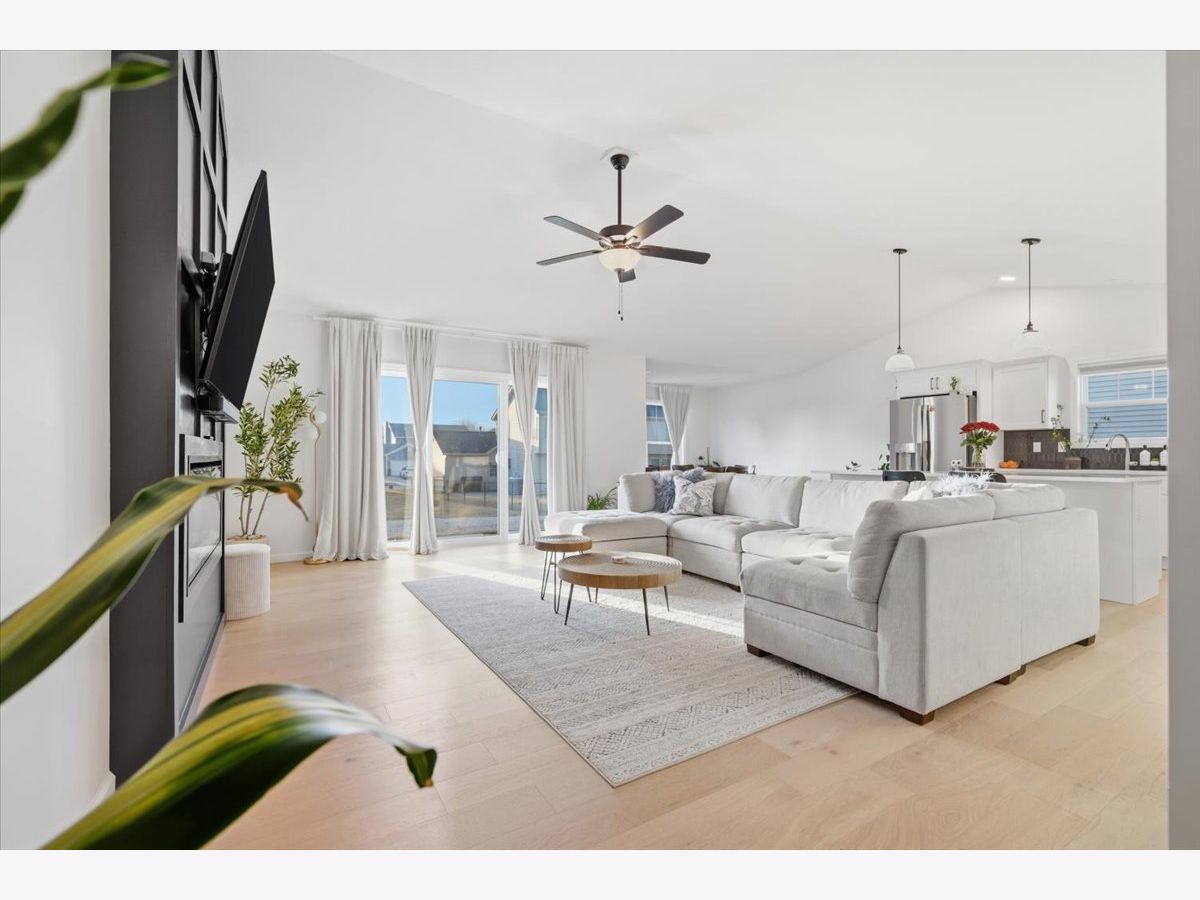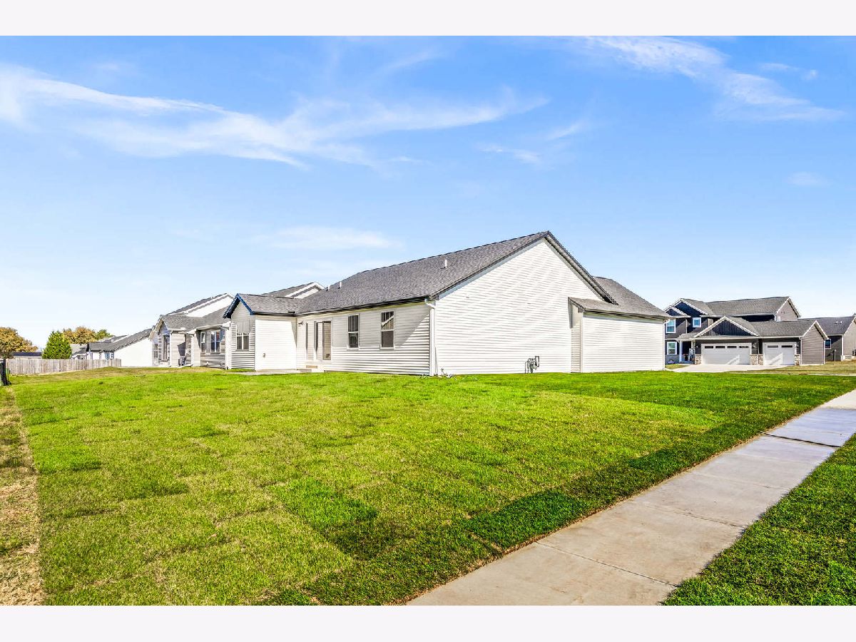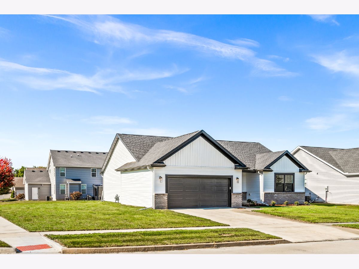 Welcome to 2513 Pampas Lane in Bloomington's desirable Fox Lake Subdivision. Situated on a premium corner lot, this beautifully designed 3-bedroom, 2-bath ranch is just one year old and shows as good as brand new. From the moment you step inside, you'll appreciate the wide, light-tone hardwood floors flowing seamlessly through the main living areas. The heart of the home is the stunning kitchen, featuring quartz countertops, a large entertaining island, crisp white custom cabinetry, and a bumped-out dining area that creates the perfect setting for everyday meals or hosting friends and family. All stainless steel kitchen appliances remain, including the refrigerator, microwave, dishwasher, and oven/range, making this home truly move-in ready. The washer and dryer are also included. The vaulted living room makes a statement with its stylish electric fireplace framed in bold iron ore panel detailing. A triple-panel sliding door floods the space with natural light and opens to the back deck, creating an effortless indoor-outdoor lifestyle that buyers love. Function meets style throughout the home with iron ore interior doors, a spacious laundry room, and an attached 2-car garage. The unfinished basement offers outstanding future potential, complete with rough-ins for a full bath, space for a fourth bedroom with an egress window, and ample room for a future family room or recreation space. If you've been considering building but don't want the wait, added expense, or stress, this home delivers the look and feel of new construction without the timeline. Clean, modern, and thoughtfully designed, 2513 Pampas Lane is ready for its next chapter.