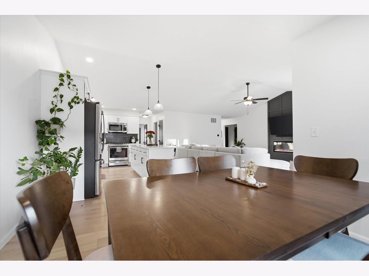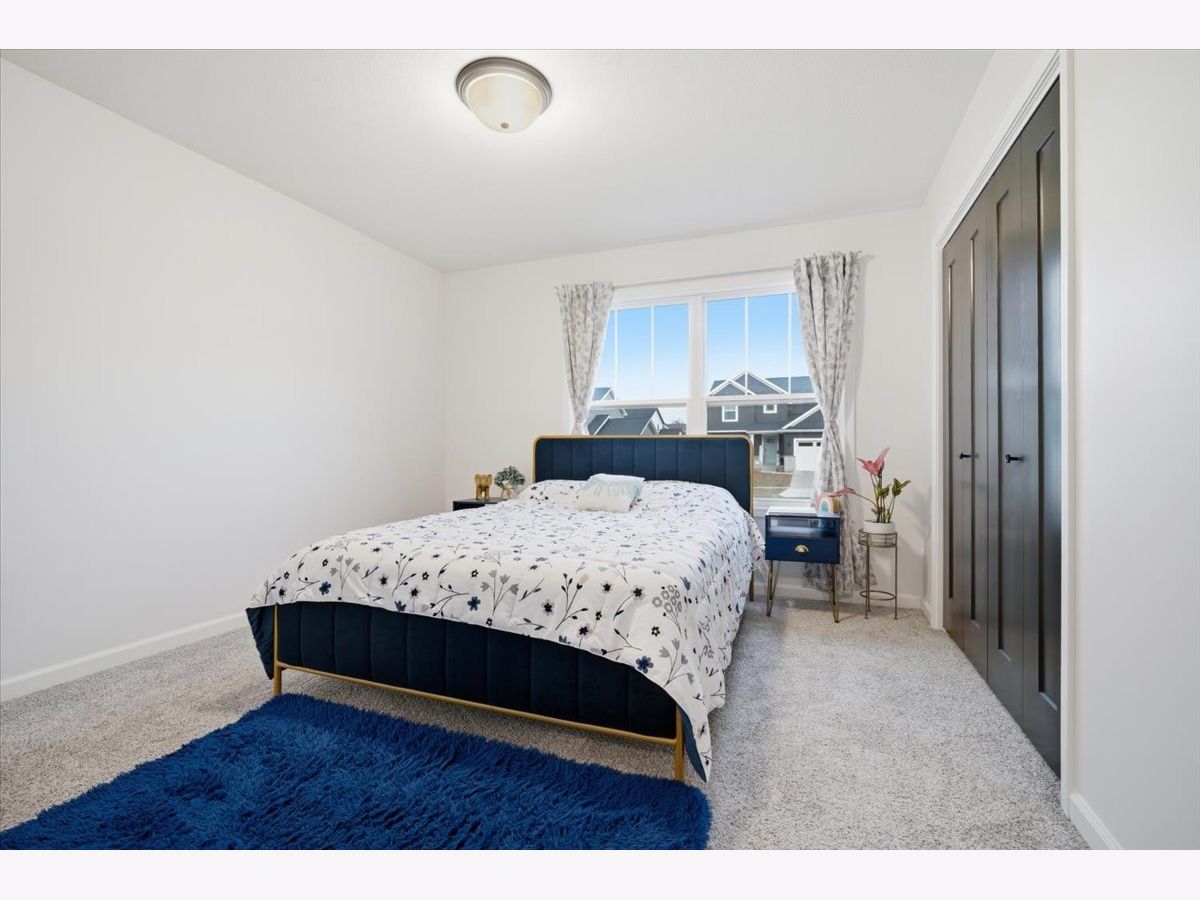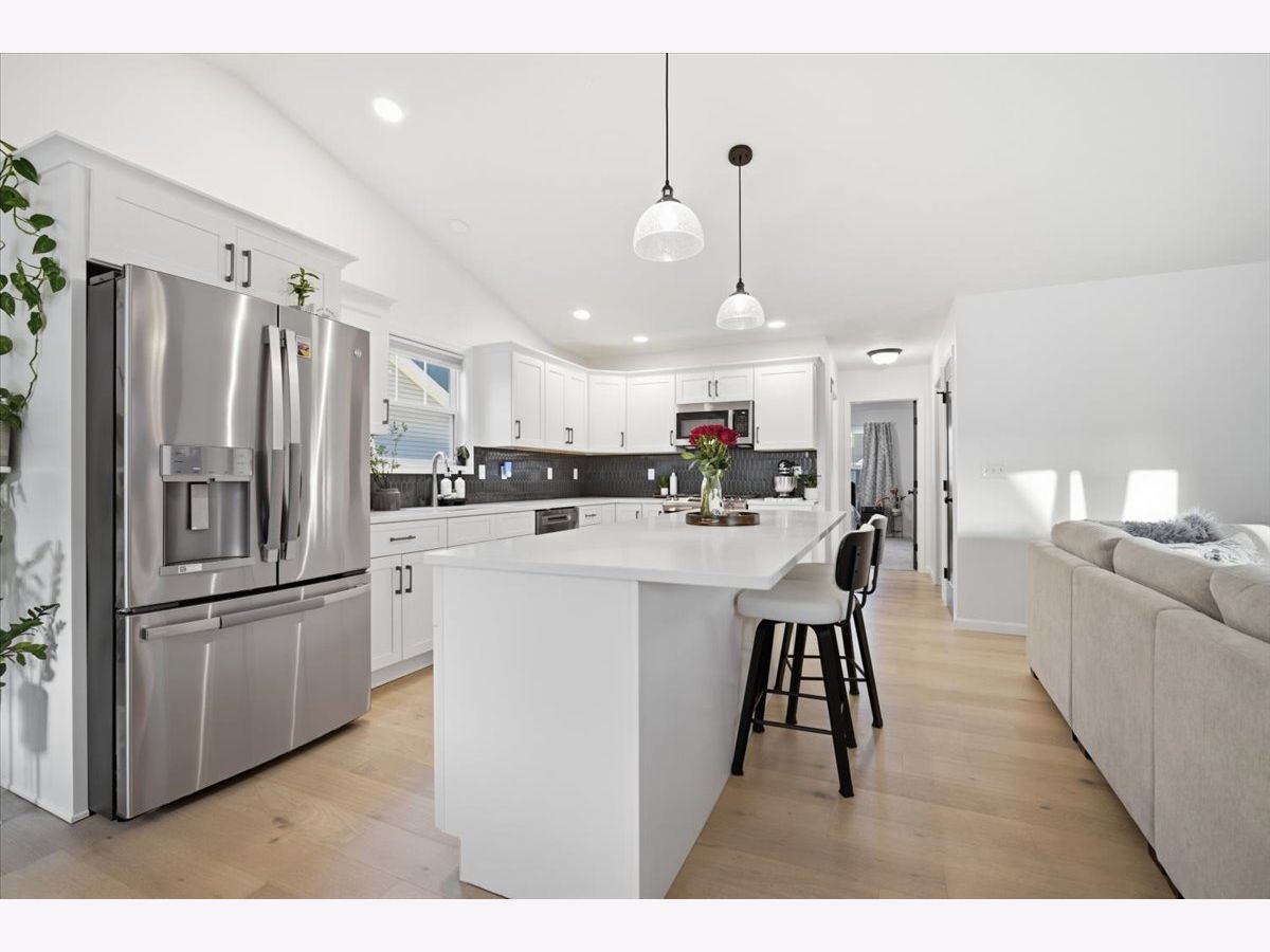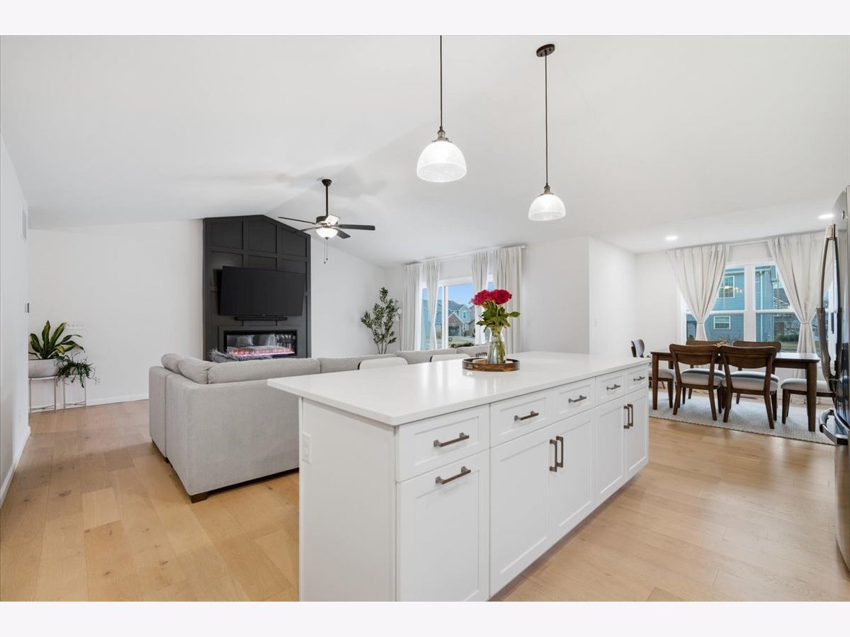 Welcome to 2513 Pampas Lane in Bloomington's desirable Fox Lake Subdivision. Situated on a premium corner lot, this beautifully designed 3-bedroom, 2-bath ranch is just one year old and shows as good as brand new. From the moment you step inside, you'll appreciate the wide, light-tone hardwood floors flowing seamlessly through the main living areas. The heart of the home is the stunning kitchen, featuring quartz countertops, a large entertaining island, crisp white custom cabinetry, and a bumped-out dining area that creates the perfect setting for everyday meals or hosting friends and family. All stainless steel kitchen appliances remain, including the refrigerator, microwave, dishwasher, and oven/range, making this home truly move-in ready. The washer and dryer are also included. The vaulted living room makes a statement with its stylish electric fireplace framed in bold iron ore panel detailing. A triple-panel sliding door floods the space with natural light and opens to the back deck, creating an effortless indoor-outdoor lifestyle that buyers love. Function meets style throughout the home with iron ore interior doors, a spacious laundry room, and an attached 2-car garage. The unfinished basement offers outstanding future potential, complete with rough-ins for a full bath, space for a fourth bedroom with an egress window, and ample room for a future family room or recreation space. If you've been considering building but don't want the wait, added expense, or stress, this home delivers the look and feel of new construction without the timeline. Clean, modern, and thoughtfully designed, 2513 Pampas Lane is ready for its next chapter.
