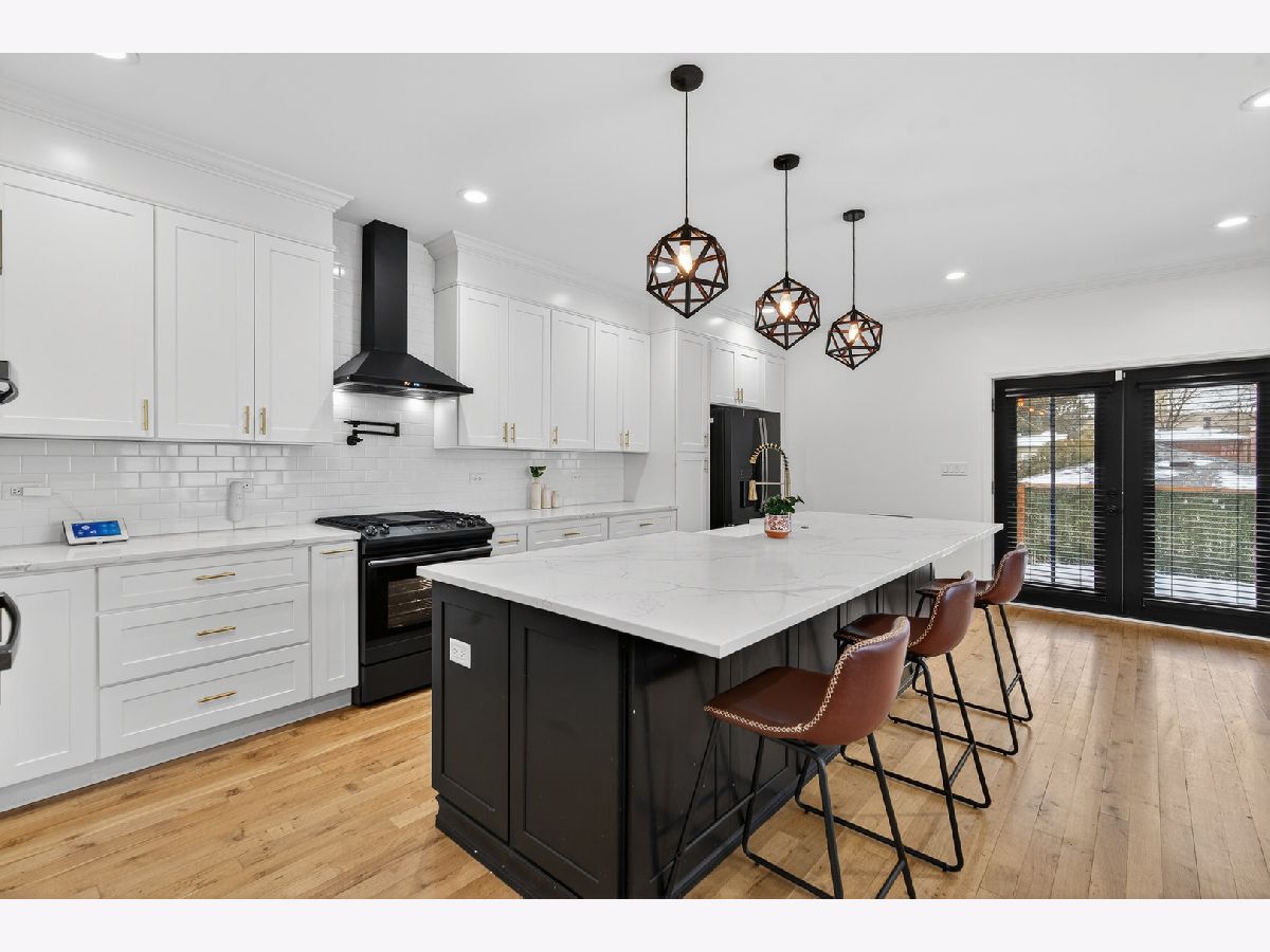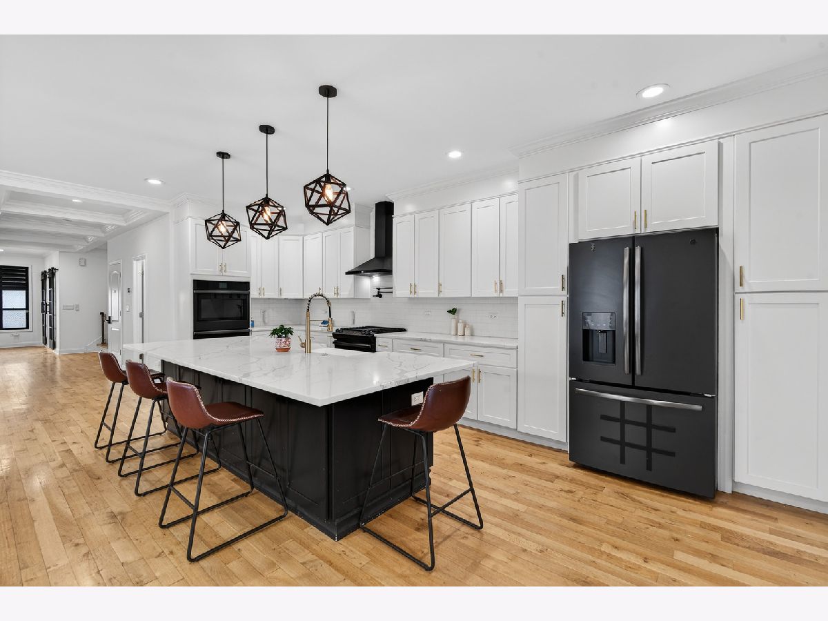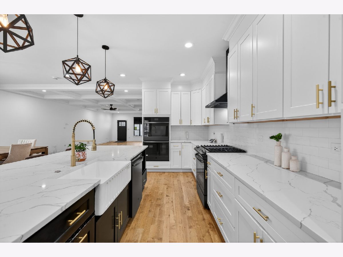 Stunning 4-bedroom, 3.5-bath modern farmhouse offering over 4,000 square feet of thoughtfully designed living space where no detail has been overlooked. Step into a sun-drenched, wide-open main level featuring a seamless flow from the inviting living area to a spacious dining room and a beautifully appointed kitchen. The kitchen is a showstopper that features an oversized island with breakfast bar, farmhouse sink, black stainless steel appliances, range with range hood and pot filler, dual built in ovens and a walk in pantry. An office with sliding French doors, a convenient half bath and mudroom with built in bench complete the first floor. Upstairs, you'll find three well-sized bedrooms, a full laundry room, and a versatile loft. The expansive primary suite features a fully outfitted walk-in closet and a luxurious en-suite bath with massive full spray shower and dual vanity. Both secondary bedrooms share the hall bath with soaking tub. The fully finished basement adds incredible living space with a family room with a full wet bar, 4th bedroom, third full bathroom, den and additional storage space. Enjoy outdoor living with a charming front porch complete with porch swing, a deck off the kitchen that leads to the spacious fully fenced backyard with a fire pit plus a covered patio area beneath the deck. Additional highlights include solar panels and an upgraded electrical panel ready for a future EV charger in the 2 car garage. Conveniently located near shopping, dining, and everything Berwyn has to offer, this exceptional home blends modern amenities with timeless style.
