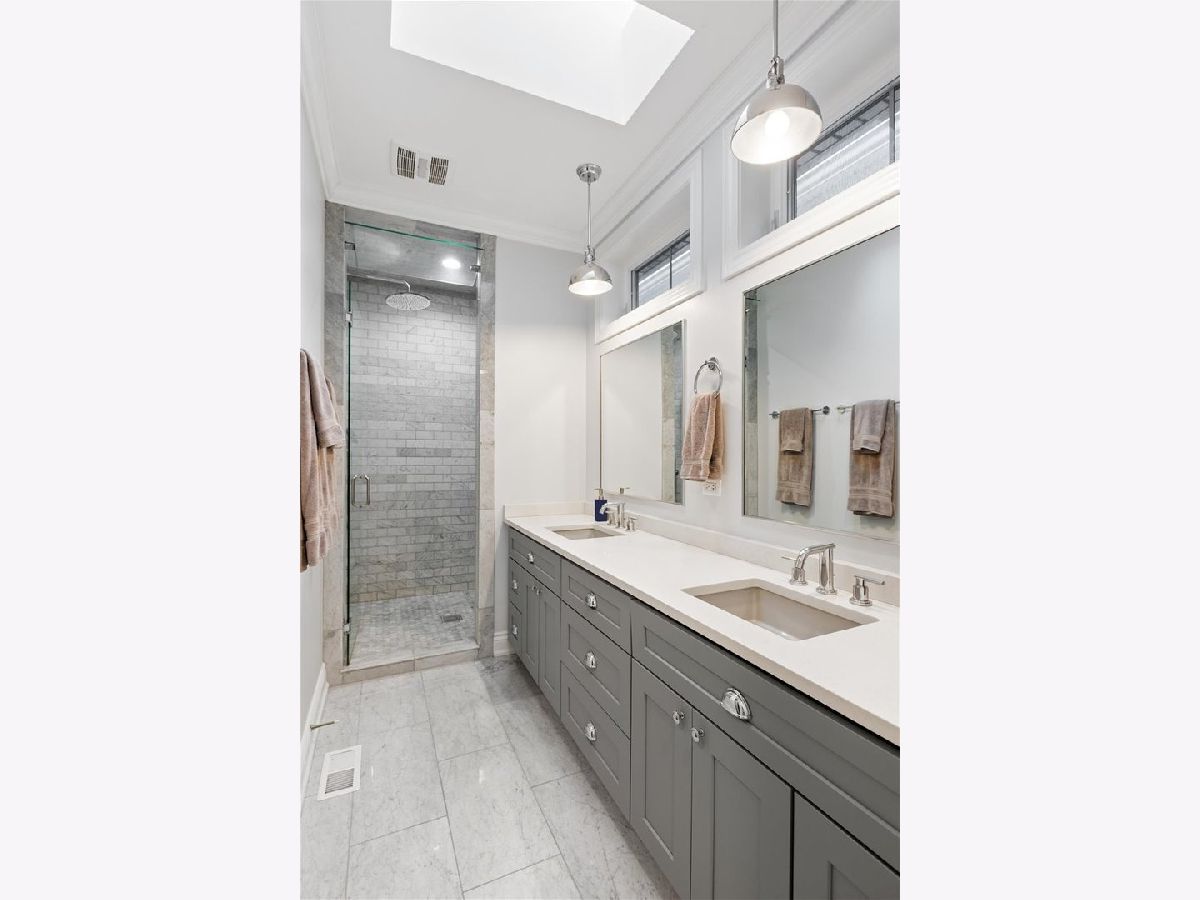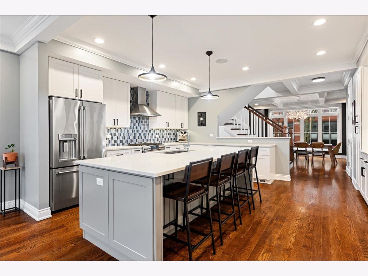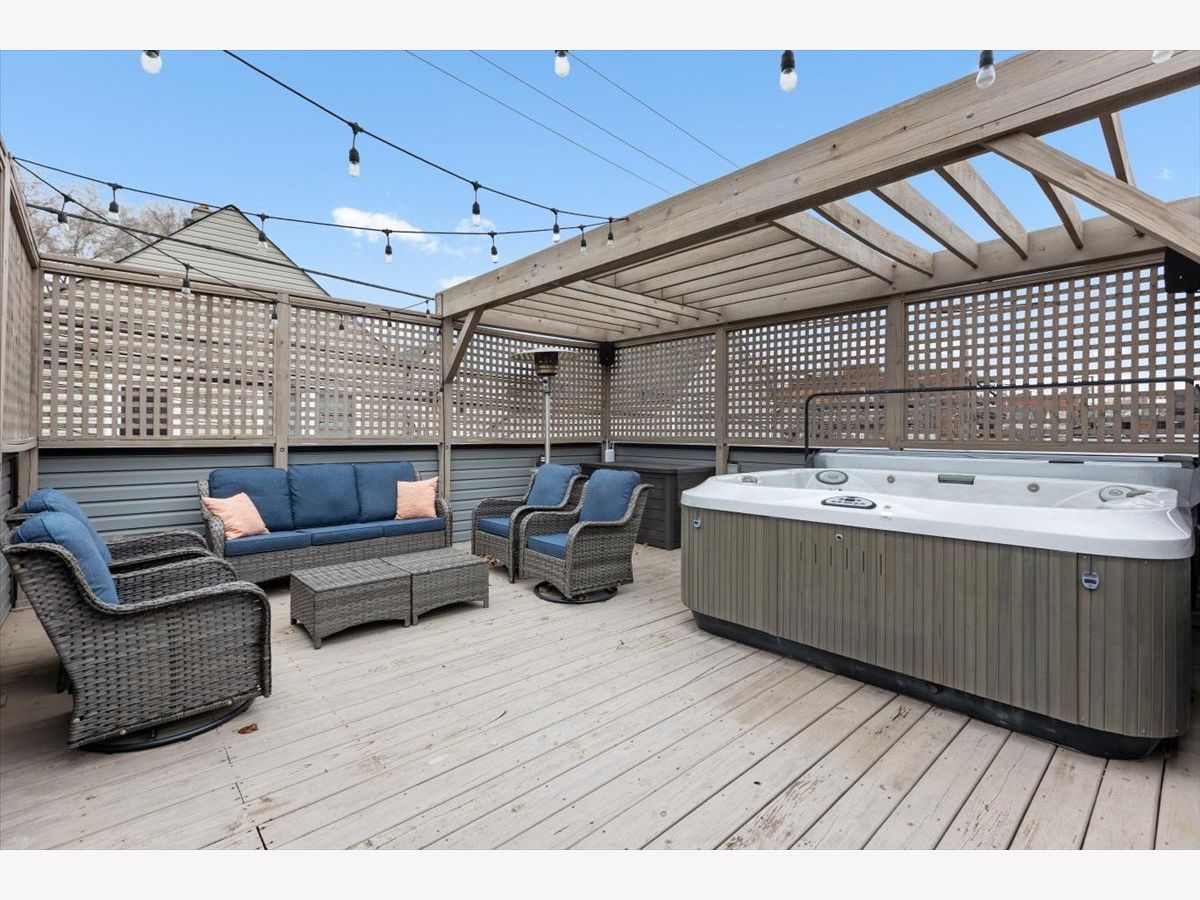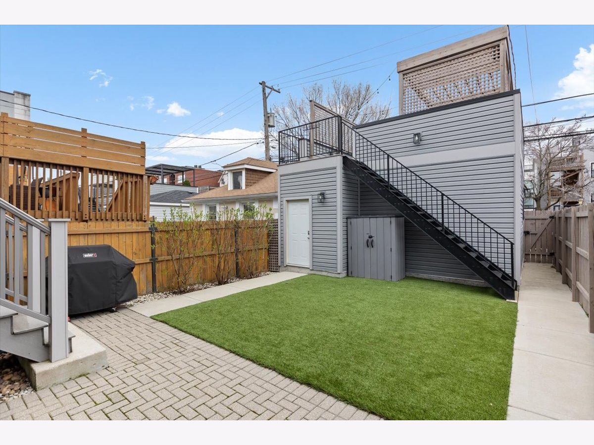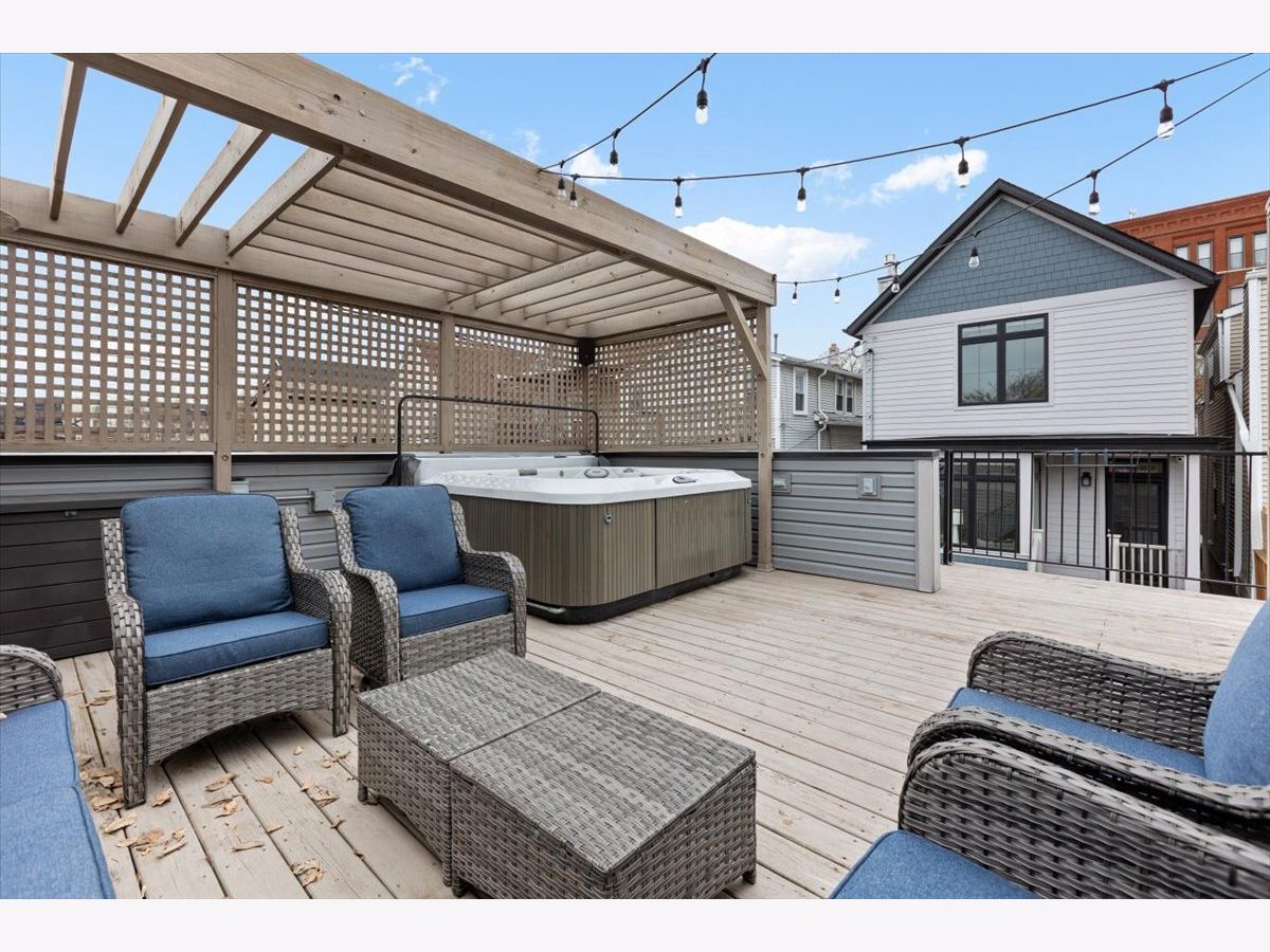 BETTER THAN NEW CONSTRUCTION. No detail spared on this 2019 MK construction CUSTOM home on the BEST block in West Bucktown. This exceptional home blends modern luxury with timeless design in one of Chicago's most sought-after neighborhoods. From the moment you step inside, soaring ceilings, expansive windows, and an open-concept layout create a bright, airy atmosphere filled with natural light. Designed for both everyday living and effortless entertaining, the main level features a chef's kitchen with high-end stainless steel appliances, custom cabinetry, a massive statement island, pantry, and seamless flow into the spacious living room with fireplace and dining area on either side. Elegant finishes, hardwood floors, and designer lighting add warmth and sophistication throughout. Upstairs, the primary suite offers a true retreat, complete with a spa-inspired bathroom featuring heated floors, oversized steam walk-in shower, dual vanities, and a generous walk-in closet. The upper level also offers 2 additional bedrooms, a bathroom with tub, laundry room, sunlit built-in office space. The lower level expands the home's living space with a large family room with fire place, a bedroom, full bathroom, additional storage, expansive bar with wine cooler, WINE CELLAR and dedicated fitness zone. Outdoor living is equally impressive, with multiple private spaces including a backyard paver patio and low-maintenance AstroTurf with grilling area and a stunning rooftop deck with a HOT TUB with a privacy pergola, garage with EV CHARGER, newly installed total home state-of-the-art AV SYSTEM, and a next level home security system. No detail has been overlooked in this beautifully designed home. Move right in and enjoy exceptional comfort, convenience, and luxury from day one. Location, location! A walker's dream just steps from Lucy Flower Park, the 606, Maplewood Park, and Maplewood Field House. Easy access to the Blue Line, buses, and expressways, plus endless options for dining, nightlife, and shopping right outside your door.