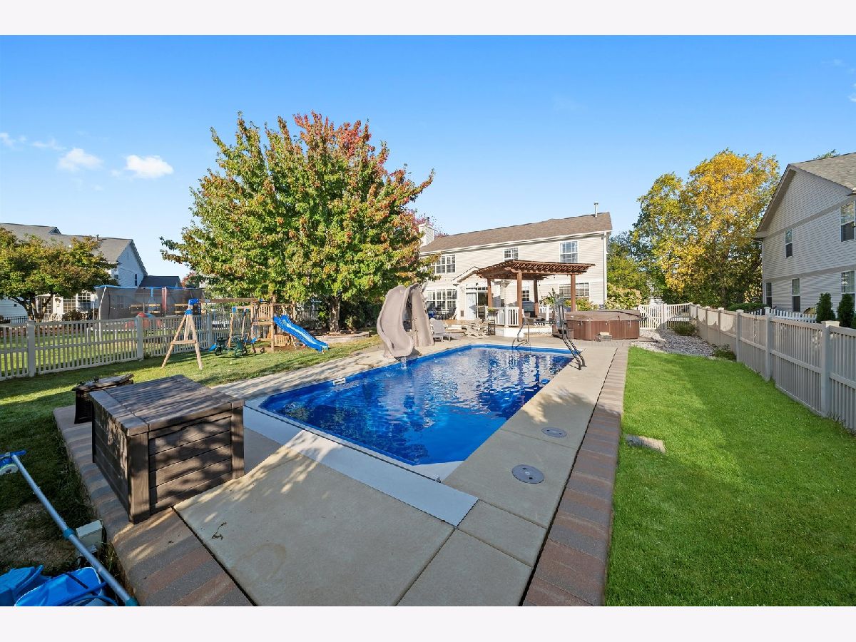 Welcome to this beautifully maintained Shorewood residence offering the perfect blend of elegance, comfort, and functionality. This spacious home features five bedrooms, each with walk-in closets, and four bathrooms, including two full and two half baths. The inviting kitchen includes modern appliances and opens to a cozy family room with a gas fireplace and a bright eat-in area. The finished basement provides an excellent entertainment space complete with a custom cherry wood bar and built-in play area. Step outside to your private backyard oasis featuring a heated in-ground pool with deck jets and a water slide, all smartphone-controlled. Enjoy relaxing or entertaining on the composite deck with pergola, unwind in the hot tub, or gather around the fire pit on the brick paver patio. The professionally landscaped yard and durable vinyl fencing offer beauty and privacy year-round. A heated two-car garage with epoxy flooring and custom cabinets adds convenience. Ideally located just one block from Shorewood's newest park and splash pad, and only minutes from I-55, shopping, dining, and schools. This home combines comfort, luxury, and an unbeatable location, schedule your private tour today!