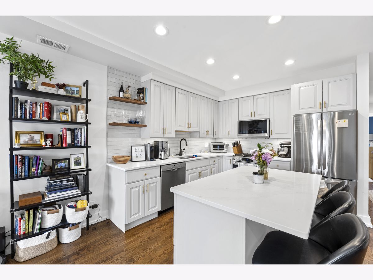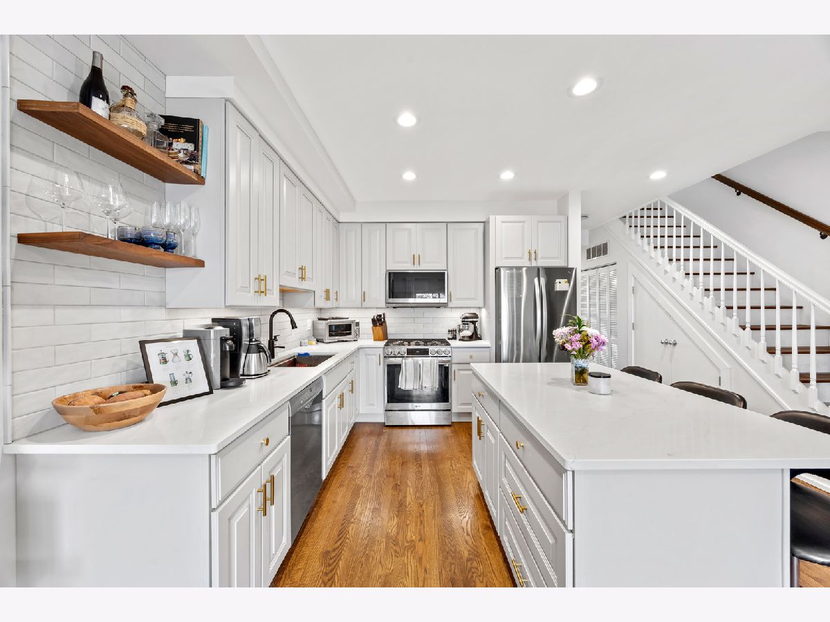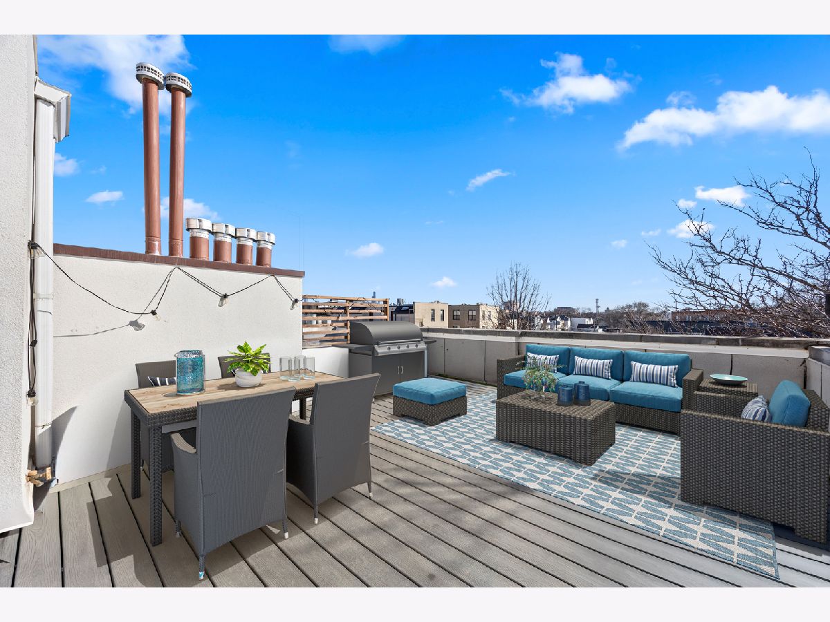 With the perfect Bucktown / 606 location this beautifully updated two-bedroom duplex-up offers an effortless blend of style, comfort, and outdoor living. The move-in ready interior showcases a stunning new white kitchen featuring brass hardware, quartz countertops, open walnut shelving, oversized subway tile, and all-new appliances. A balcony just off the living room makes grilling and entertaining effortless. Brand-new hardwood floors run throughout, while a black slate fireplace with a wood mantle make for cozy late spring nights. Upstairs, the primary suite provides a spacious, organized walk-in closet and opens through a new sliding patio door to a generous composite deck with sweeping views overlooking the country's premier urban trail. Walk to everything including Wolf + Co. for a fabulous dinner with dessert at Margie's or Ava's Italian Ice. A turnkey home in an unbeatable location!