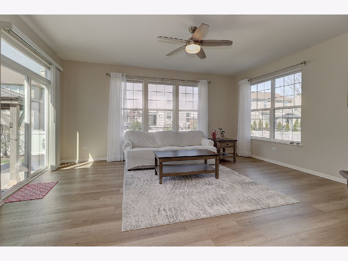 This 2,441-square-foot ranch home is located in the established North Point neighborhood at Springbank and is currently open for viewing. The home features an open floor plan with 9' ceilings, LED surface-mounted lighting, and new luxury vinyl flooring throughout. The great room opens to a well-appointed kitchen with quartz countertops, 42" cabinets, and stainless-steel appliances, complemented by a spacious breakfast area and a sunroom that leads to the backyard. The primary suite includes a deluxe walk-in shower, double sinks, and a walk-in closet. For added convenience, the laundry room is located on the first floor, and the home is equipped with a video doorbell and a smart thermostat. The community offers excellent amenities, including walking paths, a playground, a basketball court, and close proximity to the Springbank Aquatic Center. It is also just minutes from hiking at Mather Woods Forest Preserve and downtown Plainfield, falling within the Plainfield school district.