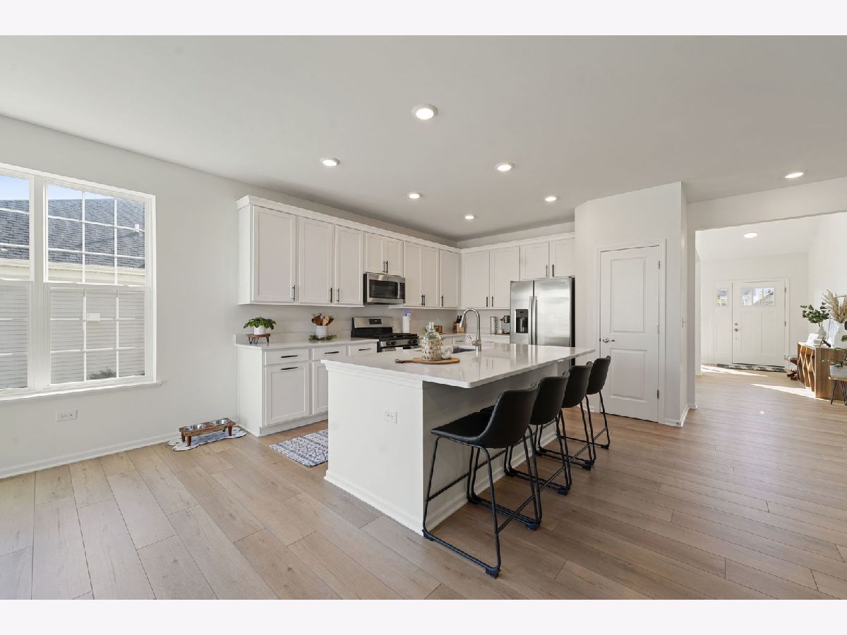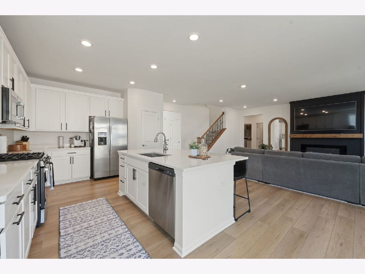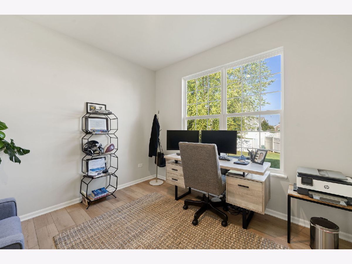 This stunning home offers the perfect blend of modern luxury and comfort. Featuring 4 spacious bedrooms, a dedicated office, and 2.5 beautifully designed bathrooms. Step inside to an inviting open-concept layout with brand new floors that were recently installed, freshly painted throughout the home, family room showcases a custom fireplace, perfect for family gatherings, a white on white kitchen with quartz countertops and an island perfect for entertaining. The main floor also includes the office, half bathroom and laundry room that has BRAND NEW LG Washer & Dryer. The large primary bedroom includes tray ceilings along with a full master bathroom and water closet, there are also 2 custom-built walk in closets! Next we have 3 generous sized bedrooms with one room that features a large walk in closet! Enjoy peace of mind with a keyless entry system and home security, plus a newly added concrete patio that adds additional outdoor living square footage. Enjoy the 3 car garage with a freshly sealed driveway! Residents have UNLIMITED ACCESS to an aquatic center, playground, recreation center, and basketball courts, all just steps away! Outdoor lovers will appreciate being near Mather Woods, and you'll love the convenience of being minutes from downtown Plainfield, many restaurants, shopping centers and only 20 minutes from Naperville. All you need to do is MOVE IN!