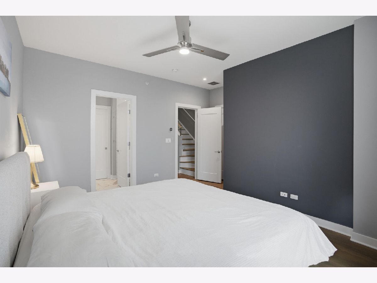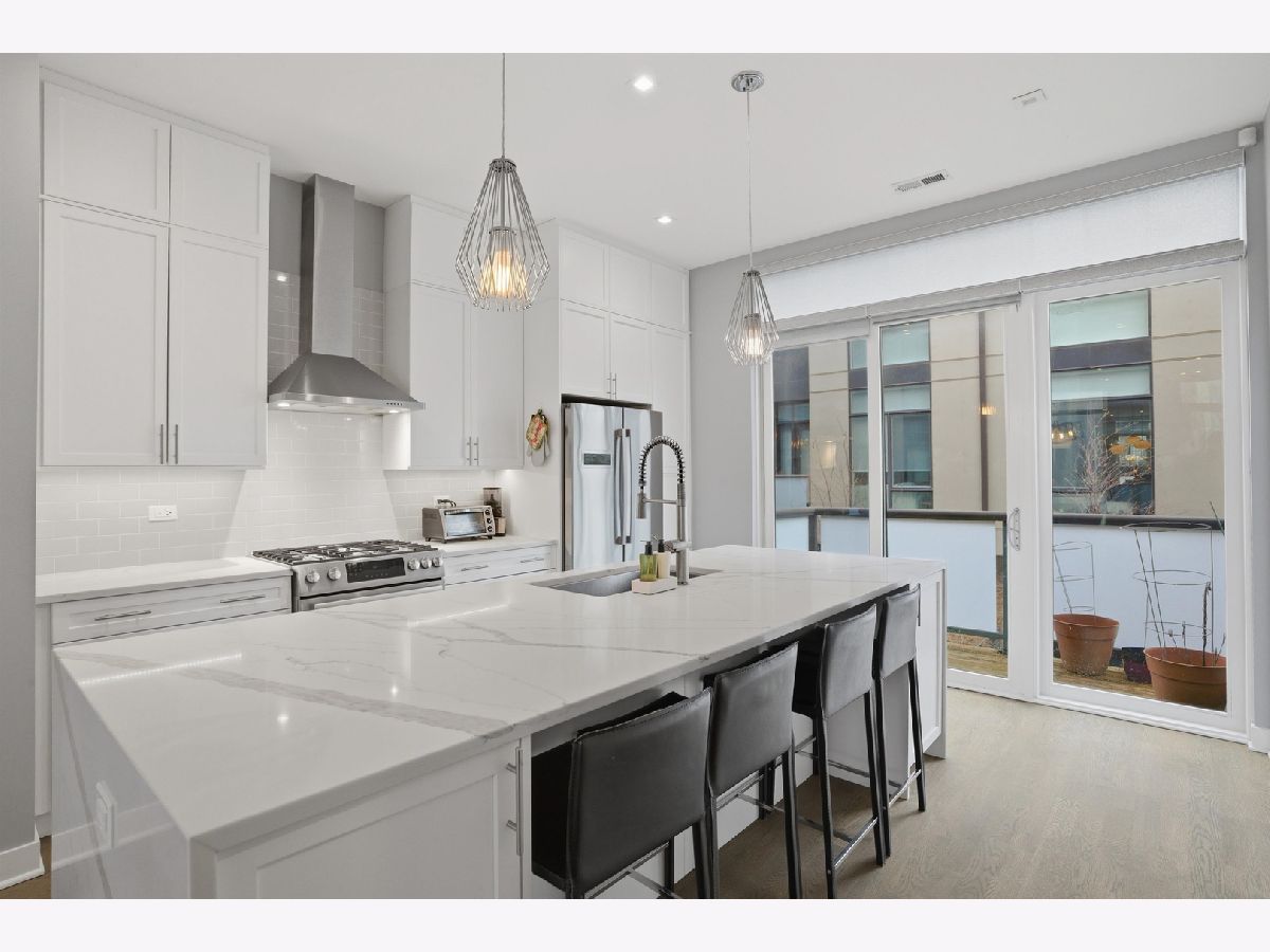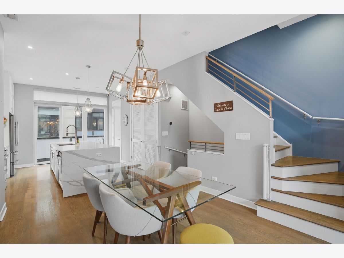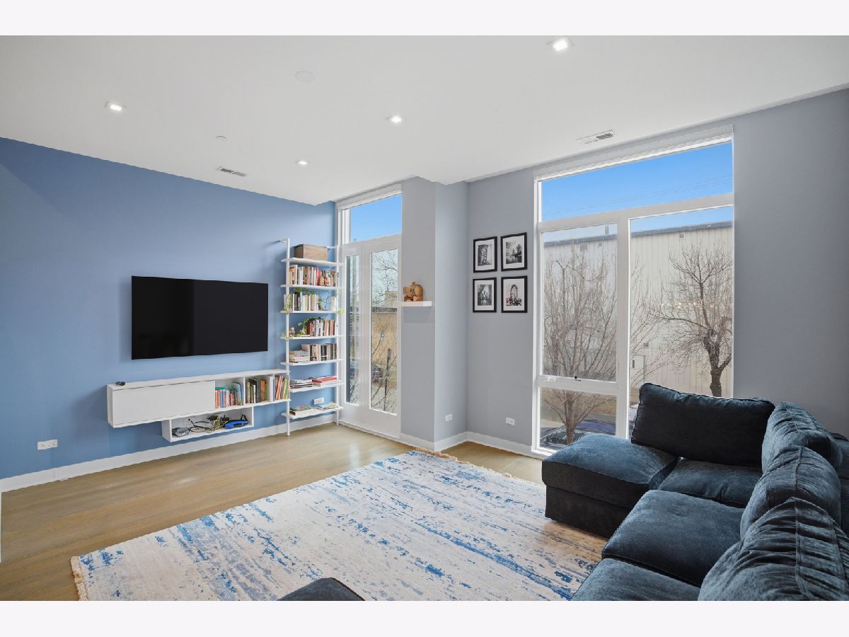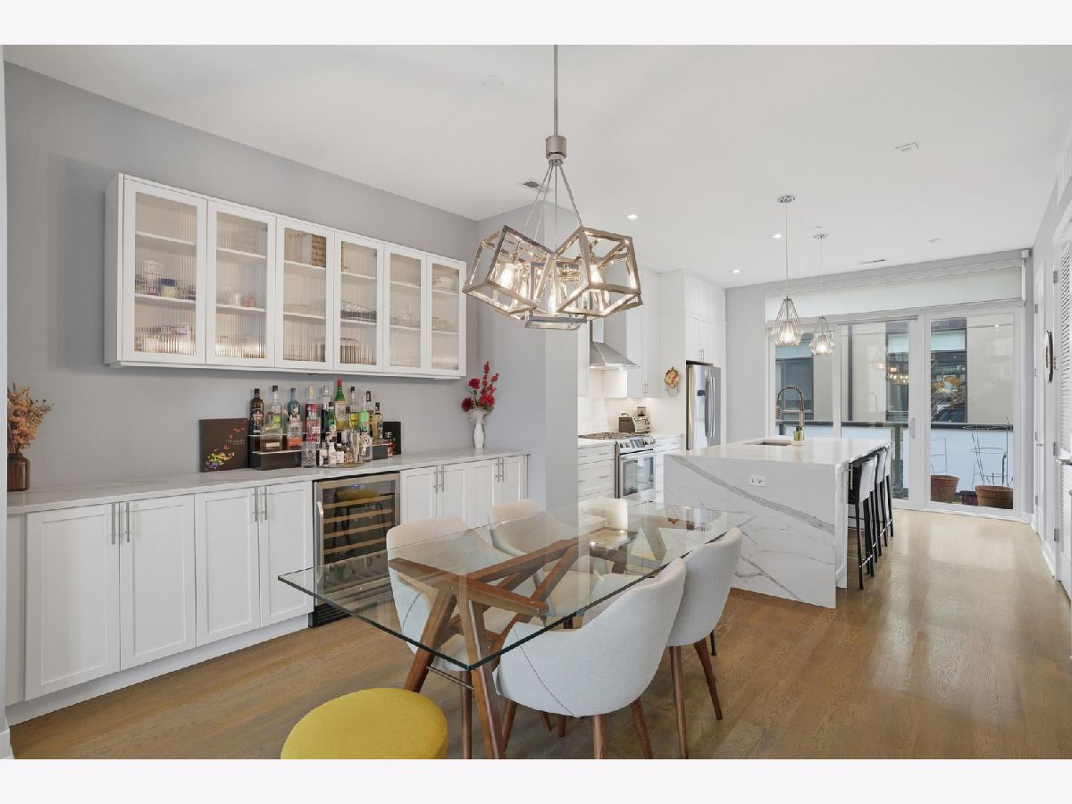 This exceptional extra-wide Bucktown townhome offers 3 bedrooms, 3.1 bathrooms, an attached two-car garage, and a stunning private rooftop deck that stretches the length of the home. Thoughtfully designed with high-end finishes and a functional layout, this residence lives like a single-family home while offering the convenience of modern city living. Enter through a landscaped, fenced front yard into a welcoming foyer featuring a smart lock entry, stylish lighting, and a coat closet. The first level includes a spacious bedroom with tile flooring and a private ensuite bathroom complete with a sleek vanity and glass walk-in shower, ideal for guests, a home office, or additional living space. The main level is bright and open, designed for both everyday living and entertaining. The chef's kitchen showcases Bosch appliances, including a five-burner gas range with vented hood, quartz countertops, double-stacked European cabinetry, a stylish subway tile backsplash, and a large waterfall island with seating, integrated microwave, and abundant storage. Just off the kitchen is a private balcony, perfect for grilling or enjoying your morning coffee. The dining area sits centrally between the kitchen and living space and features a custom built-in bar with wine refrigerator, illuminated cabinetry, and statement lighting. The expansive living room overlooks a charming tree-lined street and is filled with natural light from oversized windows. A powder room completes this level. Upstairs, two generously sized bedrooms include a spacious primary suite with floor-to-ceiling windows, a professionally organized walk-in closet, and a spa-inspired marble bathroom with a double vanity, large walk-in shower, and separate water closet. The second bedroom also features floor-to-ceiling windows and its own ensuite bath with a tub/shower combination. A convenient hallway laundry area includes a full-size LG front-loading washer and dryer. At the top of the home, the fully built-out private rooftop deck provides the perfect outdoor retreat. Designed with durable decking and turf, the space easily accommodates lounge seating, outdoor dining, and entertaining while offering sweeping neighborhood views. Additional features include oak flooring on the main and upper levels, custom window treatments, dual-zone HVAC with Nest thermostats, and an ADT security system. Ideally located in the heart of Bucktown near Logan Square, this home is just moments from the CTA Blue Line, the 606 Trail, and the vibrant dining, shopping, and nightlife along Armitage and Milwaukee Avenues. Explore the property in 3D by clicking the virtual tour to walk through every detail of this exceptional home.