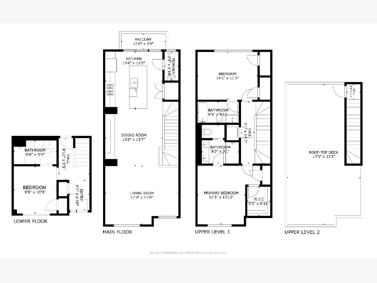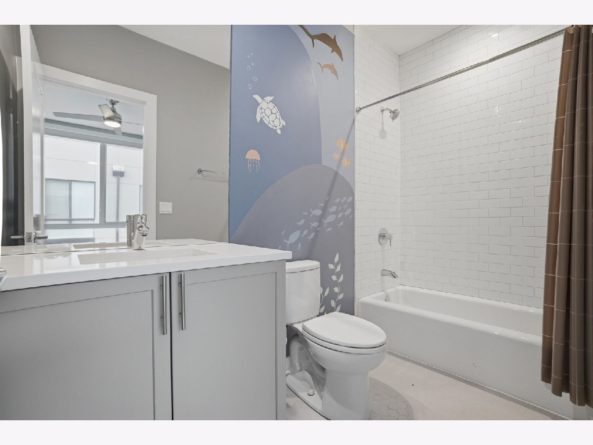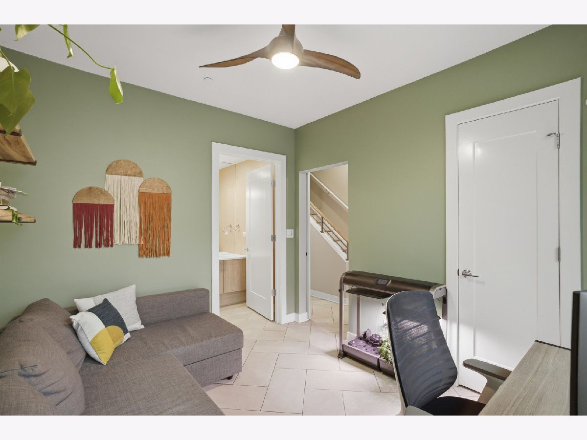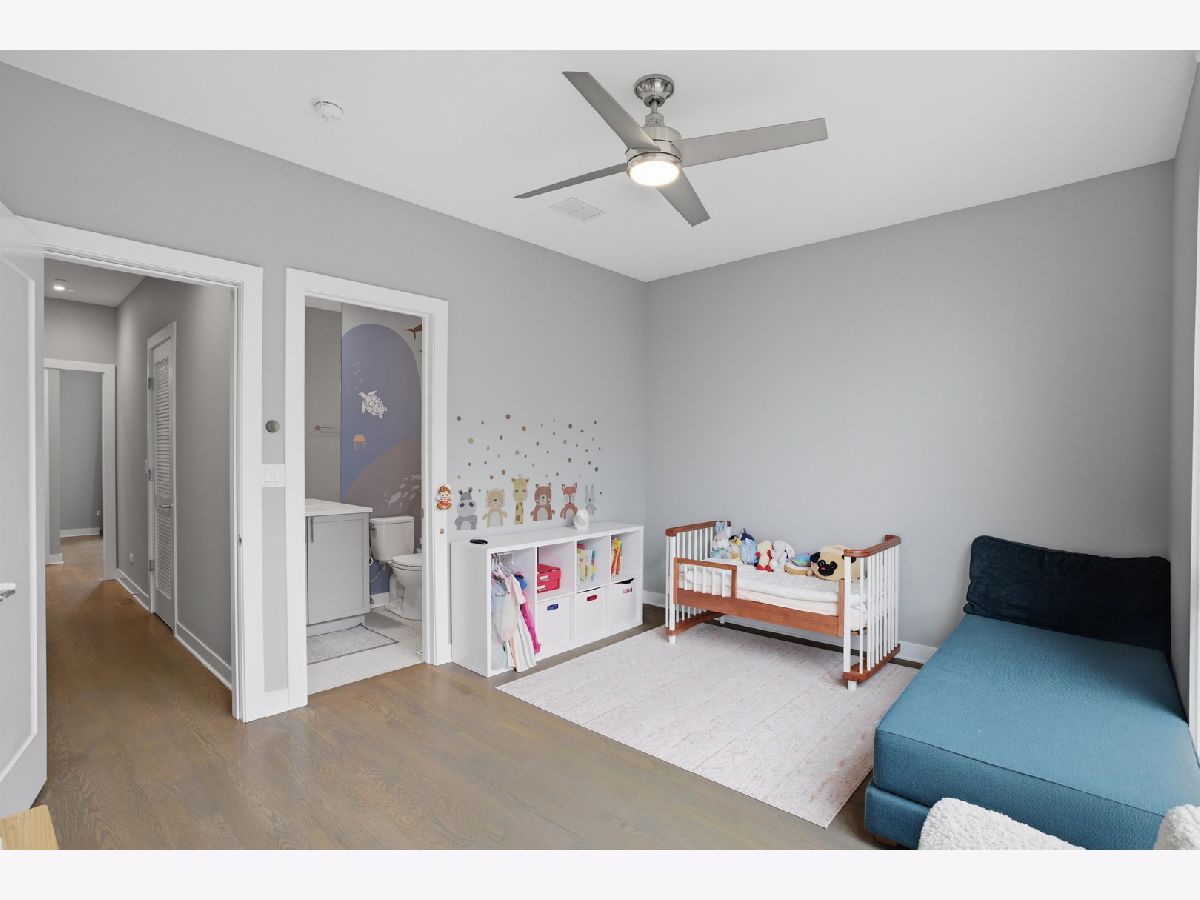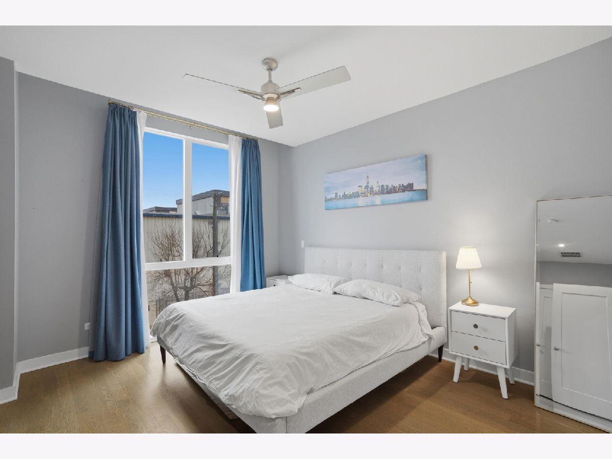 This exceptional extra-wide Bucktown townhome offers 3 bedrooms, 3.1 bathrooms, an attached two-car garage, and a stunning private rooftop deck that stretches the length of the home. Thoughtfully designed with high-end finishes and a functional layout, this residence lives like a single-family home while offering the convenience of modern city living. Enter through a landscaped, fenced front yard into a welcoming foyer featuring a smart lock entry, stylish lighting, and a coat closet. The first level includes a spacious bedroom with tile flooring and a private ensuite bathroom complete with a sleek vanity and glass walk-in shower, ideal for guests, a home office, or additional living space. The main level is bright and open, designed for both everyday living and entertaining. The chef's kitchen showcases Bosch appliances, including a five-burner gas range with vented hood, quartz countertops, double-stacked European cabinetry, a stylish subway tile backsplash, and a large waterfall island with seating, integrated microwave, and abundant storage. Just off the kitchen is a private balcony, perfect for grilling or enjoying your morning coffee. The dining area sits centrally between the kitchen and living space and features a custom built-in bar with wine refrigerator, illuminated cabinetry, and statement lighting. The expansive living room overlooks a charming tree-lined street and is filled with natural light from oversized windows. A powder room completes this level. Upstairs, two generously sized bedrooms include a spacious primary suite with floor-to-ceiling windows, a professionally organized walk-in closet, and a spa-inspired marble bathroom with a double vanity, large walk-in shower, and separate water closet. The second bedroom also features floor-to-ceiling windows and its own ensuite bath with a tub/shower combination. A convenient hallway laundry area includes a full-size LG front-loading washer and dryer. At the top of the home, the fully built-out private rooftop deck provides the perfect outdoor retreat. Designed with durable decking and turf, the space easily accommodates lounge seating, outdoor dining, and entertaining while offering sweeping neighborhood views. Additional features include oak flooring on the main and upper levels, custom window treatments, dual-zone HVAC with Nest thermostats, and an ADT security system. Ideally located in the heart of Bucktown near Logan Square, this home is just moments from the CTA Blue Line, the 606 Trail, and the vibrant dining, shopping, and nightlife along Armitage and Milwaukee Avenues. Explore the property in 3D by clicking the virtual tour to walk through every detail of this exceptional home.