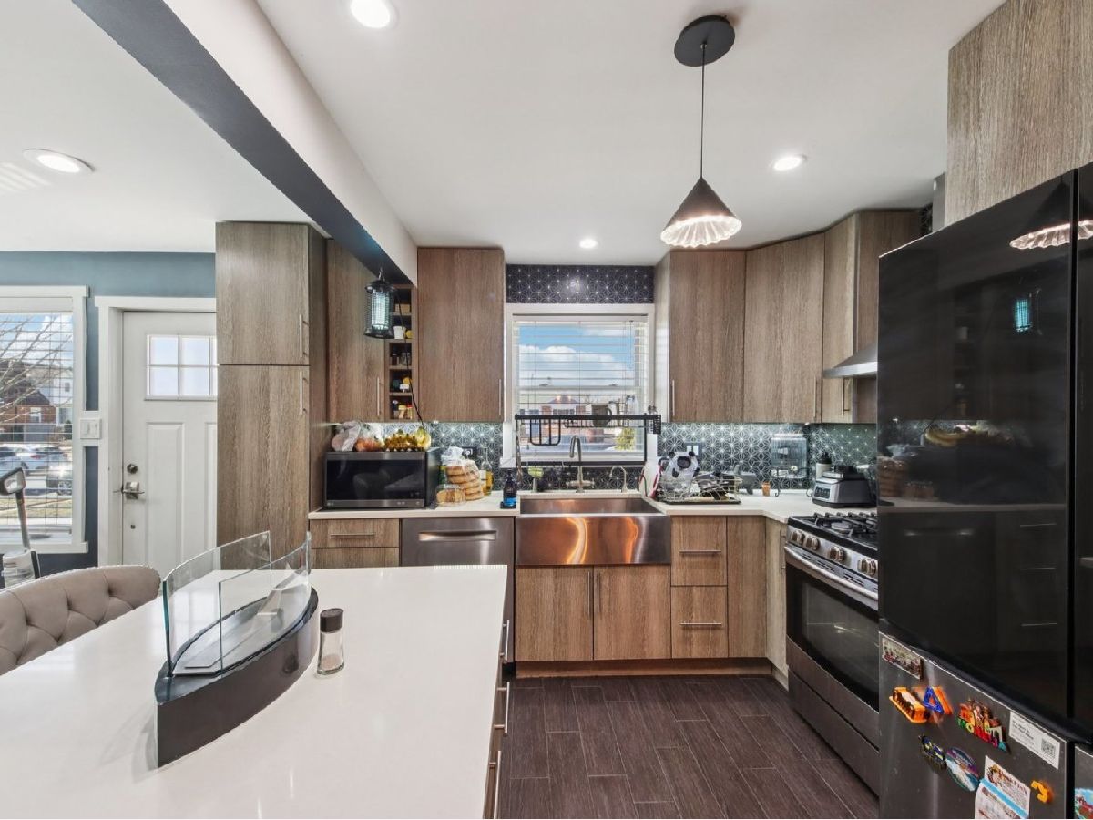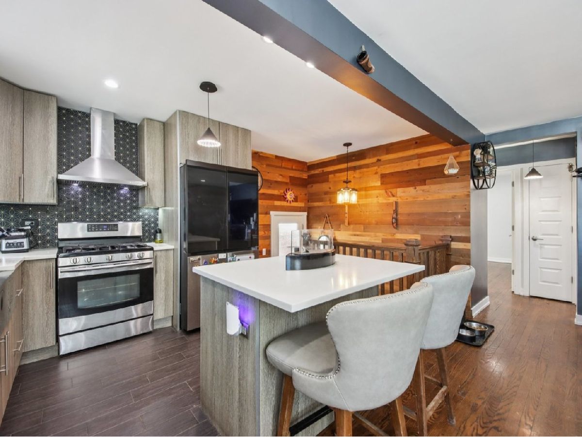 In Superb Condition 3-bedroom, 2-bathroom brick ranch in River Grove. The main floor features a modern open-concept living area, and a custom kitchen with quartz countertops. The lower level has a finished basement with a large family room, a 3rd bedroom, and a modern bathroom with a walk-in shower. Exterior updates include a two-car garage, a newer concrete driveway, a fully fenced yard, and a covered patio. The roof, HVAC, and windows are newer within the last several years. The home has high-end appliances.