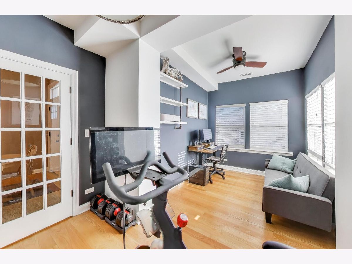Sun-drenched three bedroom, two bath condo with fireplace in a great Logan Square location. Completely updated kitchen and bathrooms. Generous eat in kitchen with stainless steel appliances and granite counters. Lots of kitchen storage and counter space. In unit laundry!!! The third bedroom is currently being used as an office. Exposed brick and hardwood floors though out the unit. Back deck for grilling along with large community patio. Large dedicated storage space, common party room, and a fully equipped exercise room with powder room. Garage parking. All newer mechanicals. Walking distance to the Blue Line and the Metra. Please note that seller has not filed for a Homeowner's Exemption.