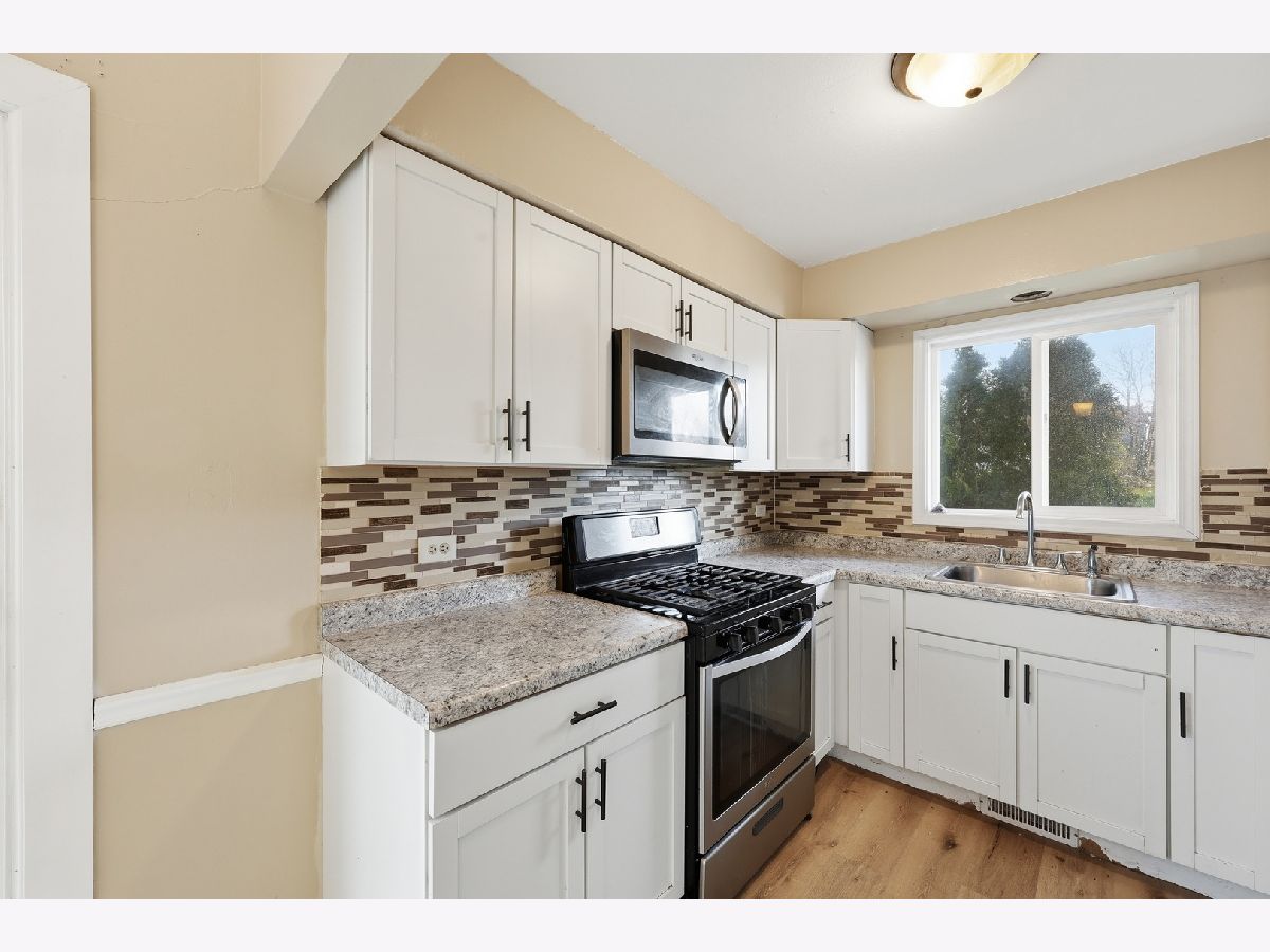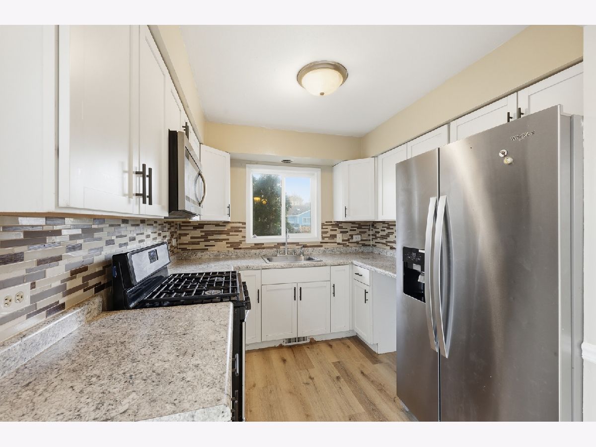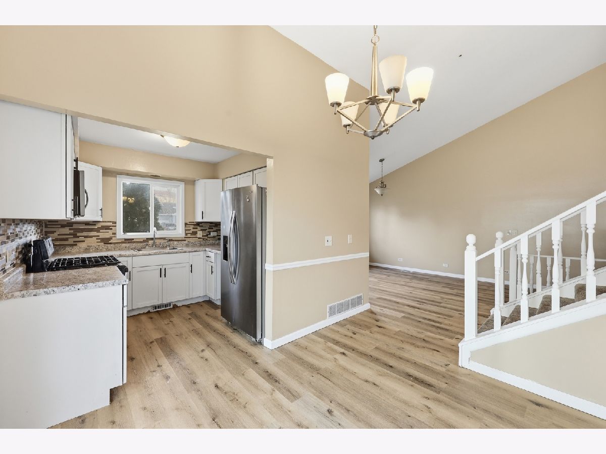 This is the home you've been searching for, located in a desirable neighborhood. Offering 3 spacious bedrooms, 2 full bathrooms, and an attached 2-car garage, this home combines comfort with functionality.Step inside to a warm and inviting layout featuring durable laminate flooring throughout the main level. The kitchen includes white cabinetry, stainless steel appliances, and a stylish backsplash, and flows seamlessly into the dining area with sliding doors leading to a private side patio-perfect for relaxing or entertaining. The bright living room showcases vaulted ceilings, creating an open and airy feel. The lower level features a family room with a fireplace, a full bathroom with a granite vanity, a dedicated laundry area, and direct access to the garage.Water heater 2024, furnace 2022, washer and dryer 2024. The exterior features a spacious yard and an oversized driveway, providing plenty of parking.