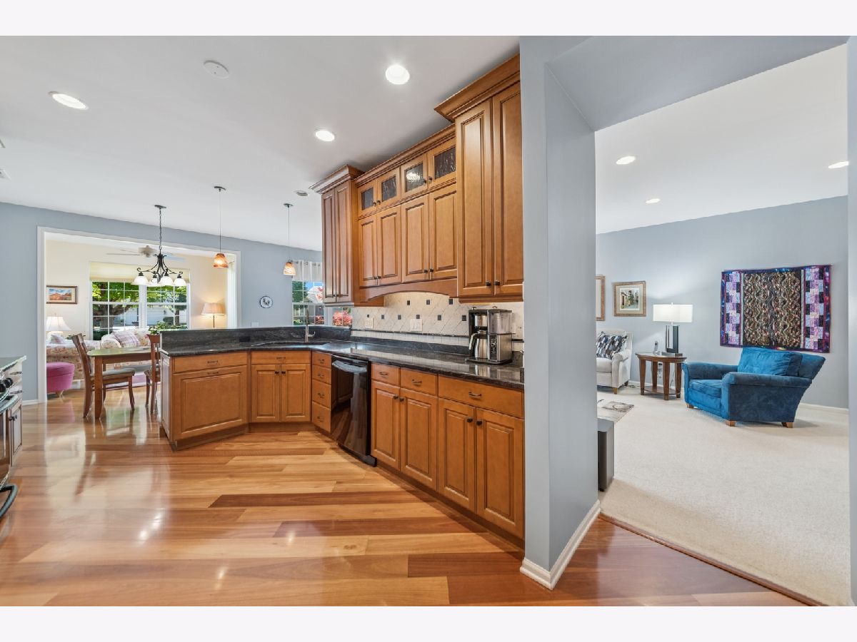Edgewater by Del Webb*Beautiful Wilmette model with 1938 sq. ft. on large premium corner lot. Kitchen is a gourmet chefs dream! Cherry cabinets to top of 9' ceiling, crown molding on upper cabinets, pull out shelf for mixer, 2 pull out shelves on lower cabinets, lighted glass in some upper cabinets, custom pantry, granite counters and back splash, it is truly "one-of-a-kind!" The master bathroom has a custom walk-in shower with granite seat and beautiful inlayed tile. Counter with sinks has matching granite. Found in many luxury homes! The office has a built-in cherry desk in den.Also has newer Furnace, AC & humidifier in '18, Microwave '20; Washer/Dryer in '22; HWH in '17. The garage is extended by 4' for extra storage and has built -in shelves. Edgewater takes care of snow and grass maintenance, Creekside Lodge with indoor and outdoor pool, 24/7 guard in gated community, hot tub, fitness center, billiard room, and many activities.! Please visit Creekside Lodge to see the "heart" of Edgewater.