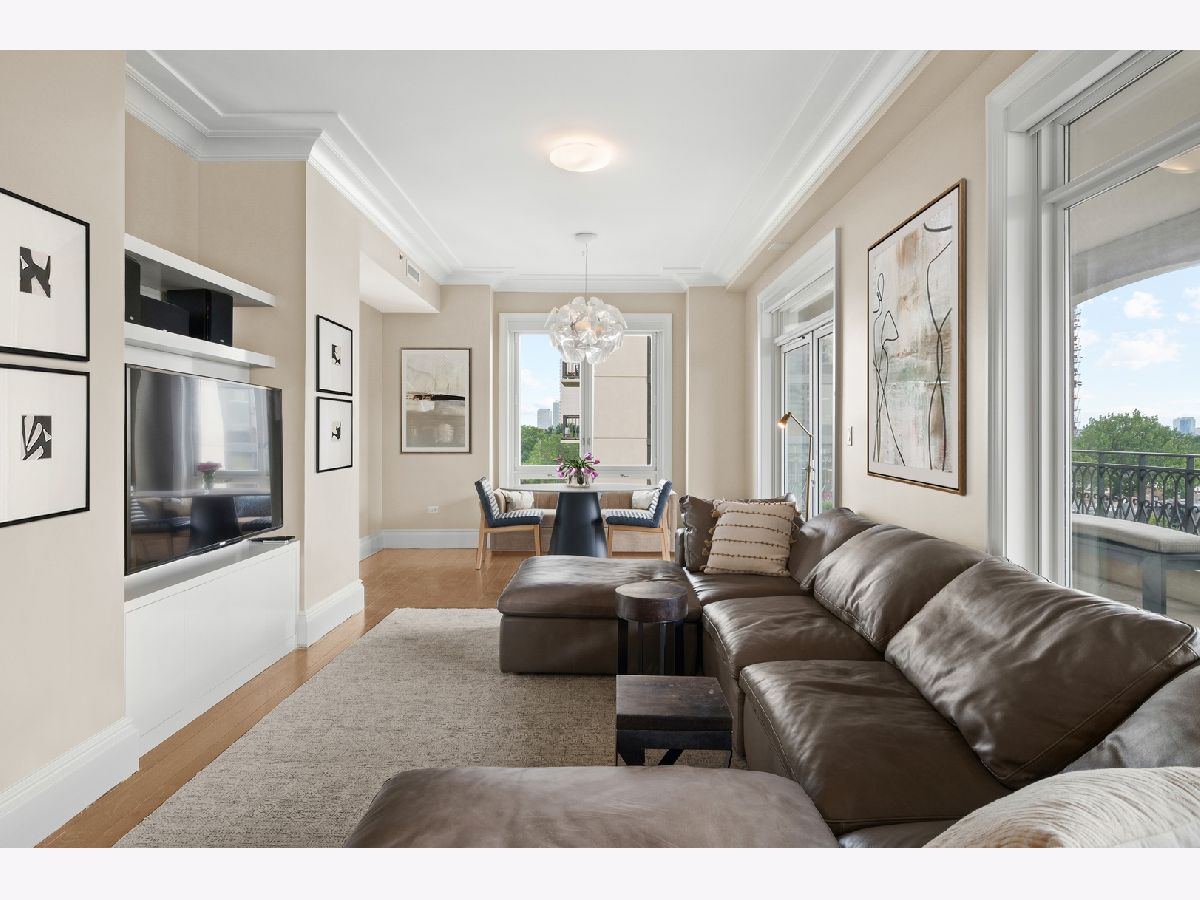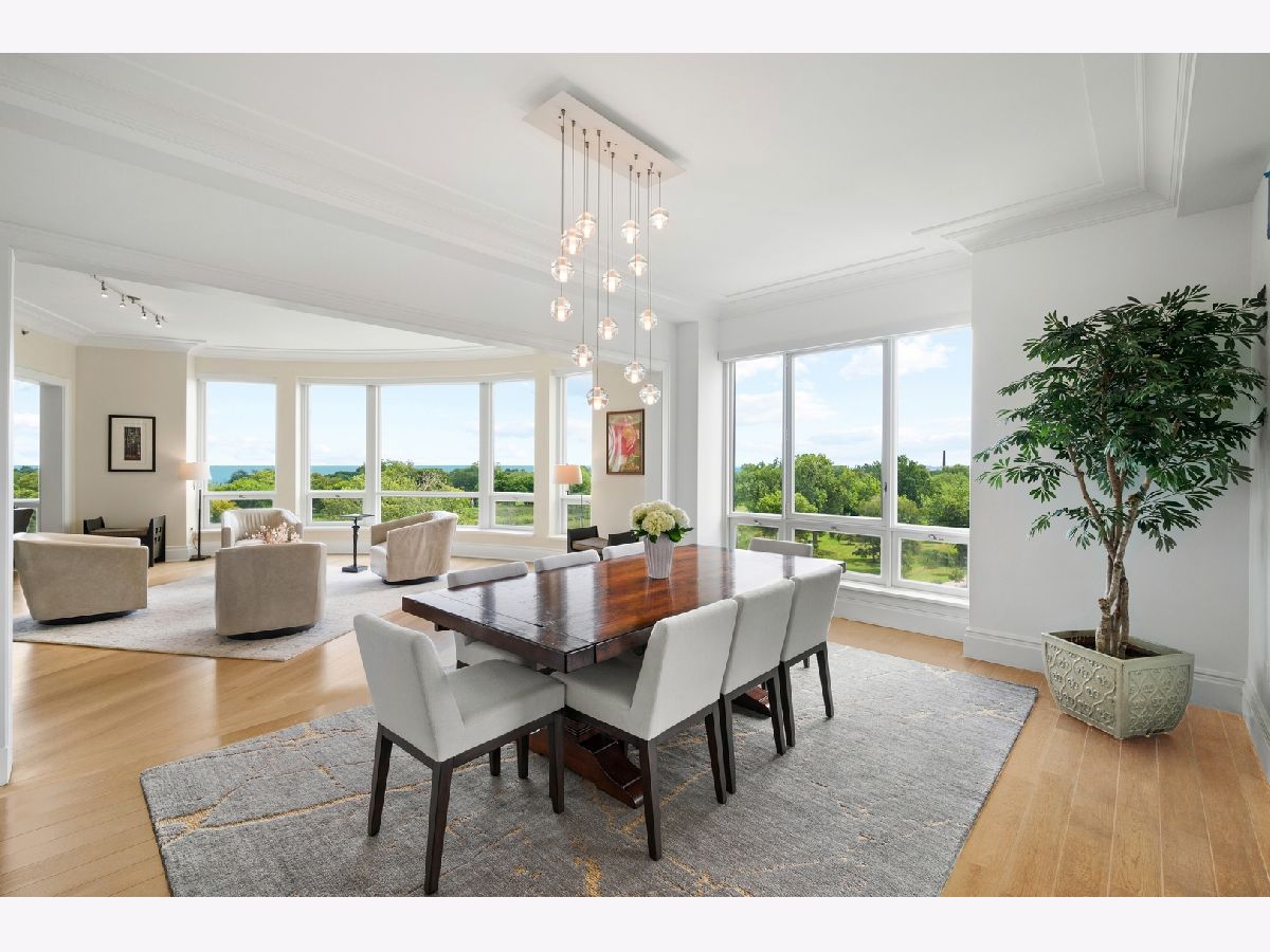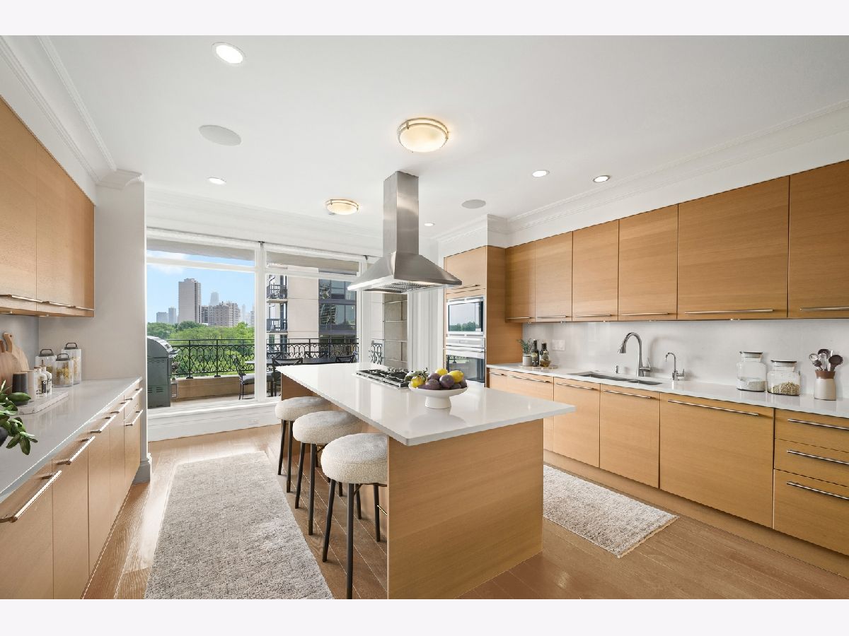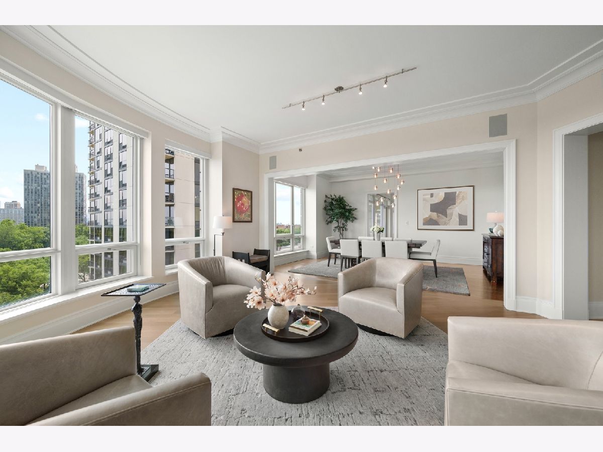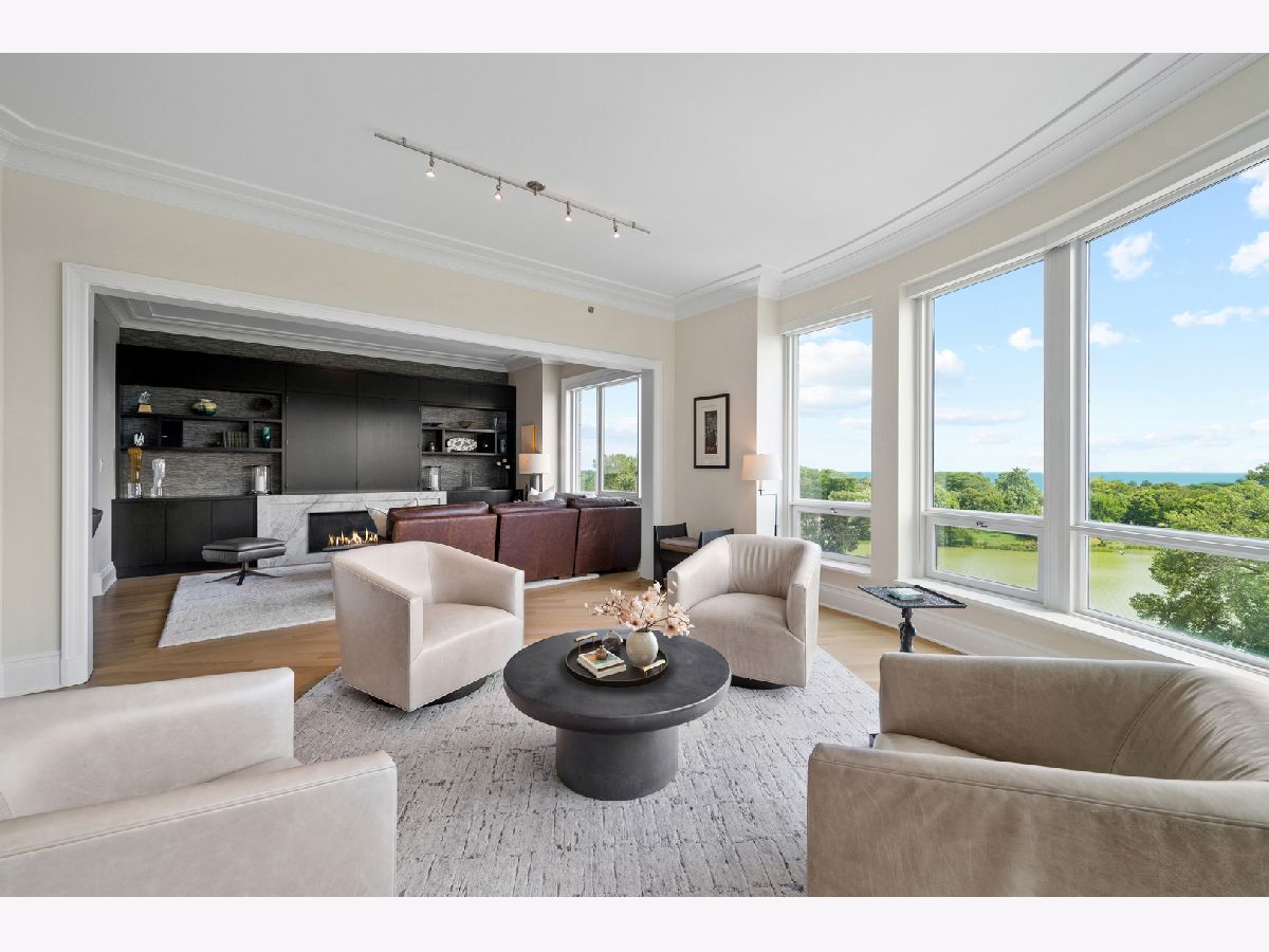 Residence S701, a Southeast corner 3 bedroom/3.1 bathroom home in the highly coveted, Lucien LaGrange-designed, Lincoln Park 2550. This remarkable home offers 4,000 square feet of thoughtfully designed living space, picturesque views from three terraces, and best-in-class amenities. Throughout the home - one of the largest in the building - floor-to-ceiling windows offer family and guests breathtaking and panoramic views of Lake Michigan, Lincoln Park, North Pond, and the Chicago skyline - views that change with the seasons and shift with the day's light. Inside the home, floor-to-ceiling windows bathe the interior spaces with light, inviting the natural beauty of the outdoors in. The focal point of the large formal living room is once again the view, this time visible through a bright wall of windows that curve the entire width of the space and amplify the 180-degree cityscape. The adjoining den and large dining room are clearly defined spaces, but are capable together of accommodating a large gathering. Sophisticated and elegant finishes are found throughout the home including the kitchen which features Caesarstone quartz countertops with island seating, customized Snaidero cabinetry and top of the line appliances including Subzero, Wolf, and two Miele dishwashers. The pass through butler's pantry adds storage, a wet bar, and temperature controlled wine storage. The south terrace, accessible from the kitchen, has gas grill hook-up and is large enough for a seated meal. Stepping off the kitchen, a comfortably sized family room provides the perfect setting for a relaxing evening or enjoy sunsets on the western terrace. The largest of the three, this 44x12-foot covered terrace overlooks the stunning manicured gardens and fountain within the 1.5-acre gated, private park. Back inside, the substantial primary bedroom is a peaceful retreat and includes its own east facing terrace, two walk-in closets, and spa-quality bathroom with dual vanity sinks, great storage, soaking tub, and an aromatherapy steam shower. Two additional bedrooms, both ensuite with private bathrooms and walk-in closets make perfect sanctuaries for family or guests. Key features throughout this large-scale home include: wide plank oak flooring, custom millwork and built-ins, smart home technology with centralized media and climate control, built-in speakers, programmable lighting, and Lutron shades. Residents of the building enjoy exceptional amenities: indoor pool with sundeck, top-of-the-line fitness center, sauna and steam rooms, movie theater, newly renovated party/event room with amazing kitchen, game and billiards room, massage rooms, on-site dry cleaner, dog run, private playground and an exceptional team of 24/7 door staff. Two large storage spaces and two parking spots with guest passes and optional valet service are included.