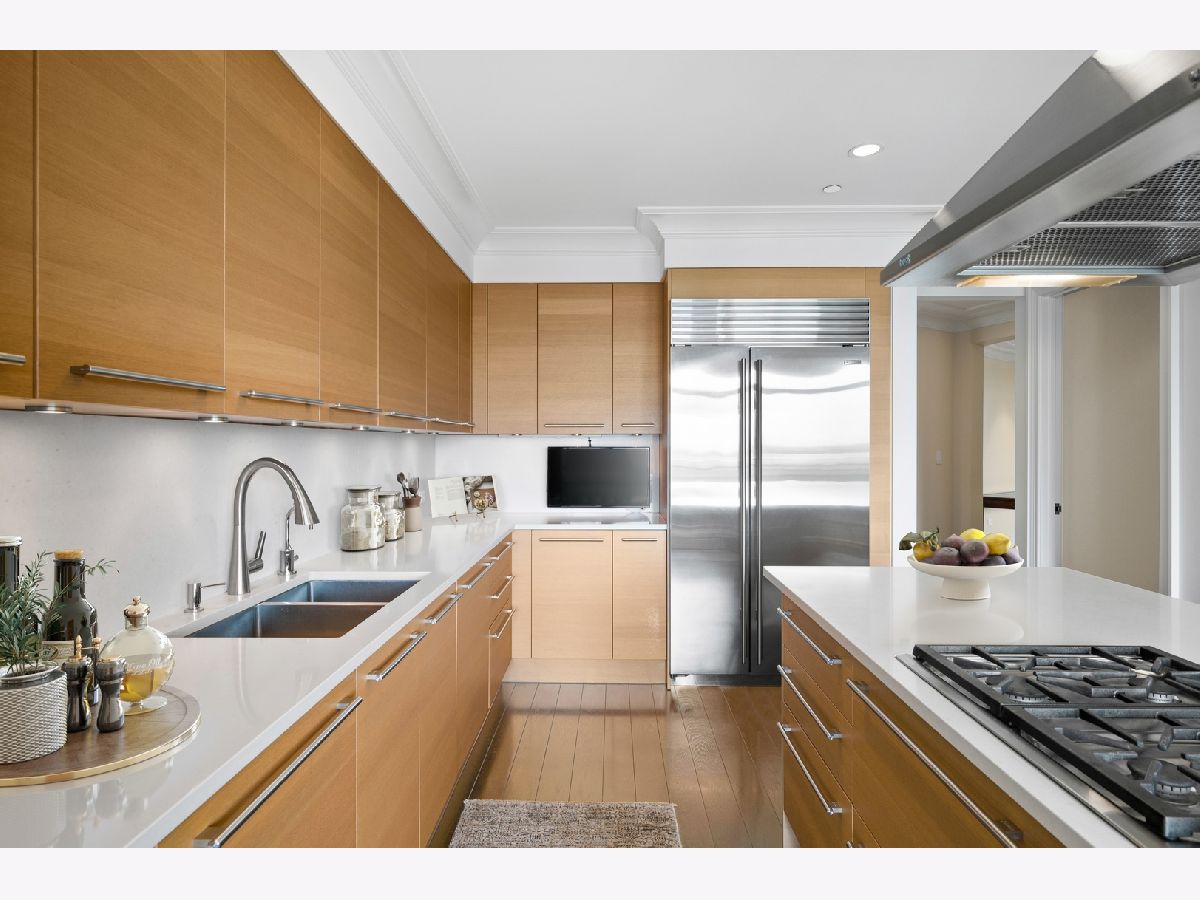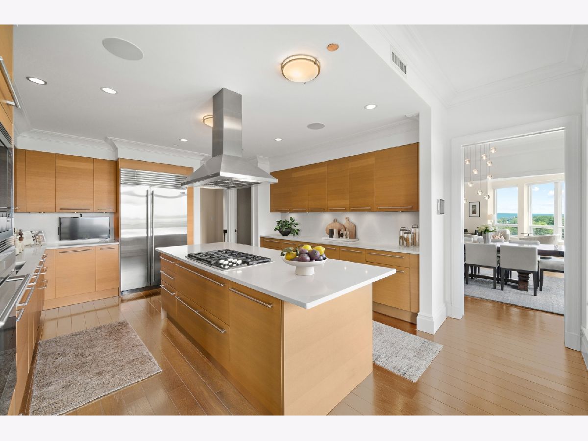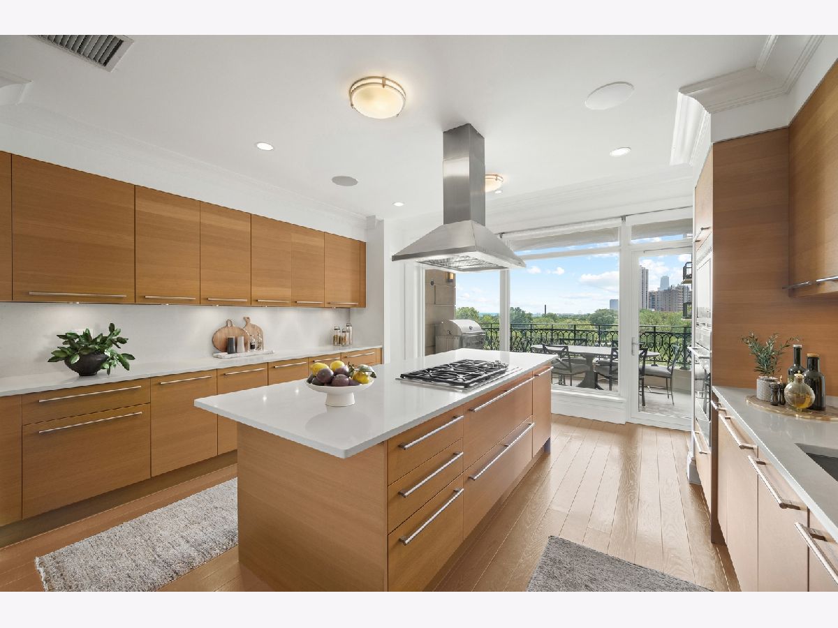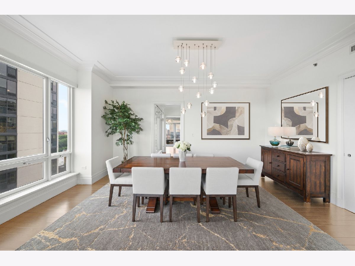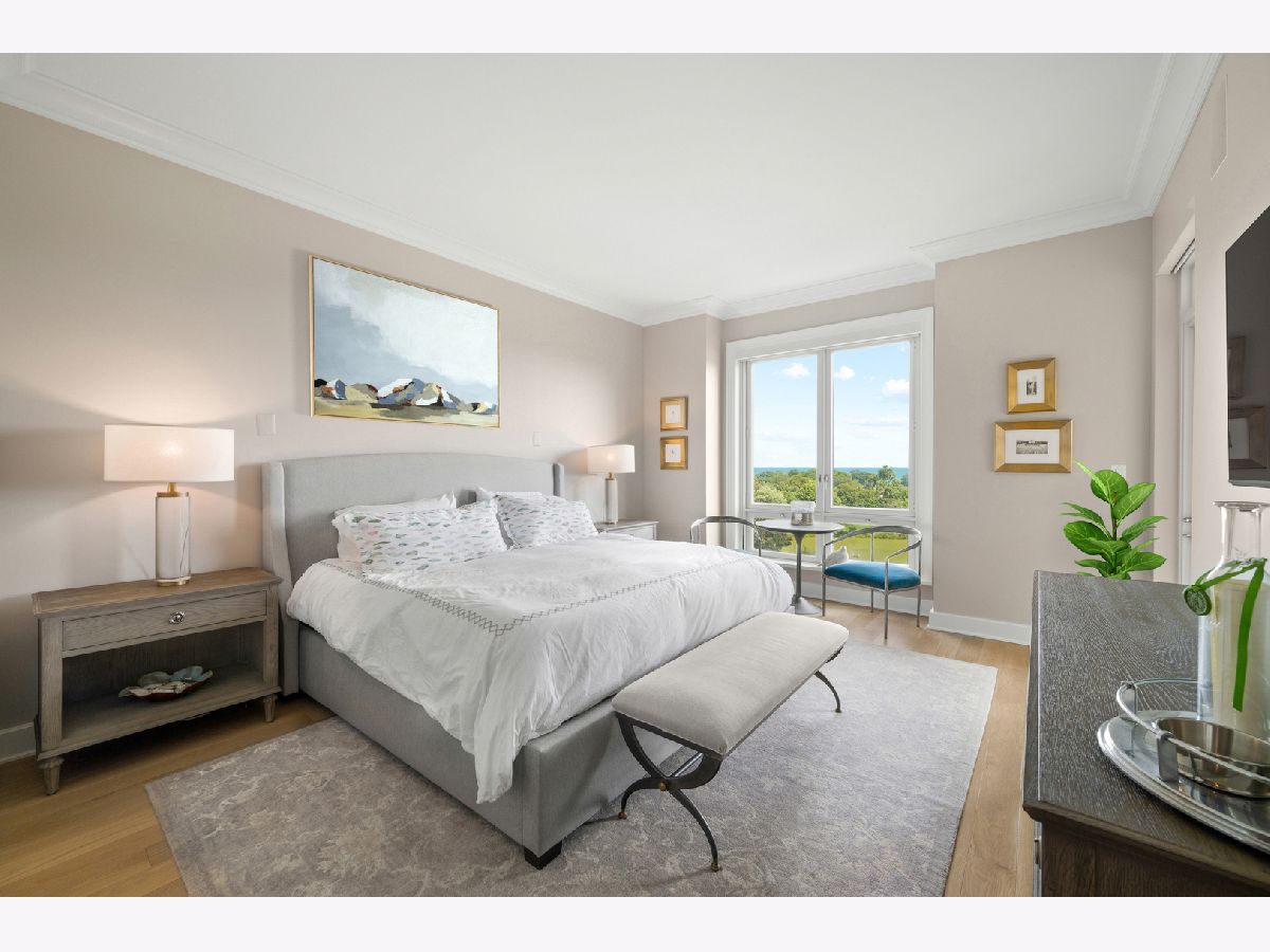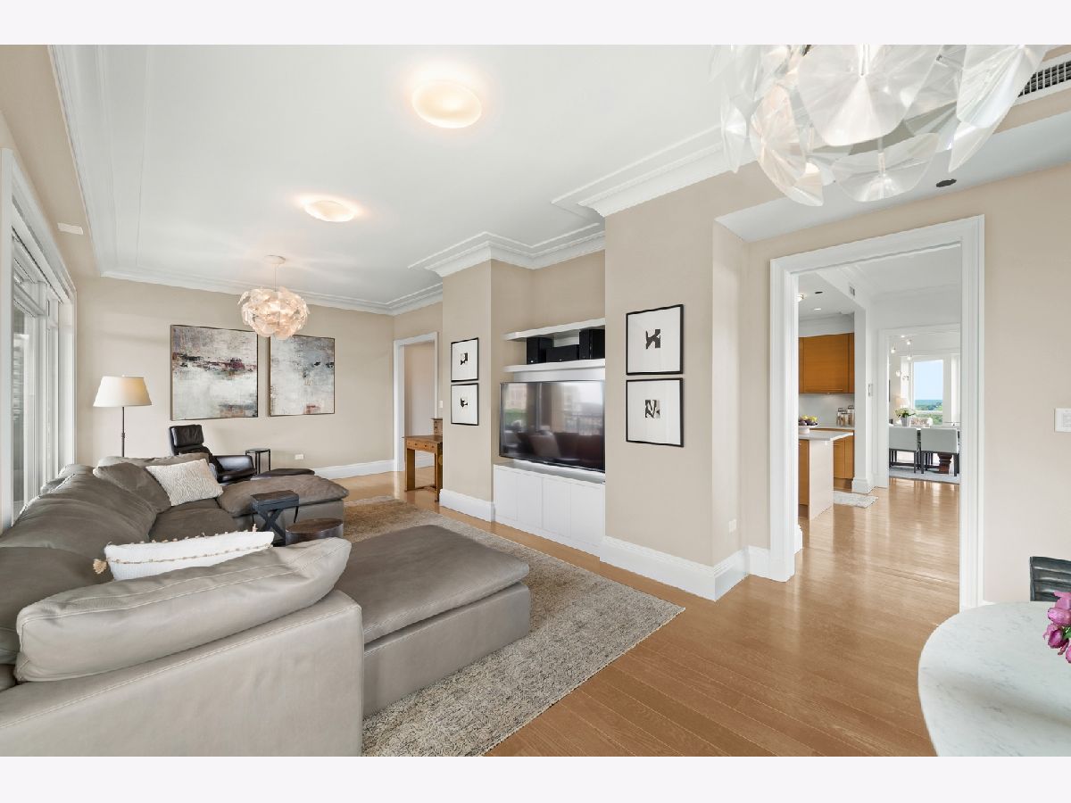 Residence S701, a Southeast corner 3 bedroom/3.1 bathroom home in the highly coveted, Lucien LaGrange-designed, Lincoln Park 2550. This remarkable home offers 4,000 square feet of thoughtfully designed living space, picturesque views from three terraces, and best-in-class amenities. Throughout the home - one of the largest in the building - floor-to-ceiling windows offer family and guests breathtaking and panoramic views of Lake Michigan, Lincoln Park, North Pond, and the Chicago skyline - views that change with the seasons and shift with the day's light. Inside the home, floor-to-ceiling windows bathe the interior spaces with light, inviting the natural beauty of the outdoors in. The focal point of the large formal living room is once again the view, this time visible through a bright wall of windows that curve the entire width of the space and amplify the 180-degree cityscape. The adjoining den and large dining room are clearly defined spaces, but are capable together of accommodating a large gathering. Sophisticated and elegant finishes are found throughout the home including the kitchen which features Caesarstone quartz countertops with island seating, customized Snaidero cabinetry and top of the line appliances including Subzero, Wolf, and two Miele dishwashers. The pass through butler's pantry adds storage, a wet bar, and temperature controlled wine storage. The south terrace, accessible from the kitchen, has gas grill hook-up and is large enough for a seated meal. Stepping off the kitchen, a comfortably sized family room provides the perfect setting for a relaxing evening or enjoy sunsets on the western terrace. The largest of the three, this 44x12-foot covered terrace overlooks the stunning manicured gardens and fountain within the 1.5-acre gated, private park. Back inside, the substantial primary bedroom is a peaceful retreat and includes its own east facing terrace, two walk-in closets, and spa-quality bathroom with dual vanity sinks, great storage, soaking tub, and an aromatherapy steam shower. Two additional bedrooms, both ensuite with private bathrooms and walk-in closets make perfect sanctuaries for family or guests. Key features throughout this large-scale home include: wide plank oak flooring, custom millwork and built-ins, smart home technology with centralized media and climate control, built-in speakers, programmable lighting, and Lutron shades. Residents of the building enjoy exceptional amenities: indoor pool with sundeck, top-of-the-line fitness center, sauna and steam rooms, movie theater, newly renovated party/event room with amazing kitchen, game and billiards room, massage rooms, on-site dry cleaner, dog run, private playground and an exceptional team of 24/7 door staff. Two large storage spaces and two parking spots with guest passes and optional valet service are included.