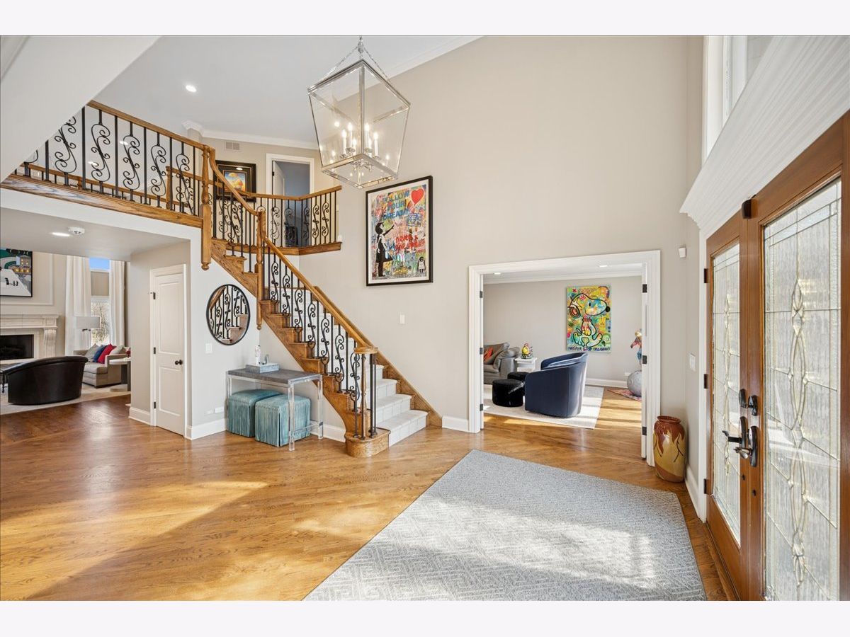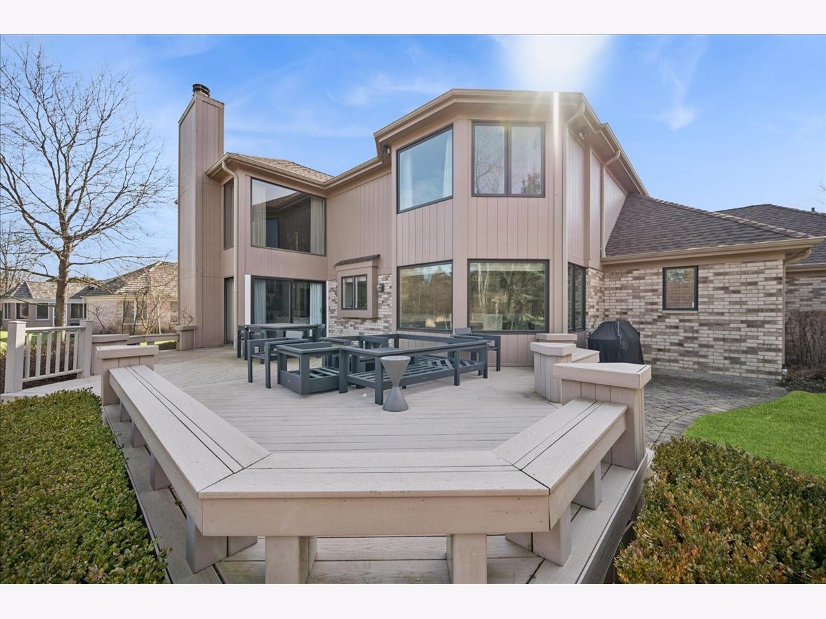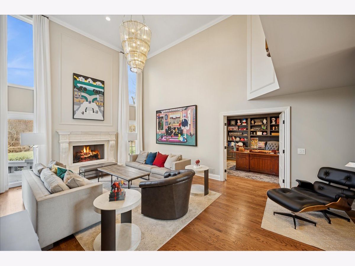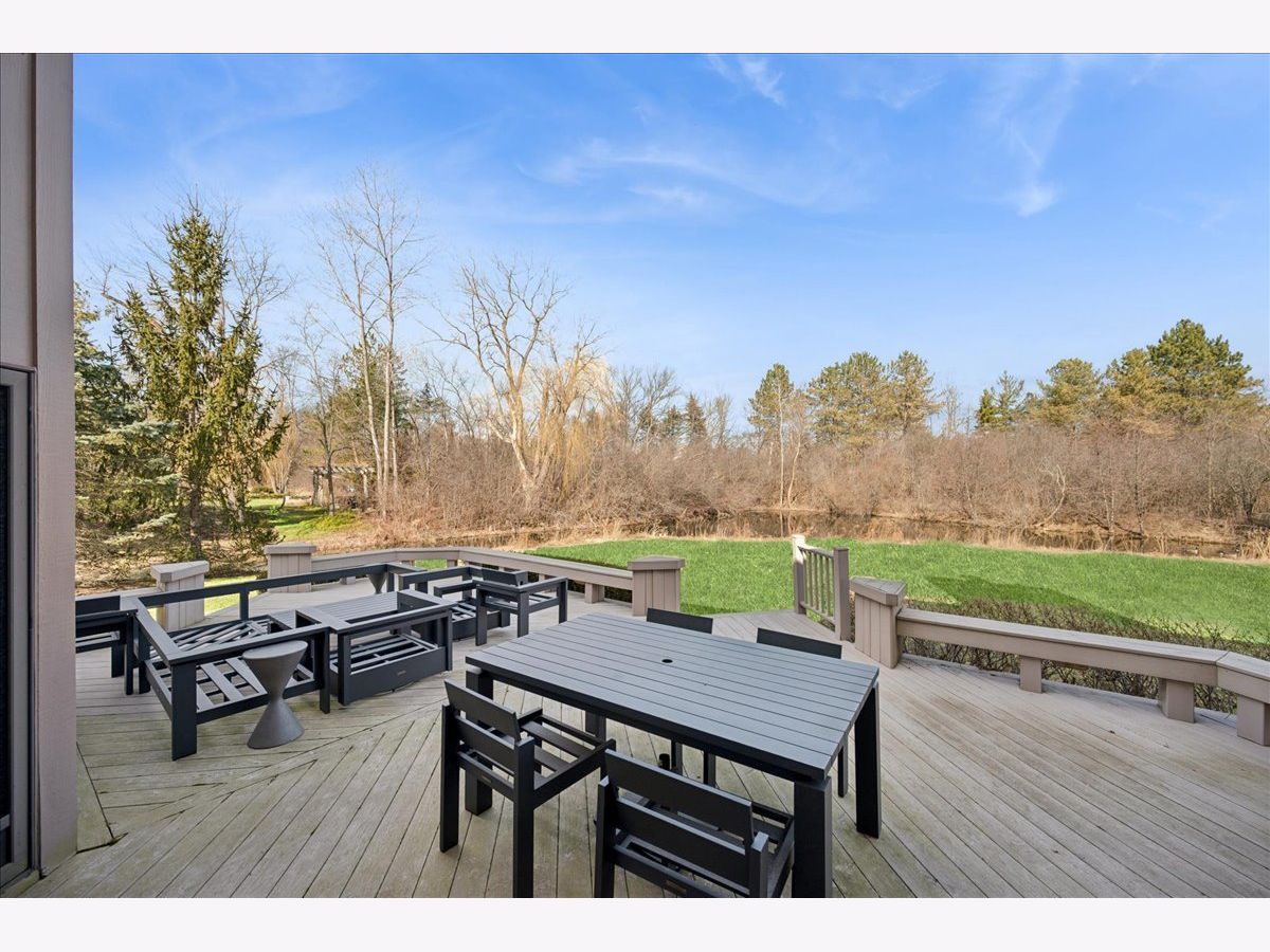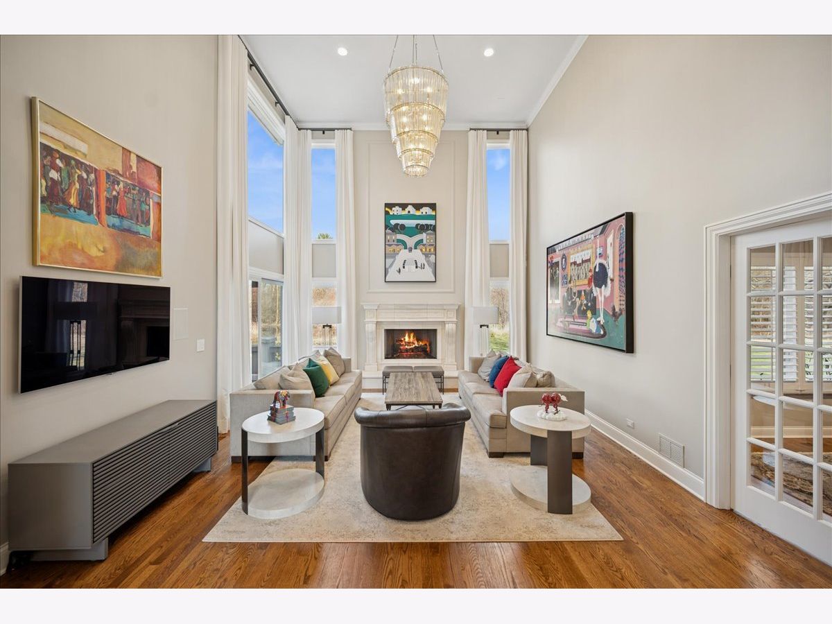 Stunning, extensively renovated 5-bedroom, 4.1-bath home in the coveted Hybernia community of Highland Park, offering serene pond views and maintenance-free living. A dramatic two-story foyer welcomes you into light-filled interiors featuring soaring ceilings, rich hardwood floors, crown molding, and a limestone fireplace in the breathtaking living room with floor-to-ceiling windows. The gourmet eat-in kitchen showcases custom cabinetry, quartzite countertops, walk-in and butler's pantries, and high-end appliances including a 48" Sub-Zero refrigerator, double ovens, and 5-burner cooktop. Gather in the breakfast area overlooking the water, host holidays in the formal dining room, or unwind in the adjacent living room with 17 foot ceilings - the flow is seamless and inviting. Flexible floor plan includes a first-floor bedroom with full bath offering ideal flexibility for guests or multigenerational living. The main floor also features a private office with custom built-ins for an inspiring work-from-home retreat, a cozy family room (or den) for watching TV, elegant dining room, updated laundry room, and a powder room. The luxurious primary suite offers a sitting area with water views and a spa-inspired bath with quartzite counters and heated travertine floors. Two bedrooms share a Jack-and-Jill bath, while the fourth upstairs bedroom features an en-suite bathroom. Extensive upgrades include newer roof, R-49 attic insulation, renovated baths, LED lighting, new lighting fixtures and window treatments, dual-zoned HVAC, new electronic shades in kitchen, living room and primary bedroom, and a whole-house generator. Enjoy outdoor living on the composite deck with built-in seating and speakers, brick paver patio, and oversized circular driveway. 3-car attached garage. HOA provides white-glove landscaping and snow removal allowing for truly maintenance-free luxury living. Ideally located near top-rated schools with the option of Highland Park High School or Deerfield High School. Impeccably maintained, turnkey, and move-in ready private retreat.