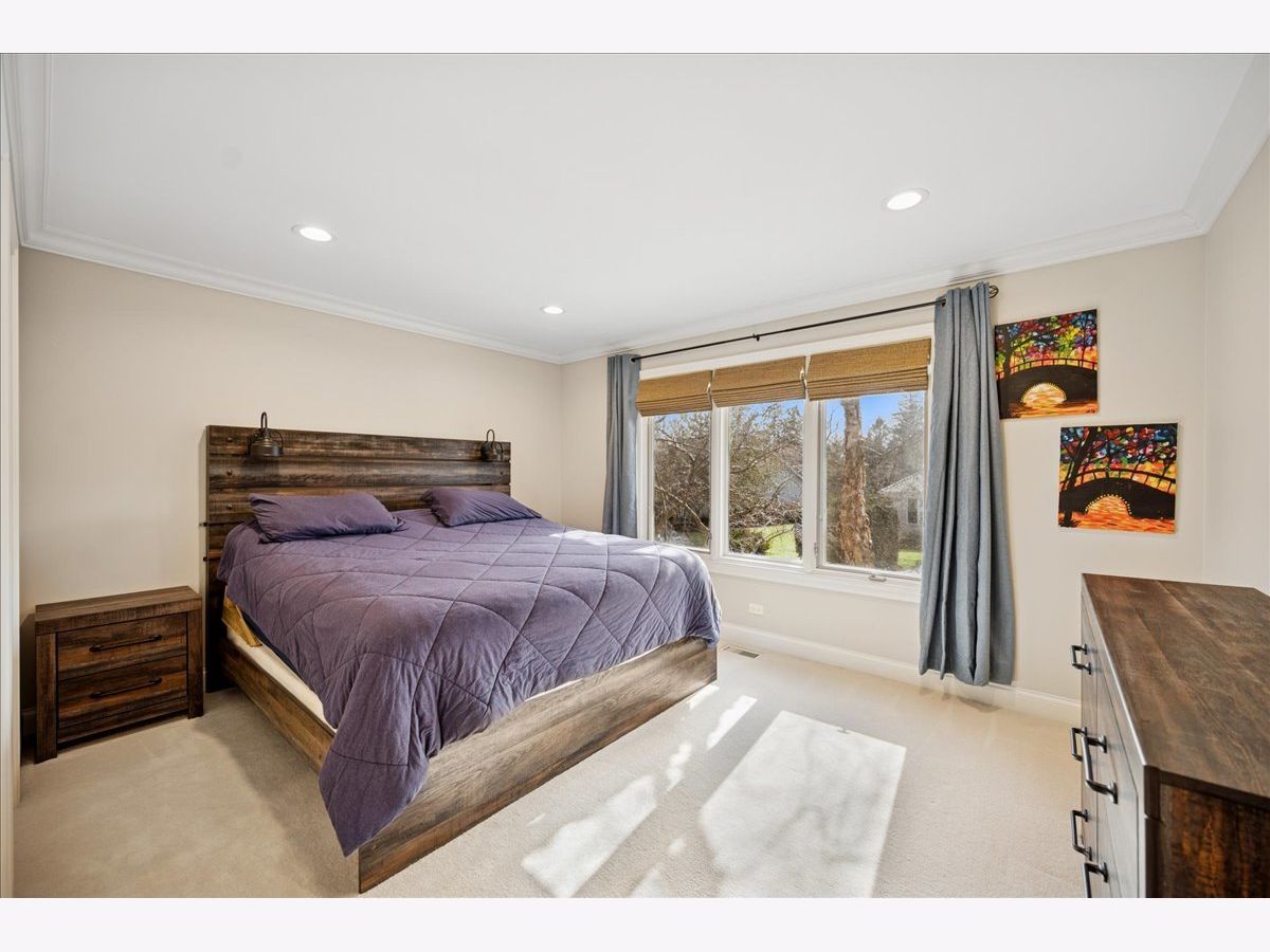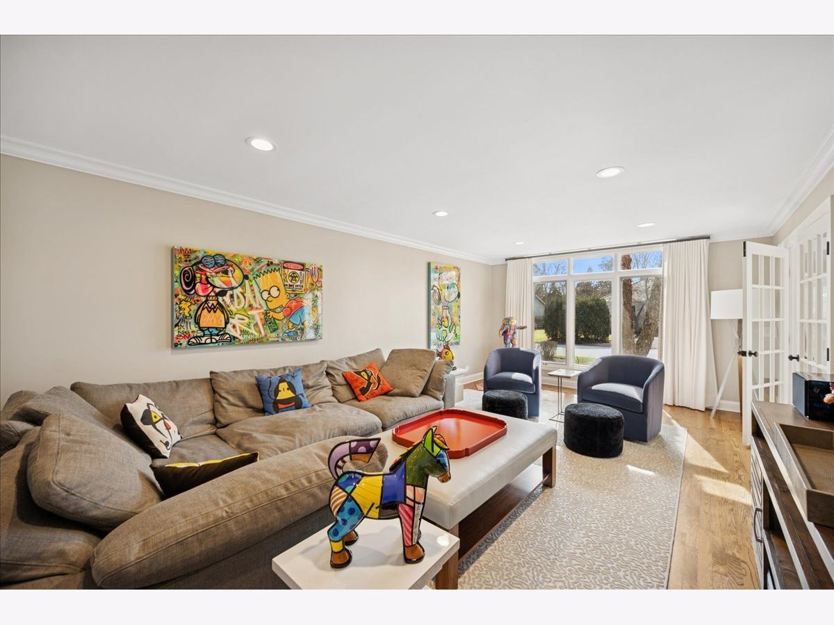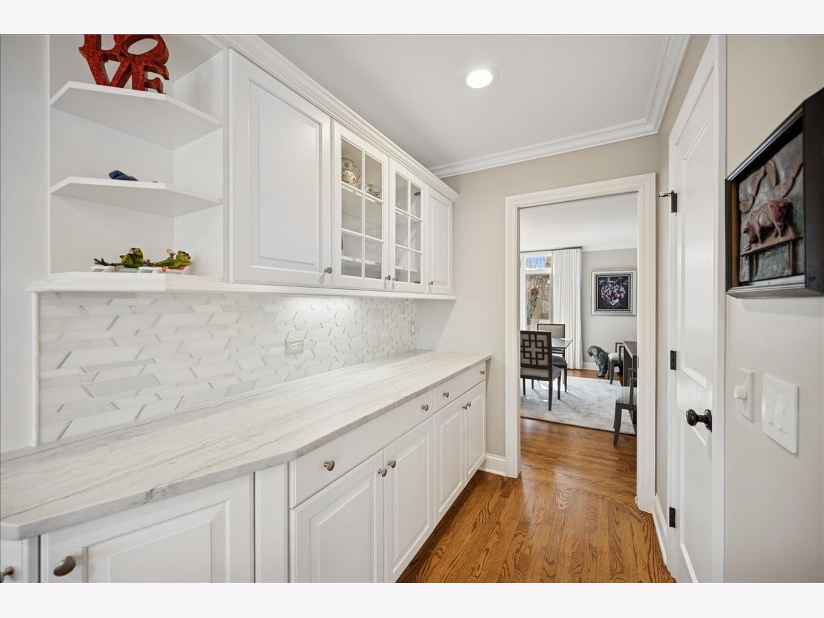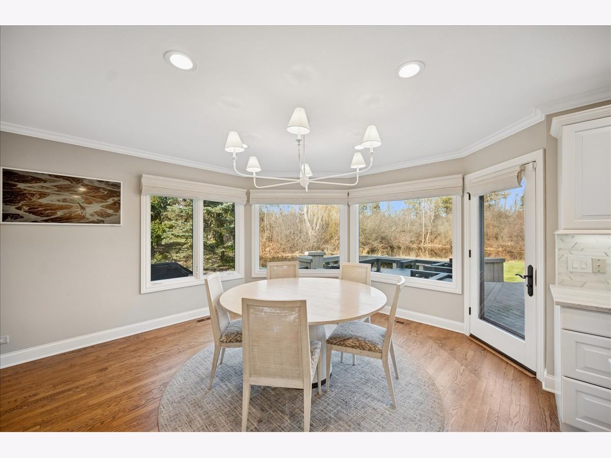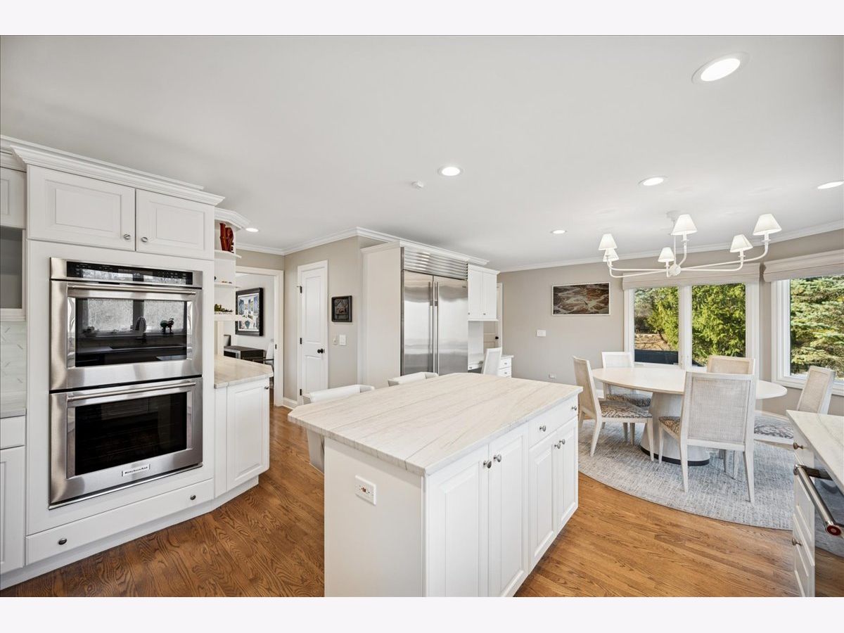 Stunning, extensively renovated 5-bedroom, 4.1-bath home in the coveted Hybernia community of Highland Park, offering serene pond views and maintenance-free living. A dramatic two-story foyer welcomes you into light-filled interiors featuring soaring ceilings, rich hardwood floors, crown molding, and a limestone fireplace in the breathtaking living room with floor-to-ceiling windows. The gourmet eat-in kitchen showcases custom cabinetry, quartzite countertops, walk-in and butler's pantries, and high-end appliances including a 48" Sub-Zero refrigerator, double ovens, and 5-burner cooktop. Gather in the breakfast area overlooking the water, host holidays in the formal dining room, or unwind in the adjacent living room with 17 foot ceilings - the flow is seamless and inviting. Flexible floor plan includes a first-floor bedroom with full bath offering ideal flexibility for guests or multigenerational living. The main floor also features a private office with custom built-ins for an inspiring work-from-home retreat, a cozy family room (or den) for watching TV, elegant dining room, updated laundry room, and a powder room. The luxurious primary suite offers a sitting area with water views and a spa-inspired bath with quartzite counters and heated travertine floors. Two bedrooms share a Jack-and-Jill bath, while the fourth upstairs bedroom features an en-suite bathroom. Extensive upgrades include newer roof, R-49 attic insulation, renovated baths, LED lighting, new lighting fixtures and window treatments, dual-zoned HVAC, new electronic shades in kitchen, living room and primary bedroom, and a whole-house generator. Enjoy outdoor living on the composite deck with built-in seating and speakers, brick paver patio, and oversized circular driveway. 3-car attached garage. HOA provides white-glove landscaping and snow removal allowing for truly maintenance-free luxury living. Ideally located near top-rated schools with the option of Highland Park High School or Deerfield High School. Impeccably maintained, turnkey, and move-in ready private retreat.