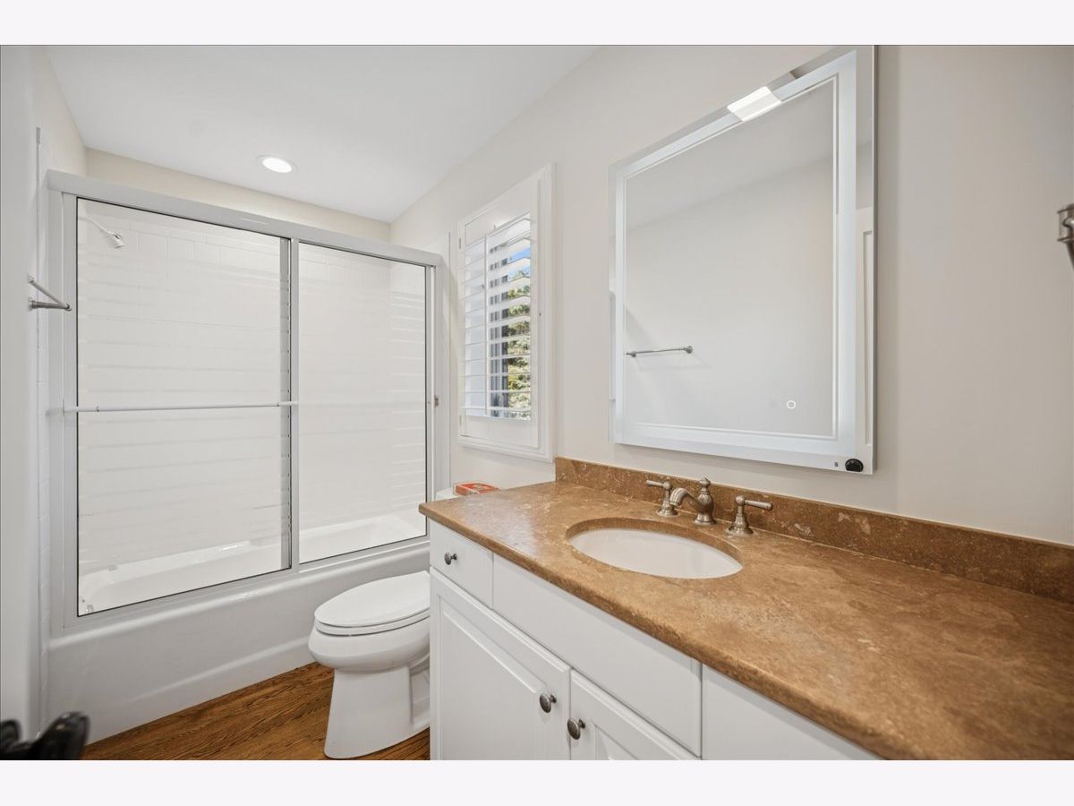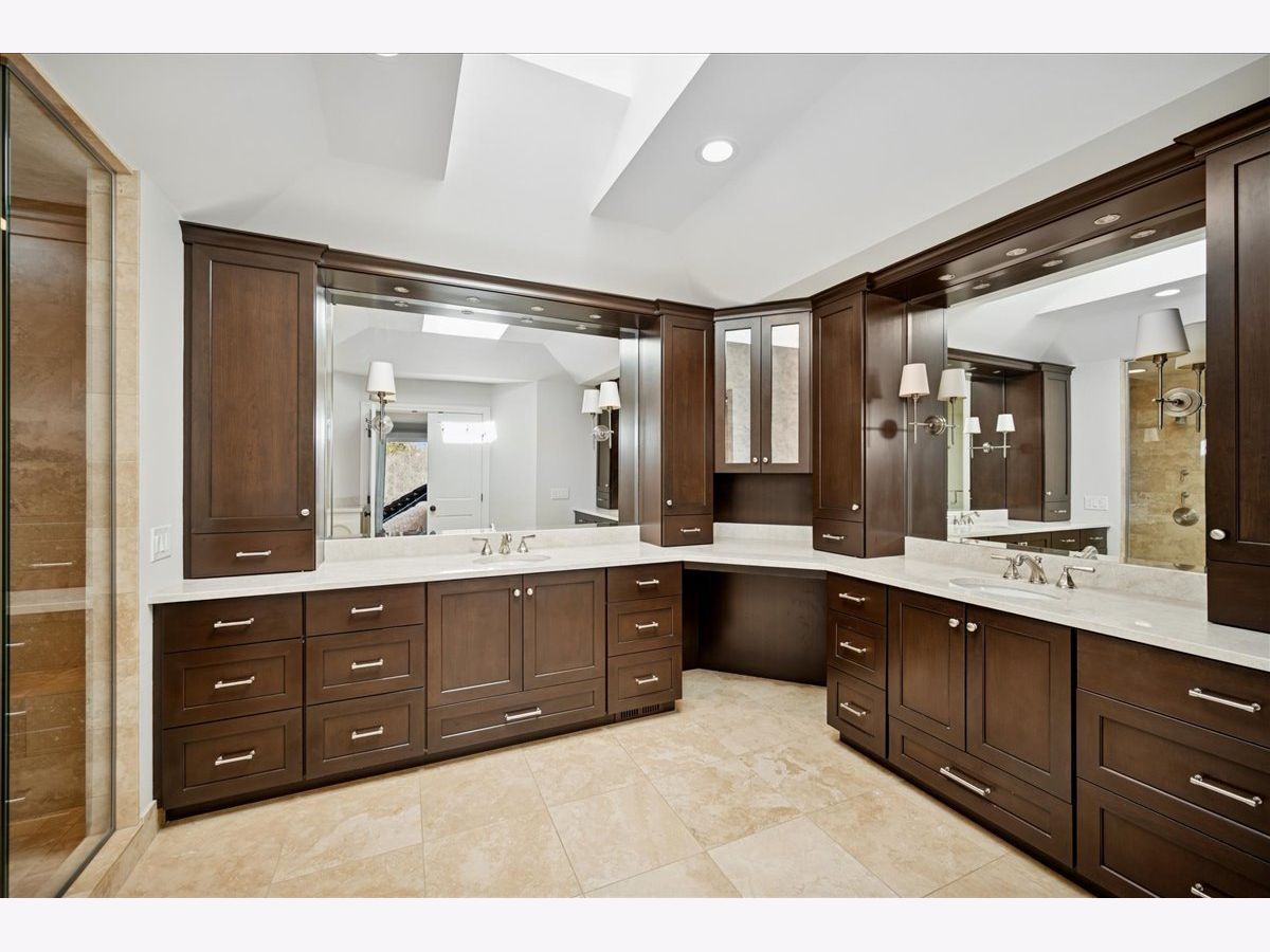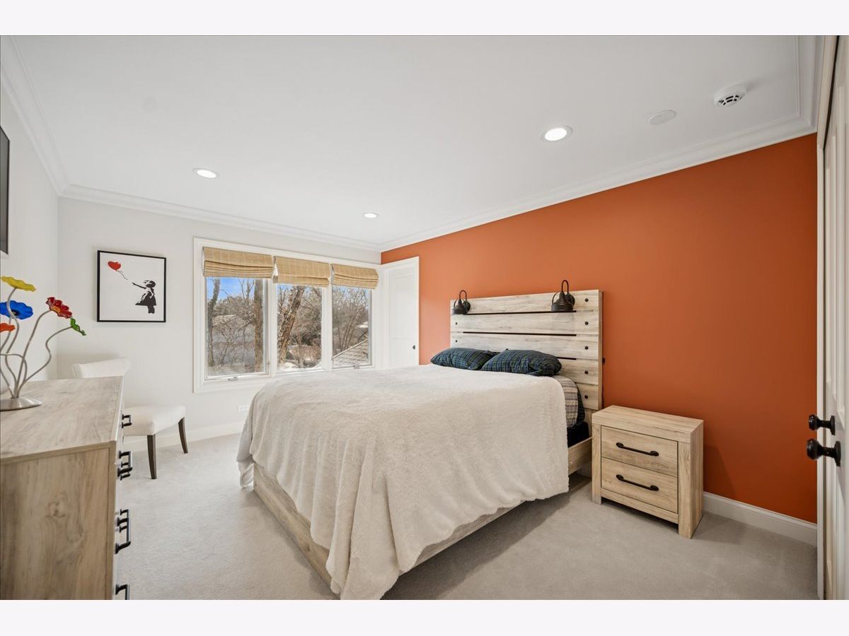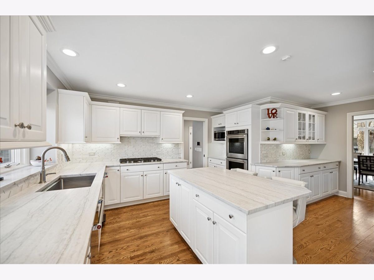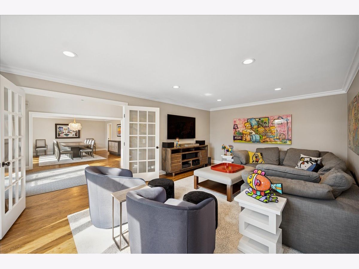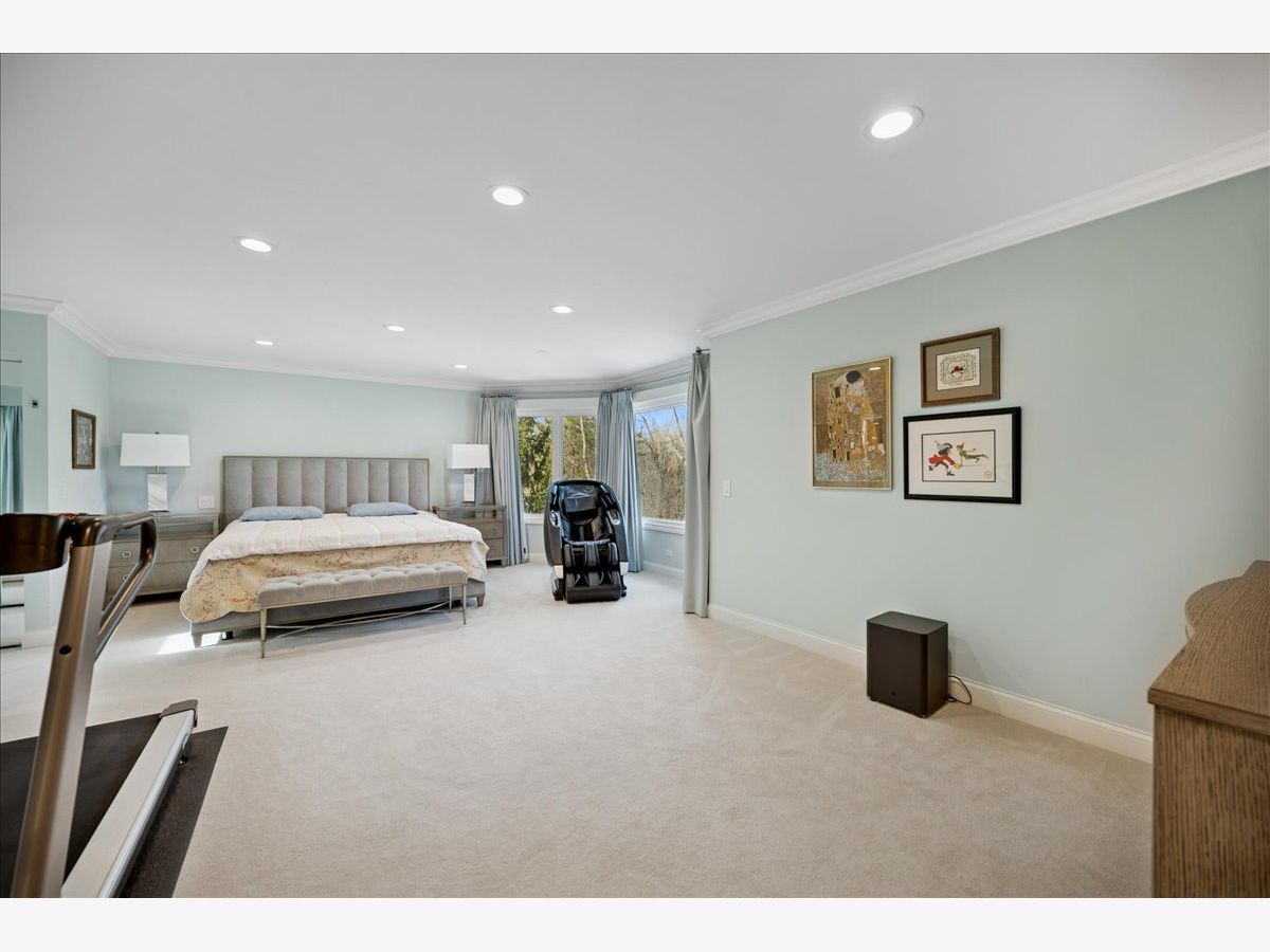 Stunning, extensively renovated 5-bedroom, 4.1-bath home in the coveted Hybernia community of Highland Park, offering serene pond views and maintenance-free living. A dramatic two-story foyer welcomes you into light-filled interiors featuring soaring ceilings, rich hardwood floors, crown molding, and a limestone fireplace in the breathtaking living room with floor-to-ceiling windows. The gourmet eat-in kitchen showcases custom cabinetry, quartzite countertops, walk-in and butler's pantries, and high-end appliances including a 48" Sub-Zero refrigerator, double ovens, and 5-burner cooktop. Gather in the breakfast area overlooking the water, host holidays in the formal dining room, or unwind in the adjacent living room with 17 foot ceilings - the flow is seamless and inviting. Flexible floor plan includes a first-floor bedroom with full bath offering ideal flexibility for guests or multigenerational living. The main floor also features a private office with custom built-ins for an inspiring work-from-home retreat, a cozy family room (or den) for watching TV, elegant dining room, updated laundry room, and a powder room. The luxurious primary suite offers a sitting area with water views and a spa-inspired bath with quartzite counters and heated travertine floors. Two bedrooms share a Jack-and-Jill bath, while the fourth upstairs bedroom features an en-suite bathroom. Extensive upgrades include newer roof, R-49 attic insulation, renovated baths, LED lighting, new lighting fixtures and window treatments, dual-zoned HVAC, new electronic shades in kitchen, living room and primary bedroom, and a whole-house generator. Enjoy outdoor living on the composite deck with built-in seating and speakers, brick paver patio, and oversized circular driveway. 3-car attached garage. HOA provides white-glove landscaping and snow removal allowing for truly maintenance-free luxury living. Ideally located near top-rated schools with the option of Highland Park High School or Deerfield High School. Impeccably maintained, turnkey, and move-in ready private retreat.