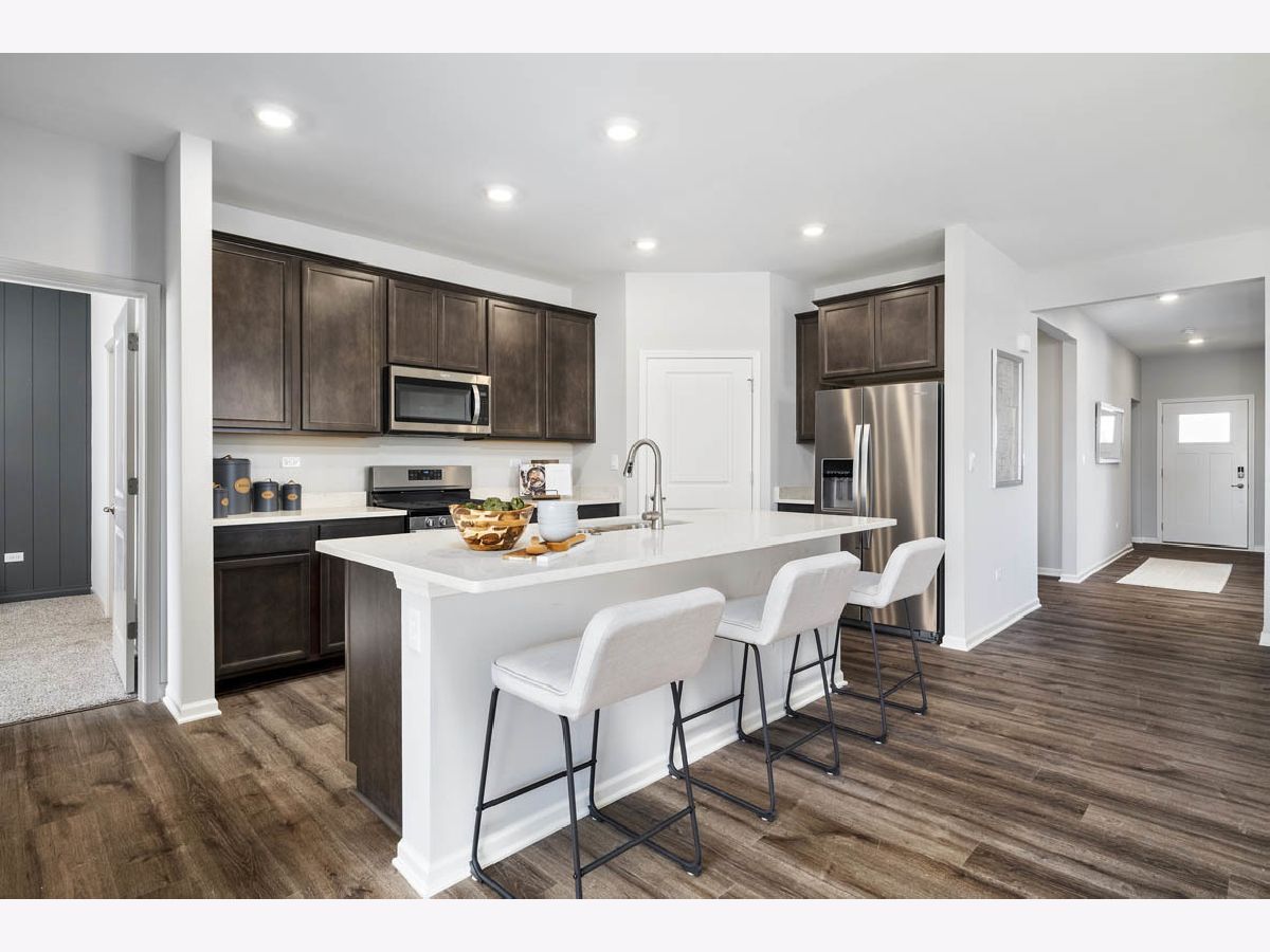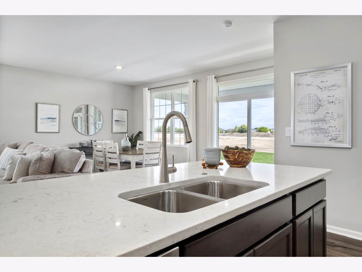 Discover yourself at 25514 W. Sandalwood ln in Plainfield, Illinois, a beautiful new home in our Greenbriar community. This home will be ready for a late summer move-in! This Freedom home is situated on a corner lot includes lawn service, snow removal, sodded front and back, landscape and covered back patio to relax on. This Clifton plan offers 1,863 square feet of living space with a flex room, 2 bedrooms, 2 baths, and 9-foot ceilings. When you first enter the home, there is a secondary bedroom, full bath, and flex room. Down the hall, you will walk into the open concept great room and kitchen. The kitchen layout includes a large island with an overhang for stools, 42-inch designer cabinetry with crown molding and soft close drawers. Additionally, the kitchen features a walk-in pantry, modern stainless-steel appliances, quartz countertops, and easy-to-maintain luxury vinyl plank flooring. Enjoy your private get away with your spacious primary bedroom and en suite bathroom with a raised height dual sink, quartz top vanity, and walk-in shower with clear glass shower doors. The primary suite is located at the back of the home and includes an en suite bath with raised height dual vanities, a walk-in shower with clear glass shower doors, and walk-in closet. A covered back patio completes the space, great for relaxing or hosting outdoors. All D.R. Horton Chicago homes include our America's Smart Home Technology, featuring a smart video doorbell, smart Honeywell thermostat, smart door lock, Deako smart light switches and more. Photos are of similar home and model home. Actual home build may vary.